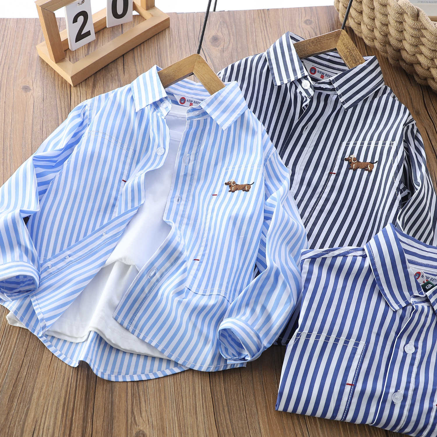 Xiong Zaijia 2 봄 신상품 어린이 세로 줄무늬 셔츠, 큰 어린이를 위한 긴팔 탑, 패셔너블하고 멋집니다.스토어 가기