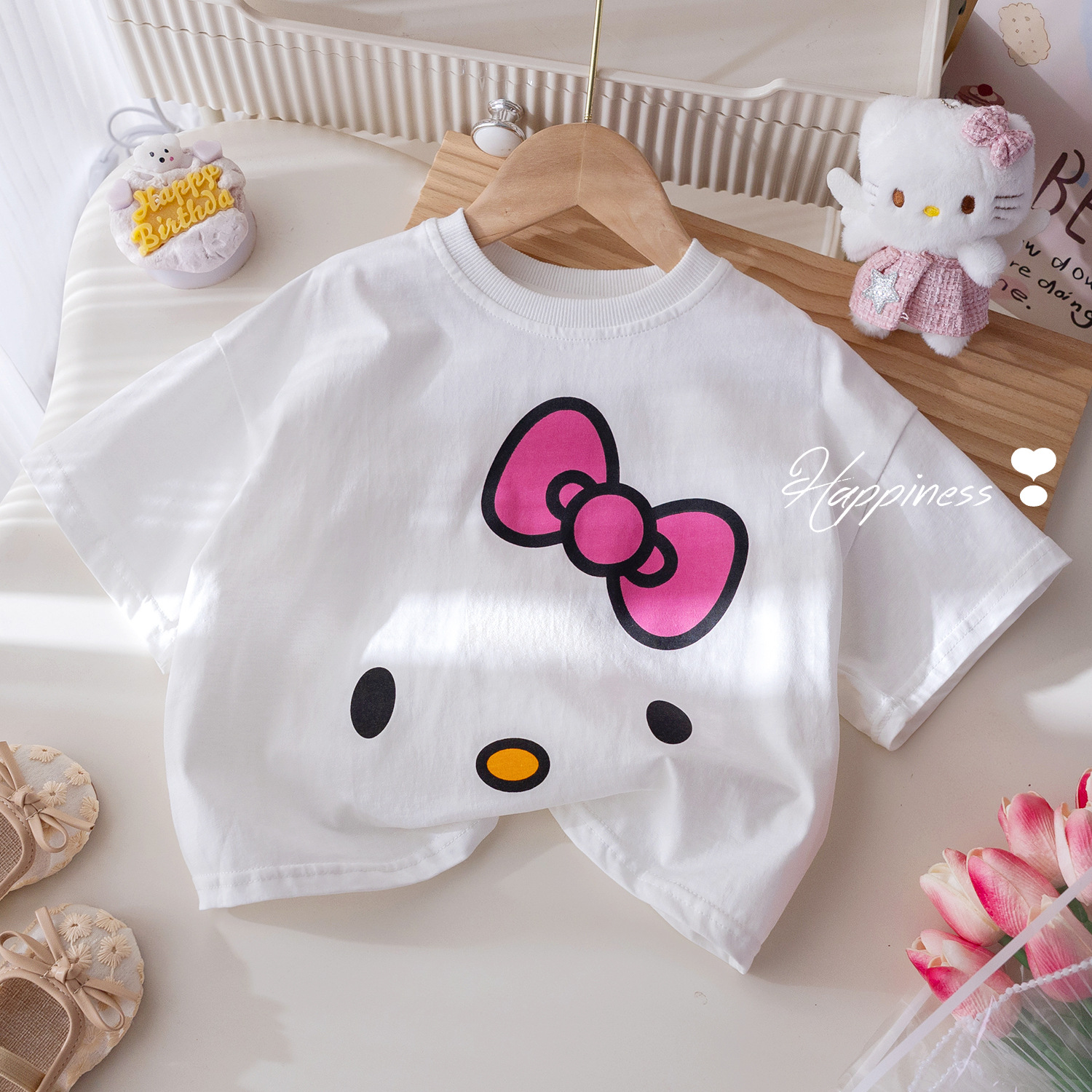 여아 반팔 티셔츠 2026년 여름 신상 귀여운 만화 고양이 프린트 반팔 상의 여름옷 달콤한 티셔츠스토어 가기