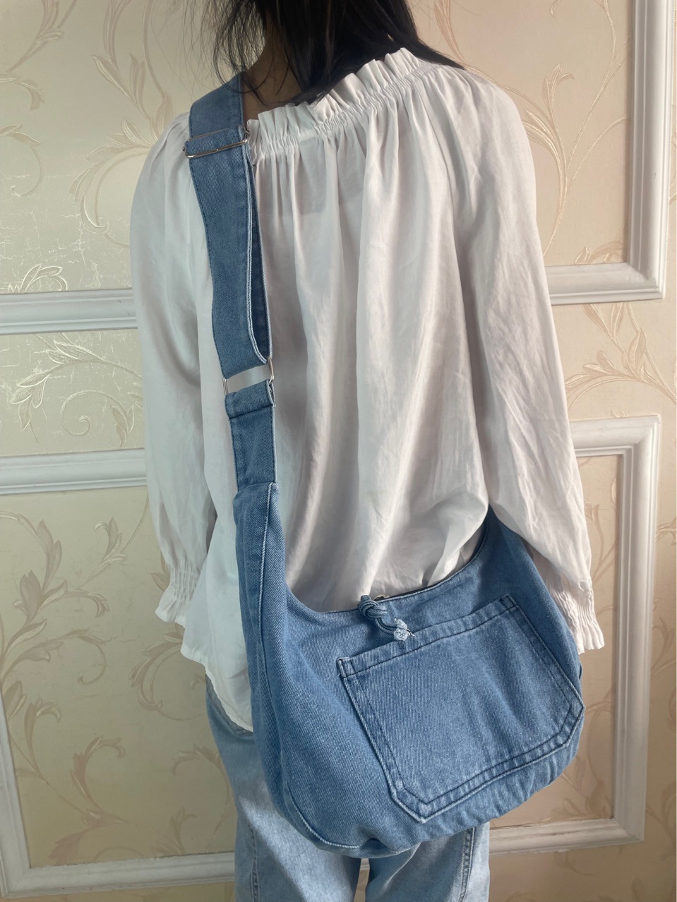 2025 새로운 스타일 데님 레트로 올 매치 간단한 대용량 통근 캐주얼 패션 크로스 바디 백 숄더 백 여성용 가방스토어 가기