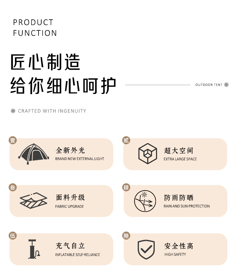 6.5제곱미터의 접이식 휴대용 야외 캠핑용 텐트로 빠르게 설치하여 햇빛과 비를 차단할 수 있습니다.