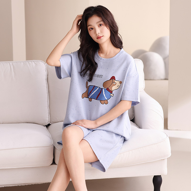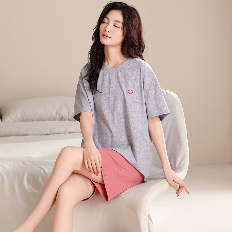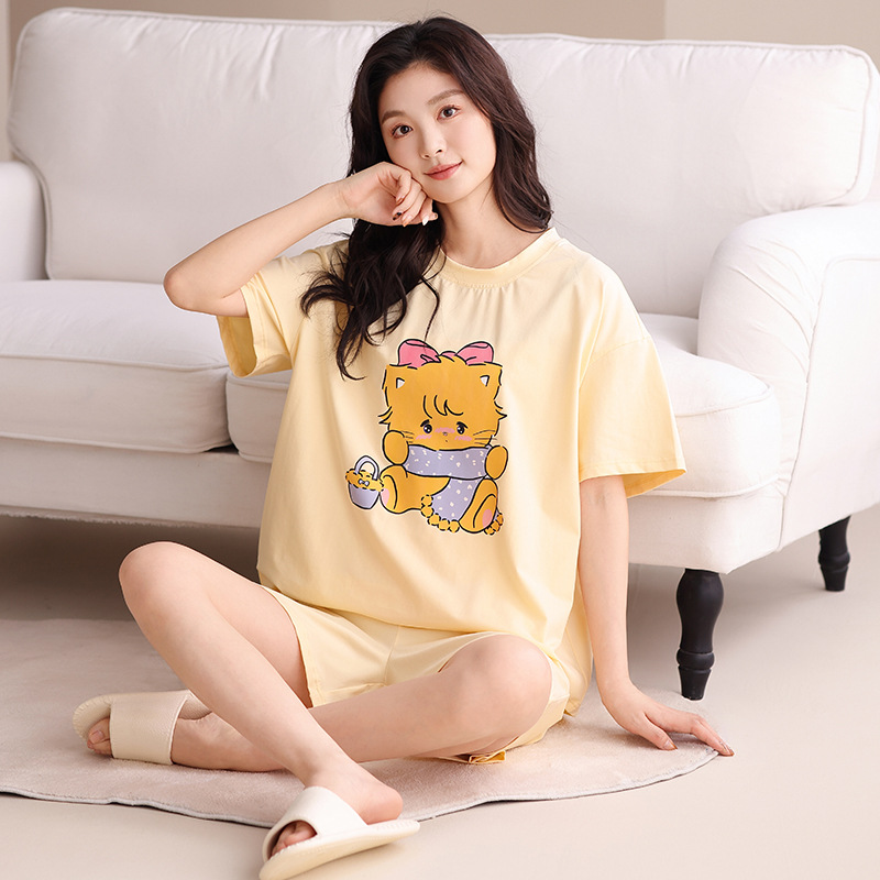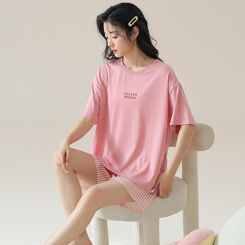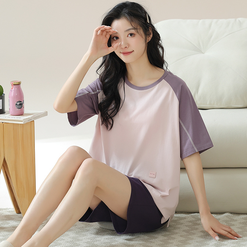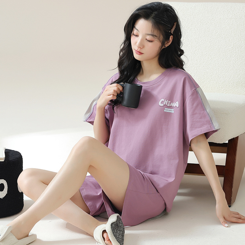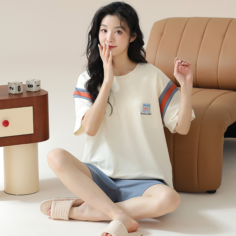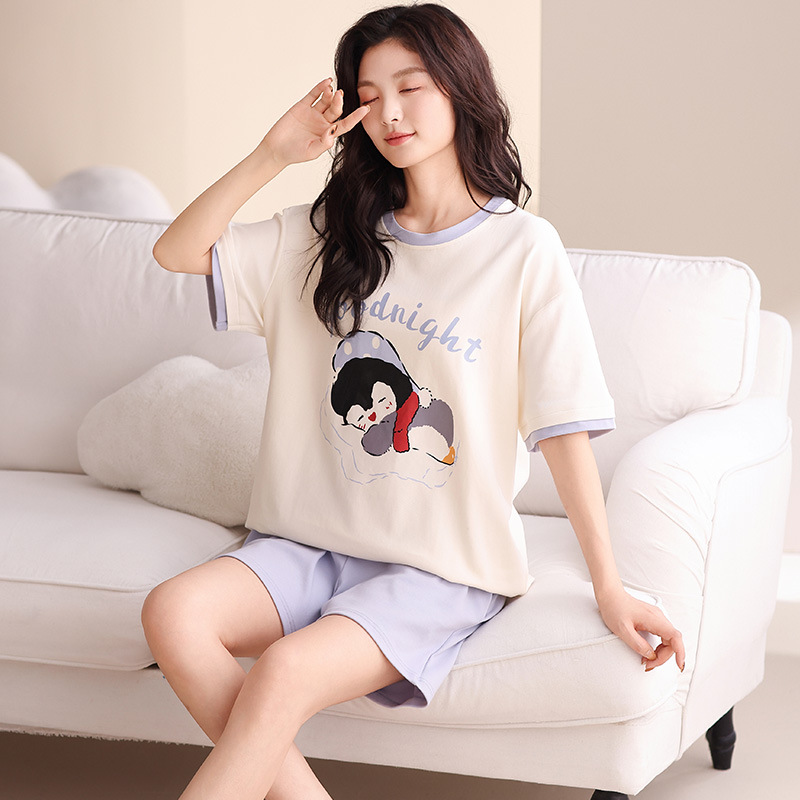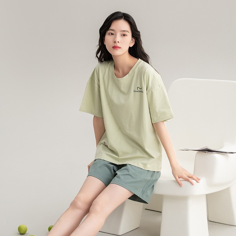 여름 면 잠옷 여성 여름 반팔 반바지 간단한 학생 청소년 홈웨어 세트 편안한 여름스토어 가기