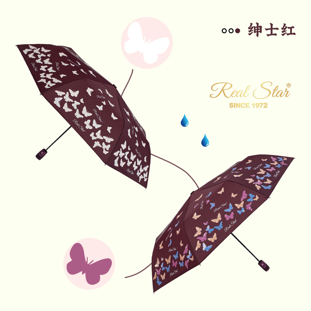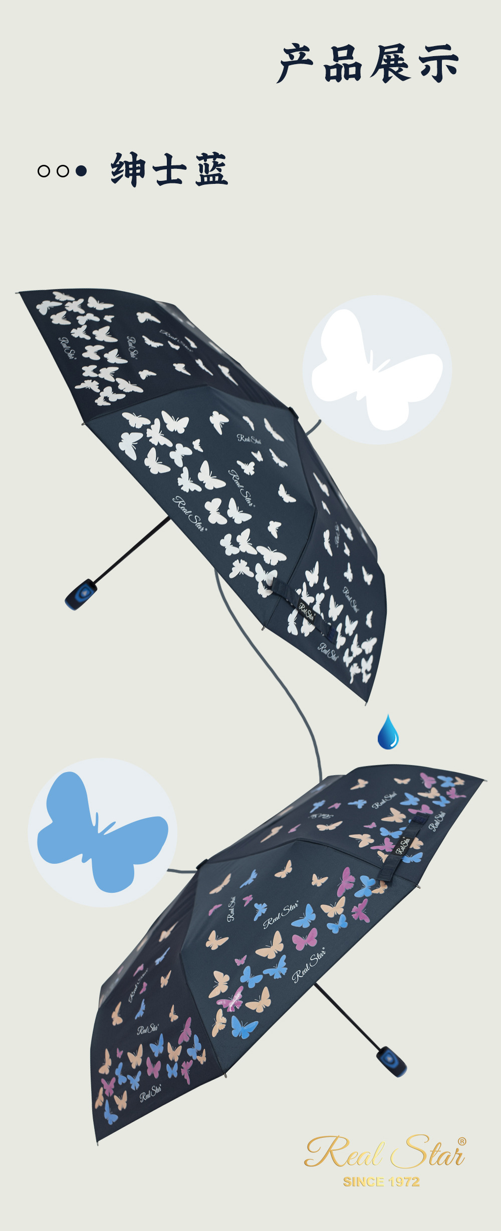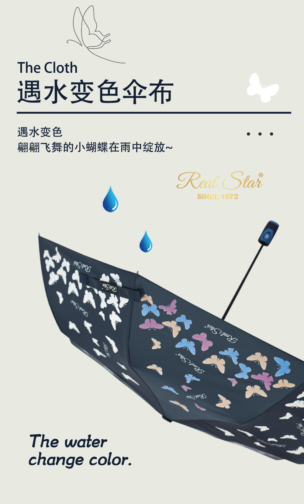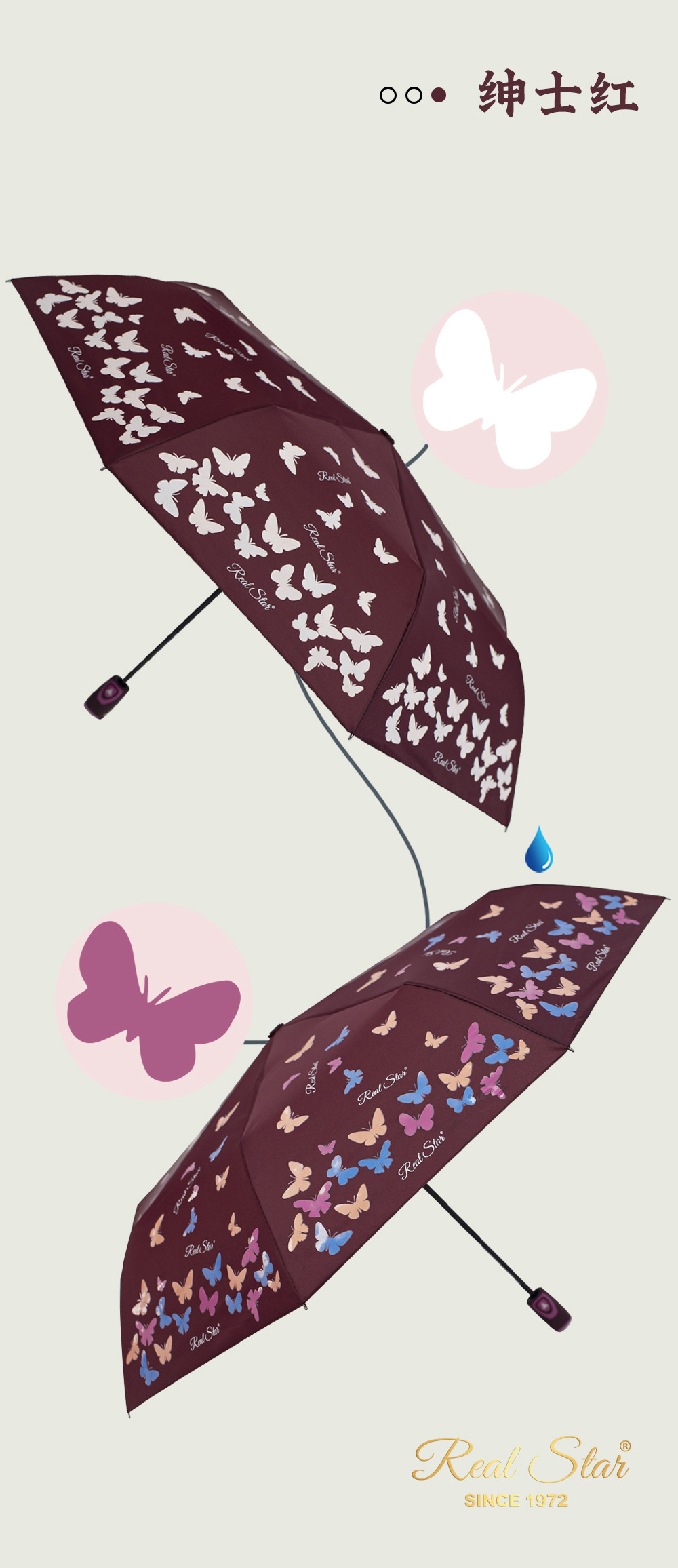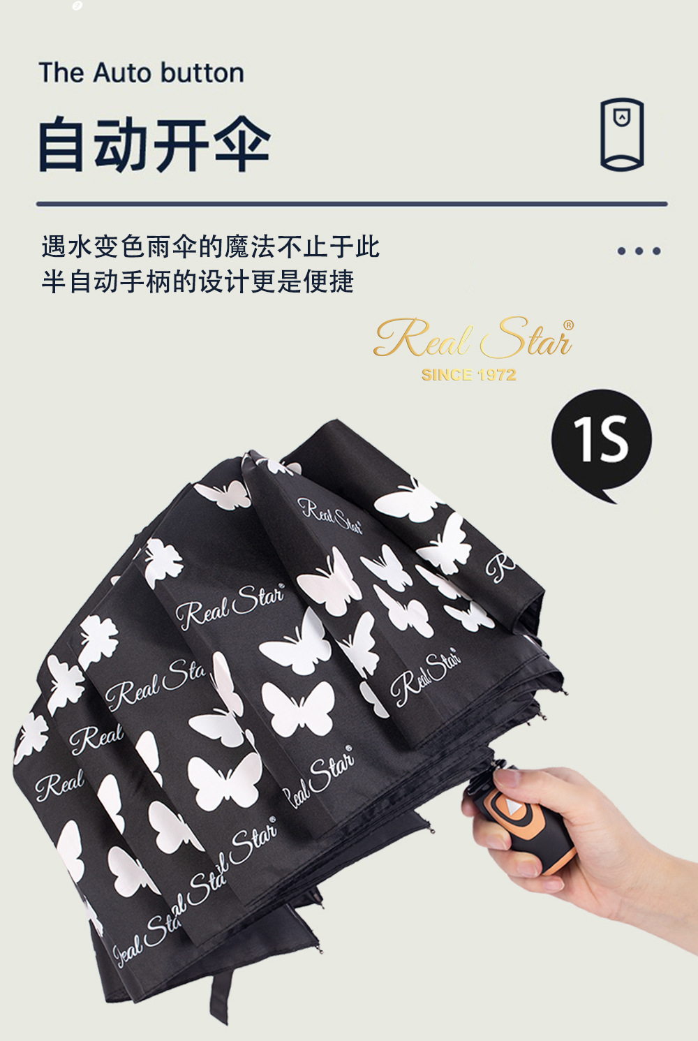 RST 다채로운 나비 모양의 물에 닿으면 색깔이 변하는 창의적인 우산 70% off단 자동 개폐 우산, 재고 있음, 대외 무역 도매