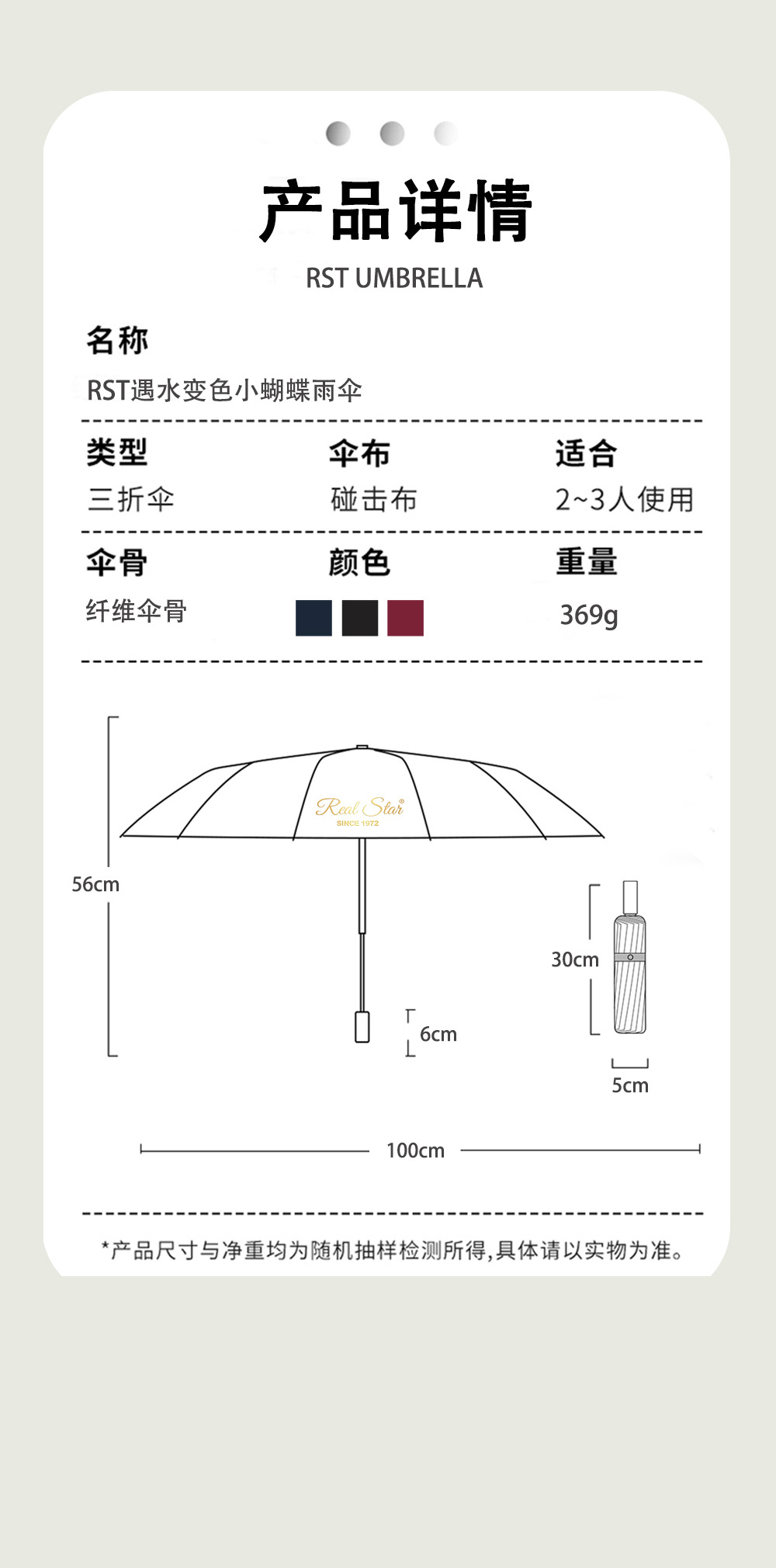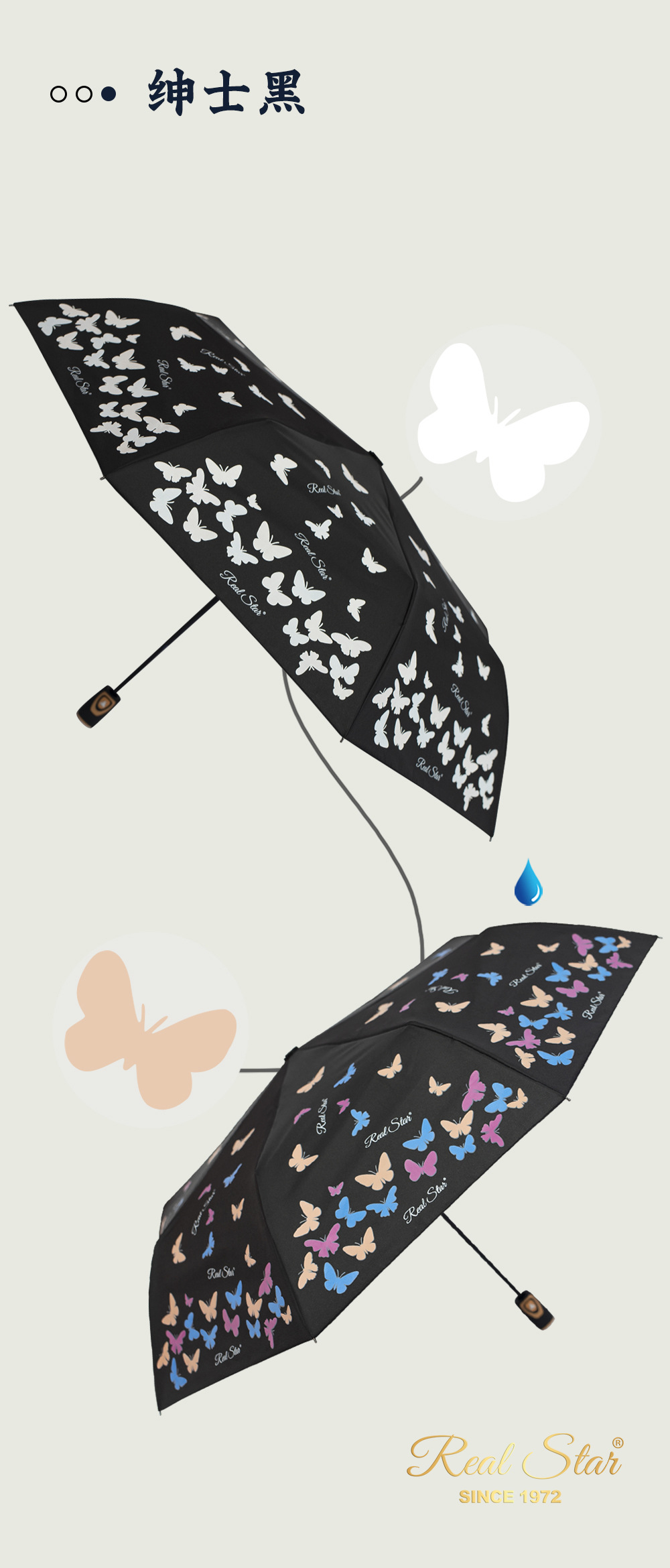 RST 다채로운 나비 모양의 물에 닿으면 색깔이 변하는 창의적인 우산 70% off단 자동 개폐 우산, 재고 있음, 대외 무역 도매스토어 가기
