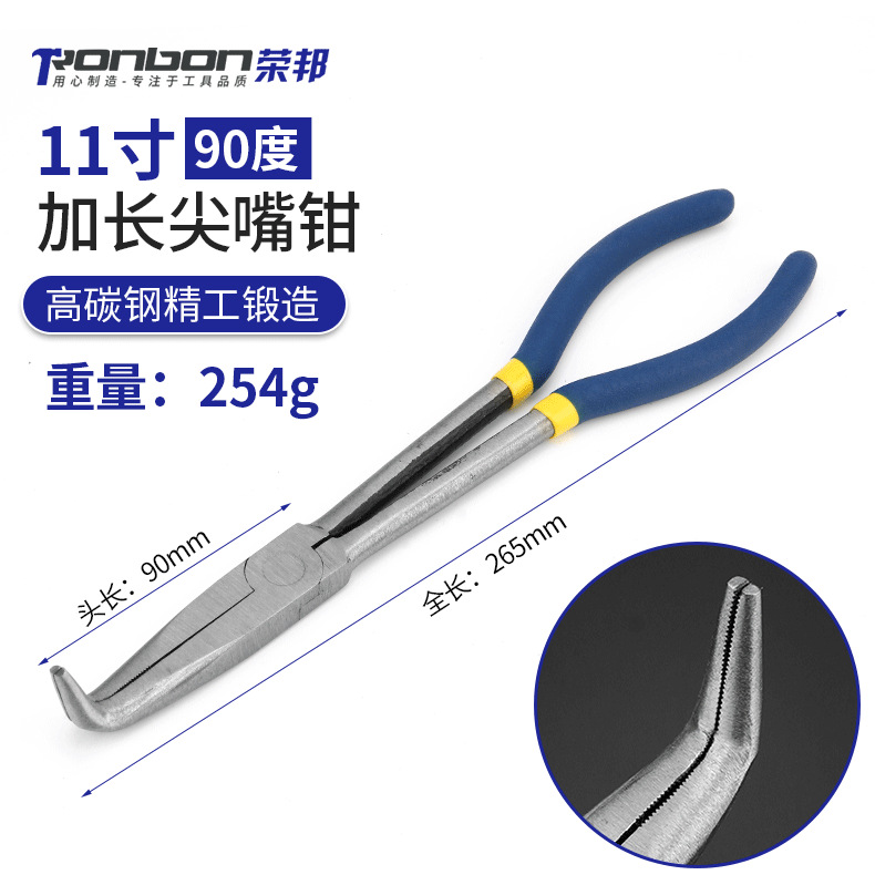 긴 뾰족한 코 펜치 팔꿈치 펜치 11 인치 여분의 긴 팔꿈치 점화 플러그 클램핑 펜치 25 45 90 도스토어 가기