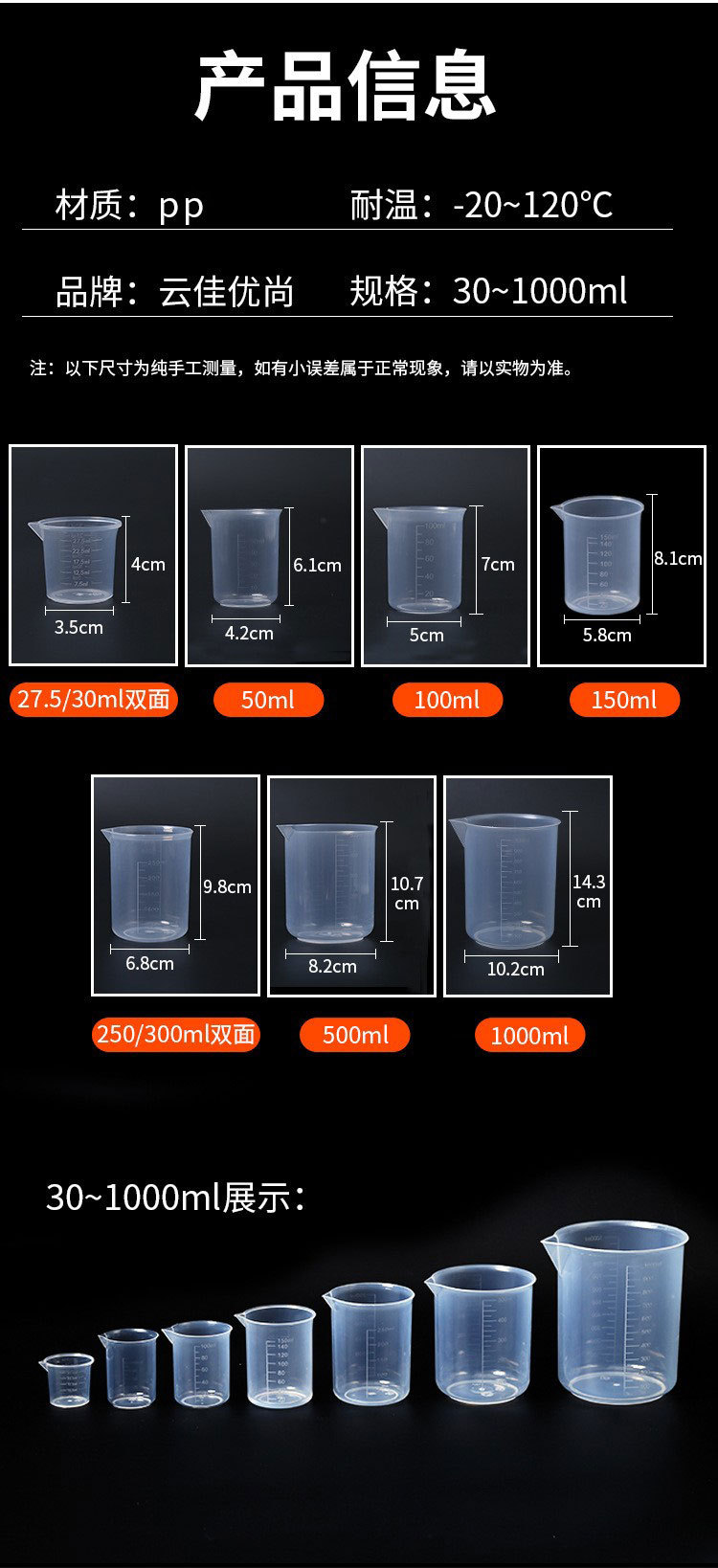 플라스틱 비커 100/500/1000ml 실험실 장비 가늠자 식품 등급 무한 베이킹 측정 컵