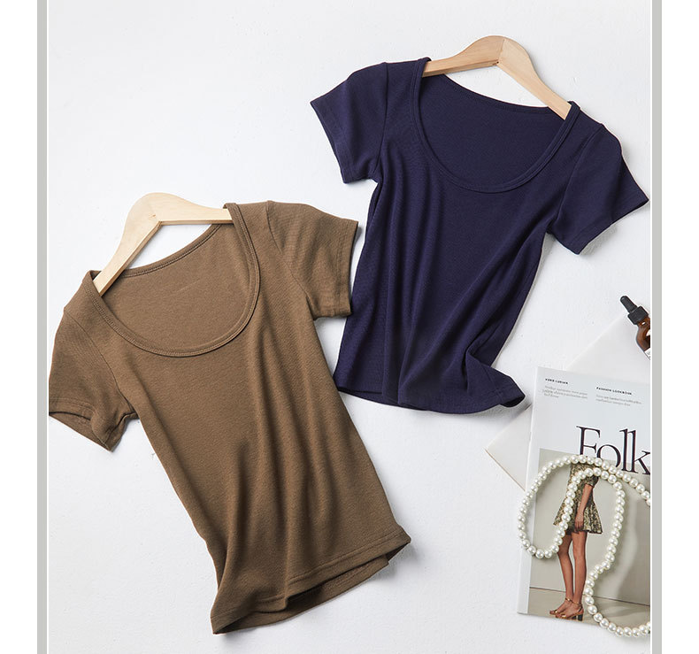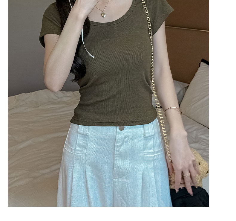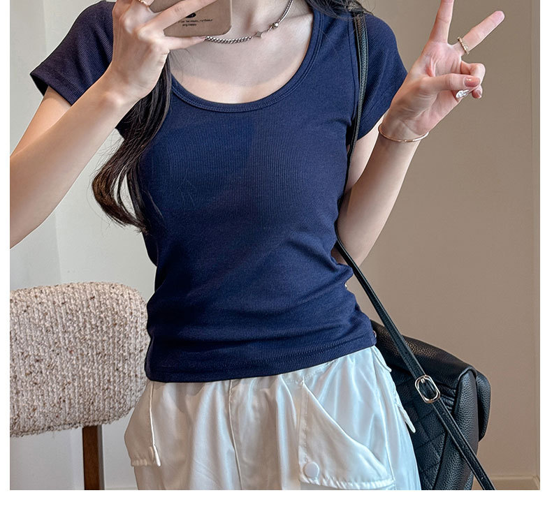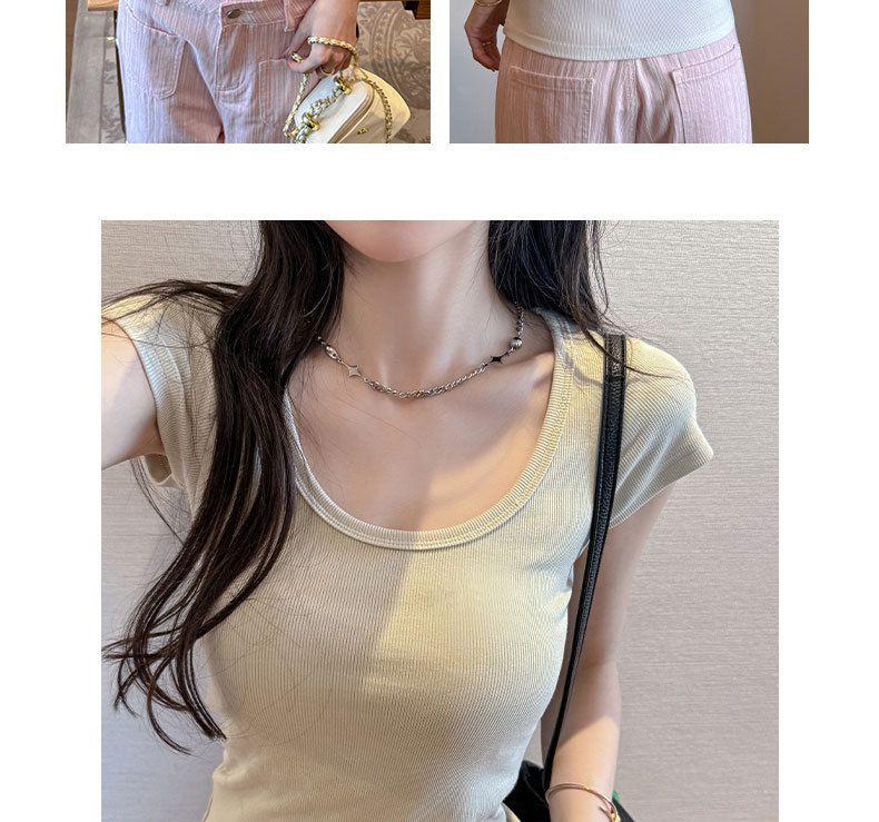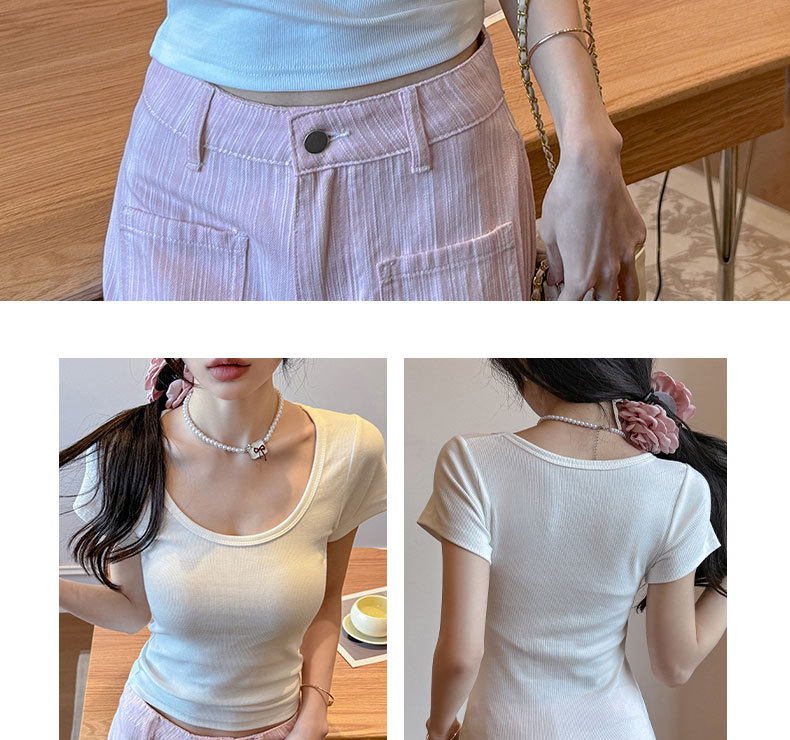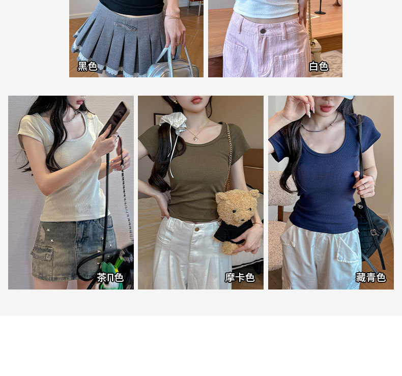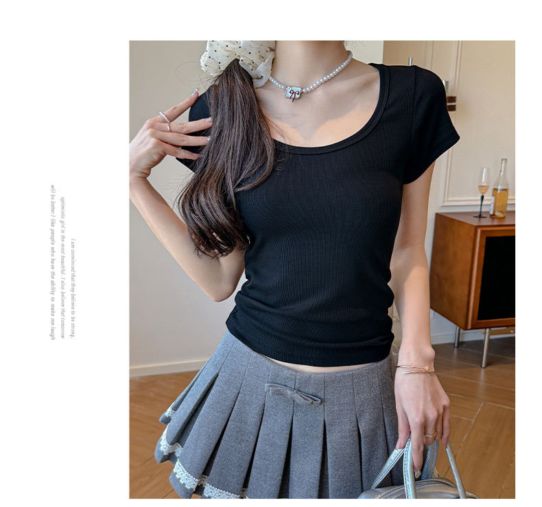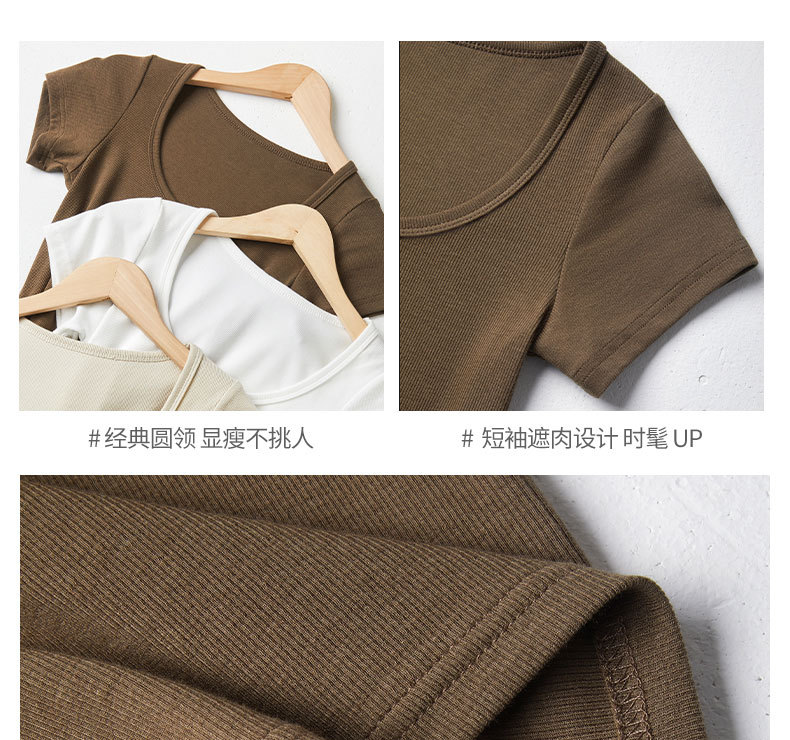 기본 반팔 티셔츠 여성 2025 년 봄과 여름 새로운 슬림핏 슬리밍 간단한 우아한 어깨 스파이스 소녀 Bottoming Top스토어 가기