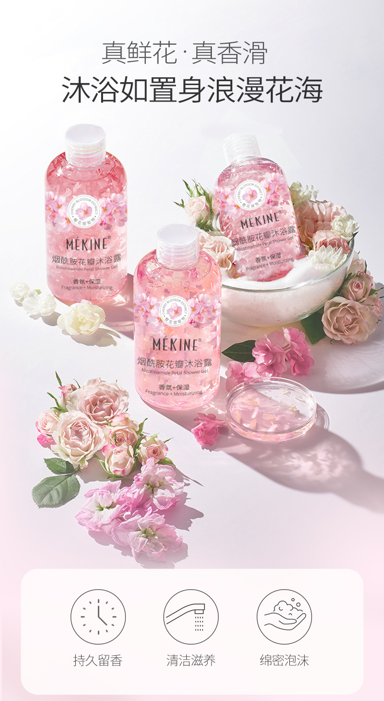 니코틴 아미드 로즈 체리 꽃잎 샤워 젤 72 시간 보습 재스민 향수 샤워 젤 도매스토어 가기