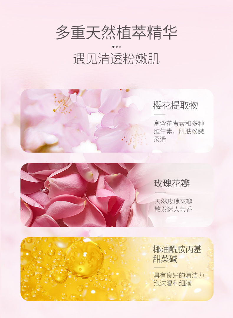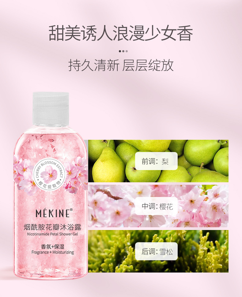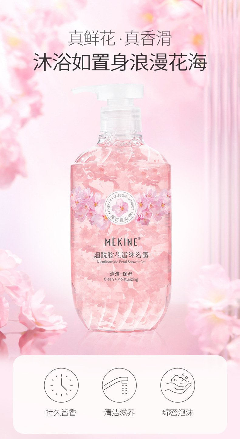 니코틴 아미드 로즈 체리 꽃잎 샤워 젤 72 시간 보습 재스민 향수 샤워 젤 도매
