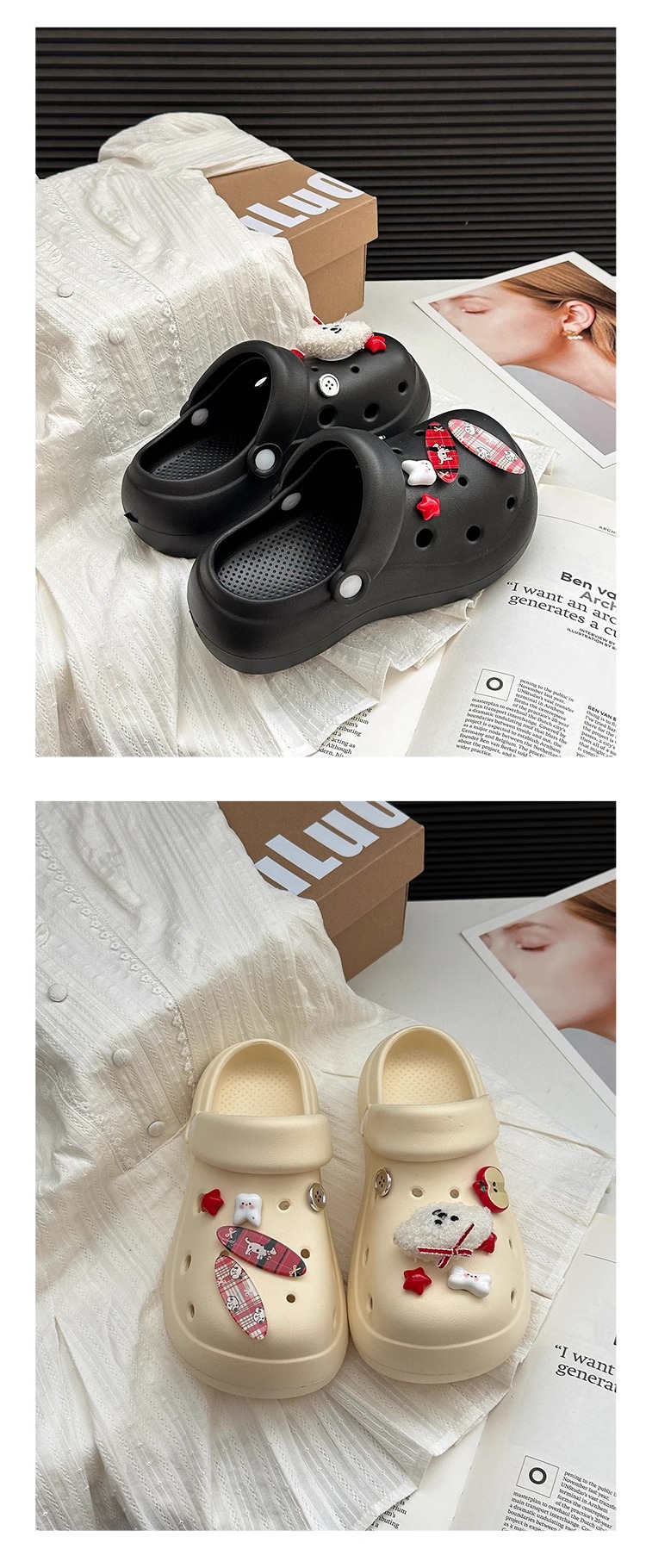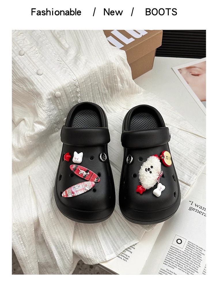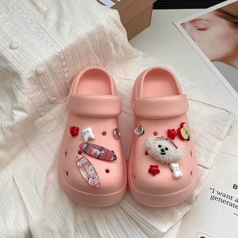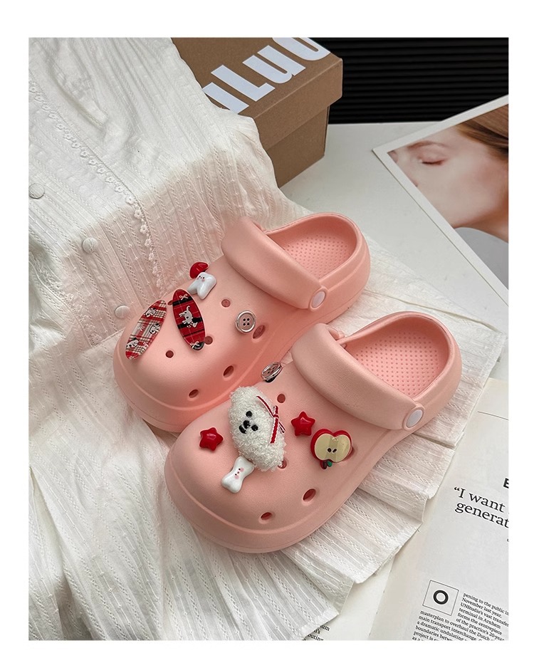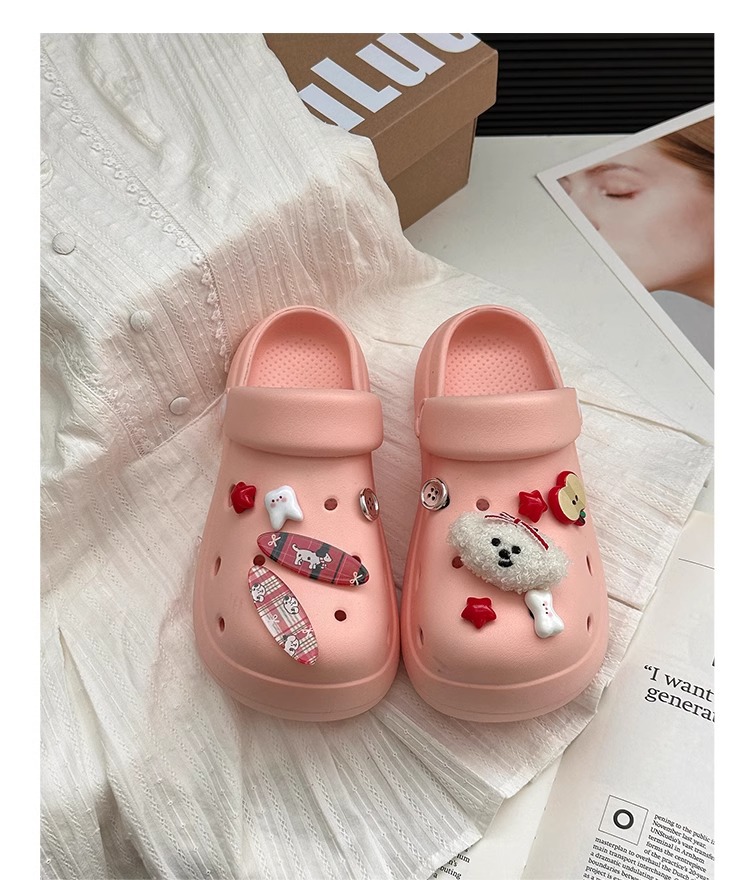 귀여운 강아지 두꺼운 단독 동굴 신발 여성의 봄과 여름 2025 새로운 Ins 올매치 캐주얼 아우터 착용 미끄럼 방지 비치 샌들스토어 가기