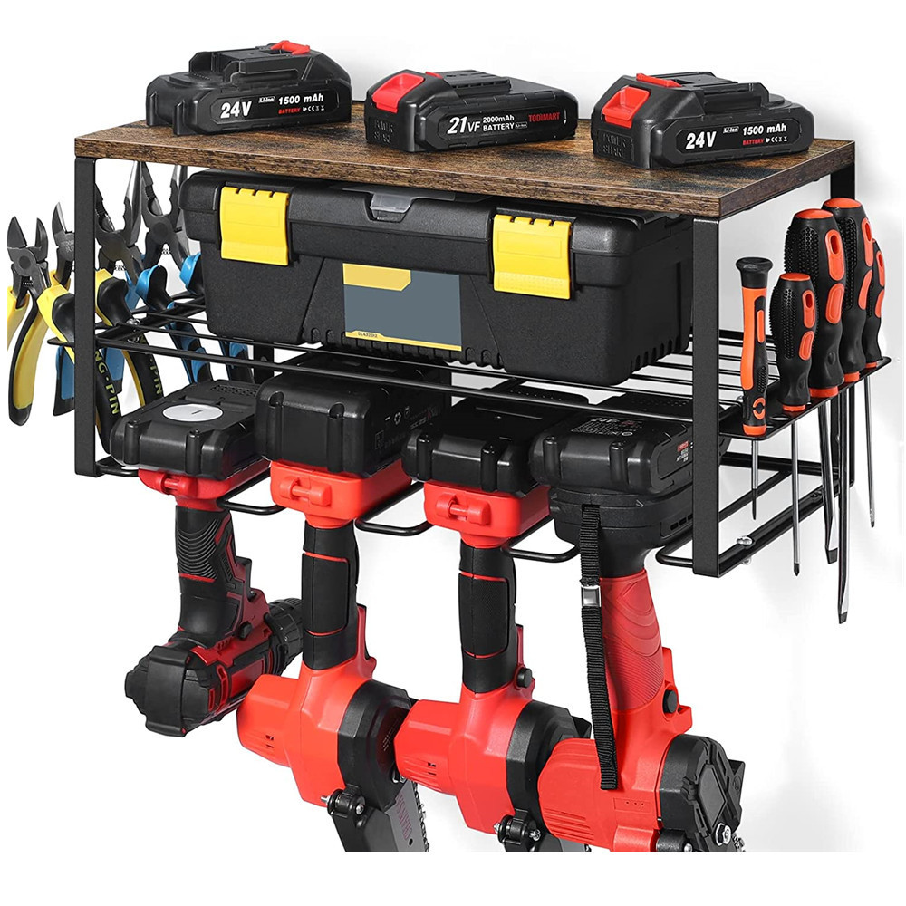 전동 공구 보관 랙 차고 도구 보관 랙 벽걸이 형 금속 도구 랙 실용적인 보관 랙 목재 보드 모델