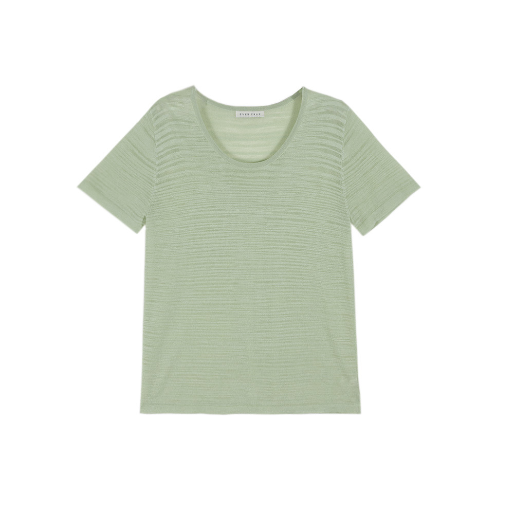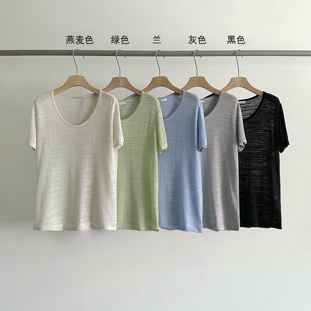 EVERTRUE 2025 여름 한국 스타일 새로운 리넨 니트 티셔츠 여성용 느슨한 짧은 소매 라운드 넥 탑 65641스토어 가기