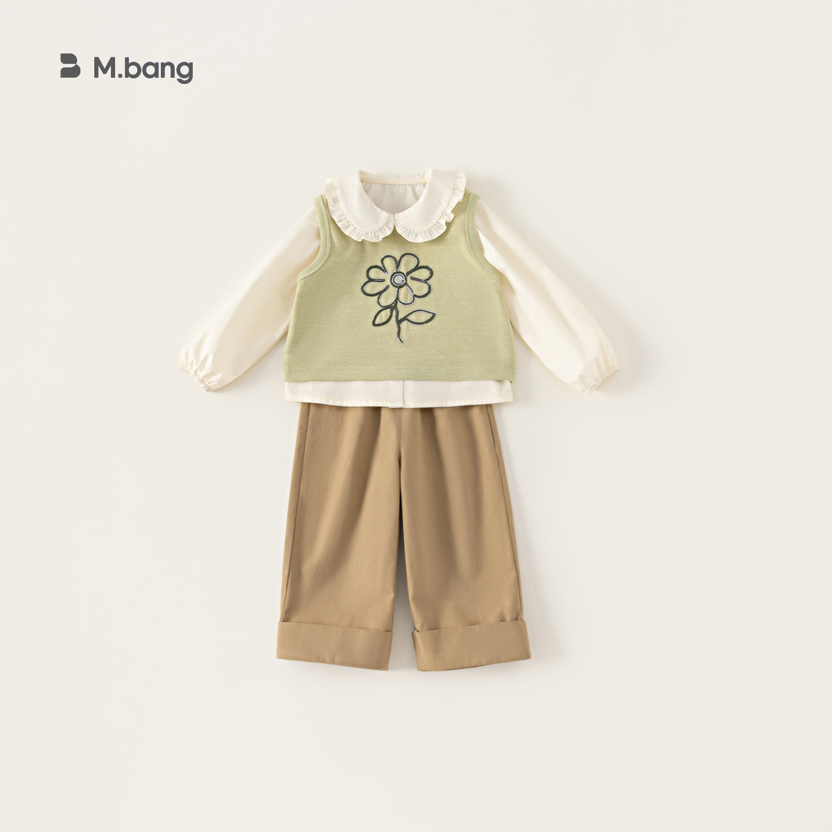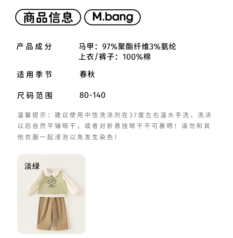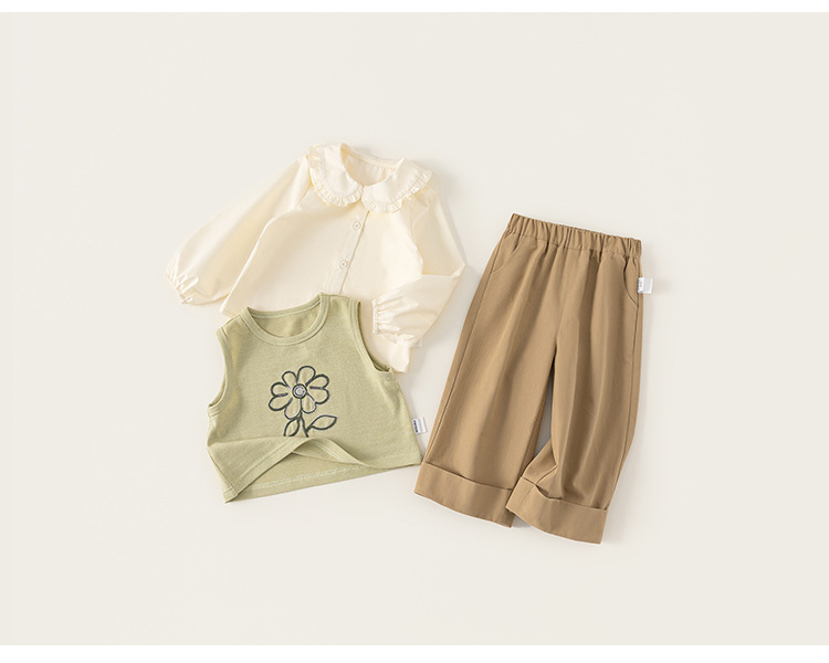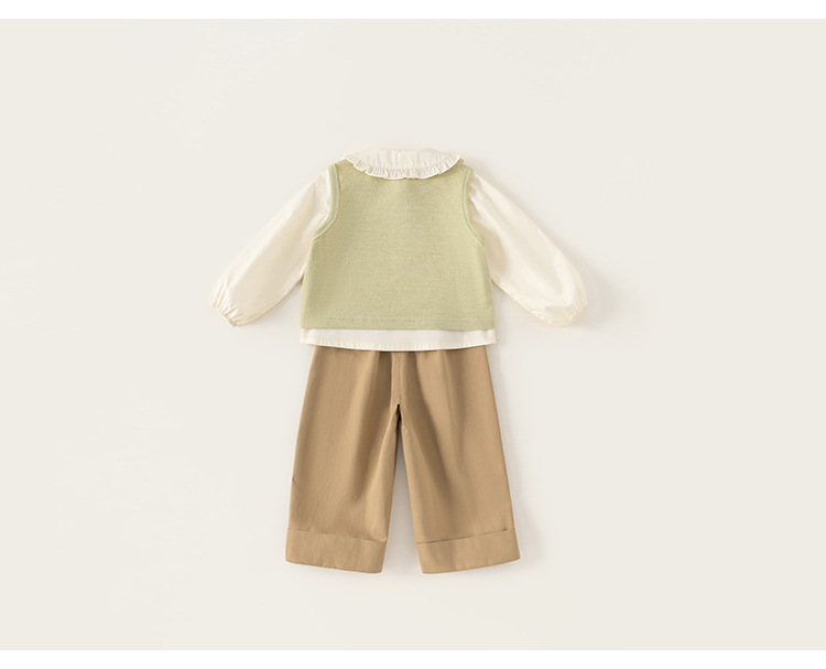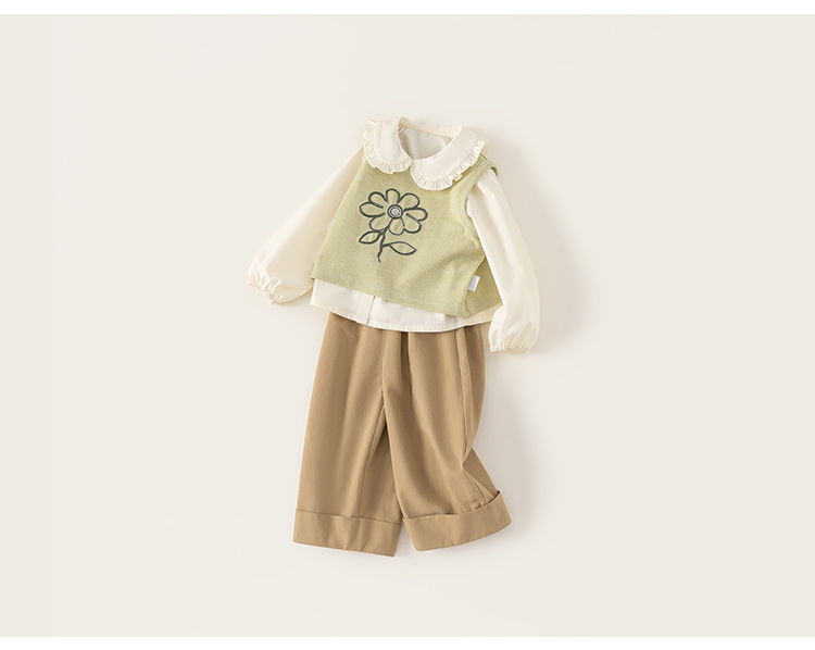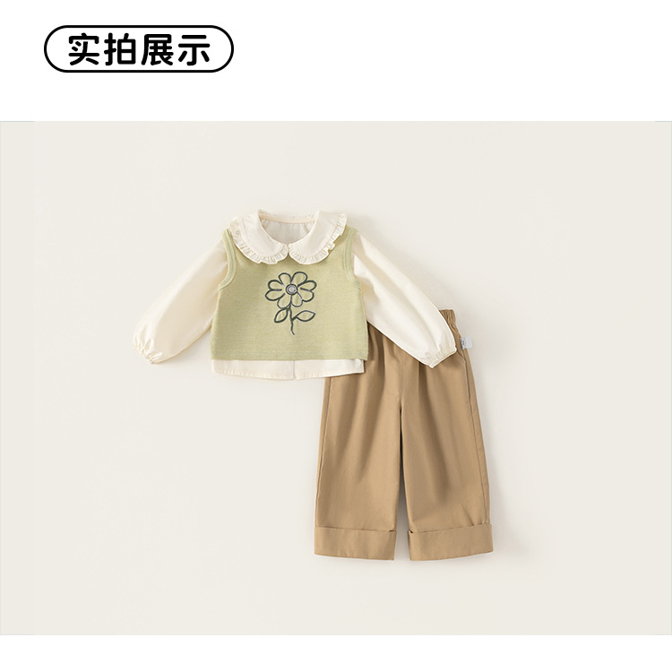 봉 선정한 여자 봄 세트 어린이 인형 칼라 셔츠 니트 조끼 솔리드 컬러 캐주얼 바지 3 피스 세트