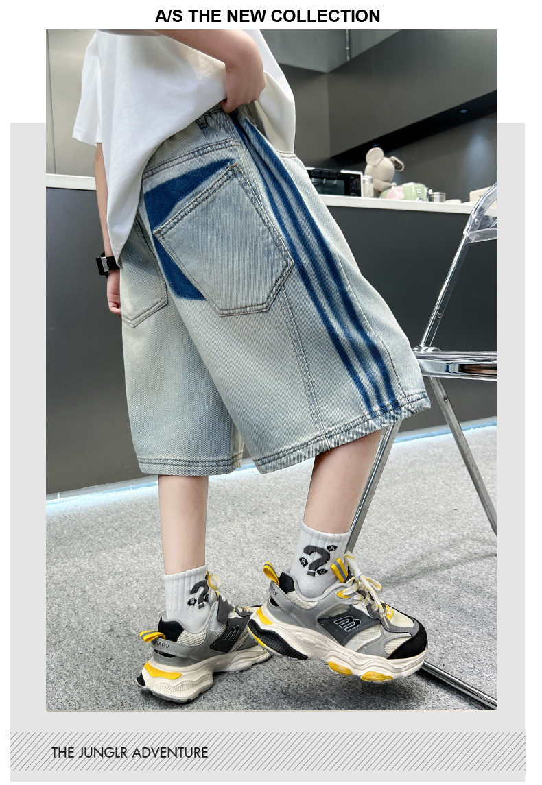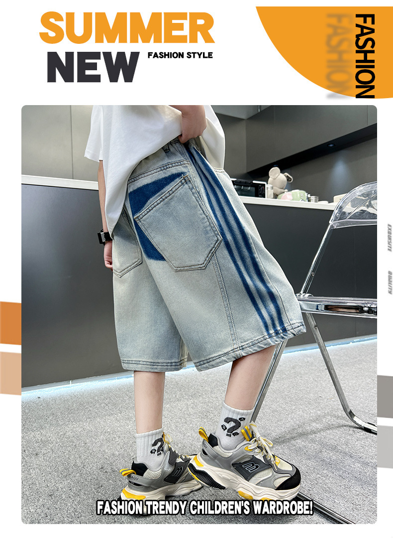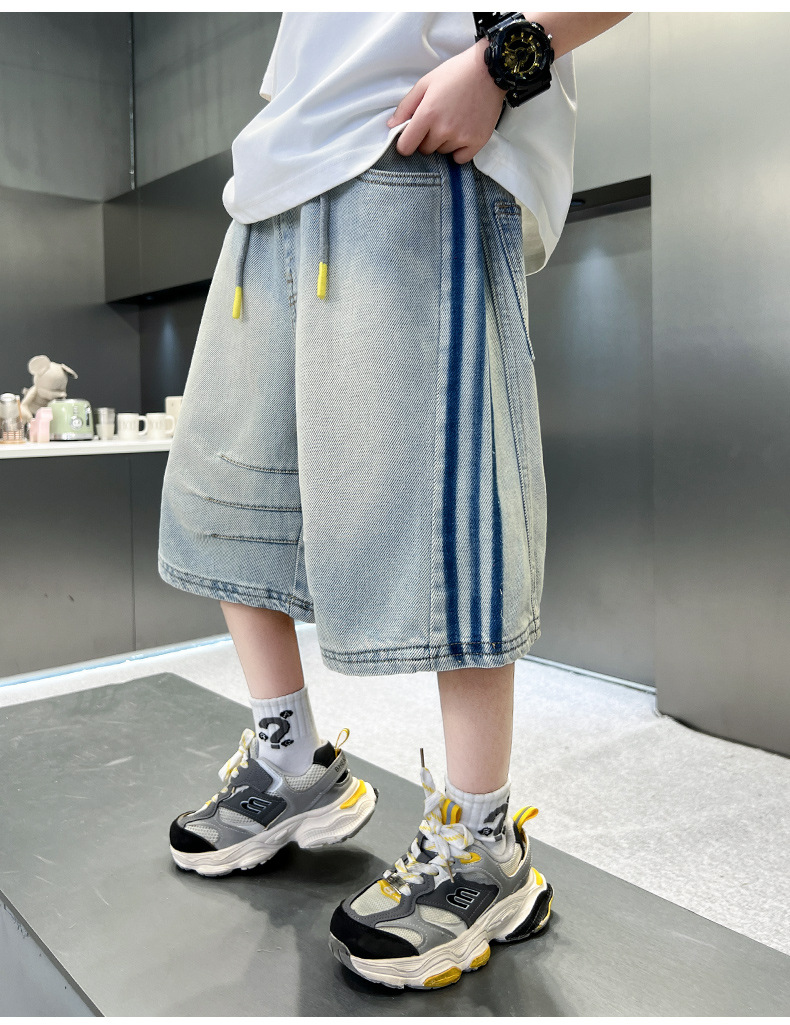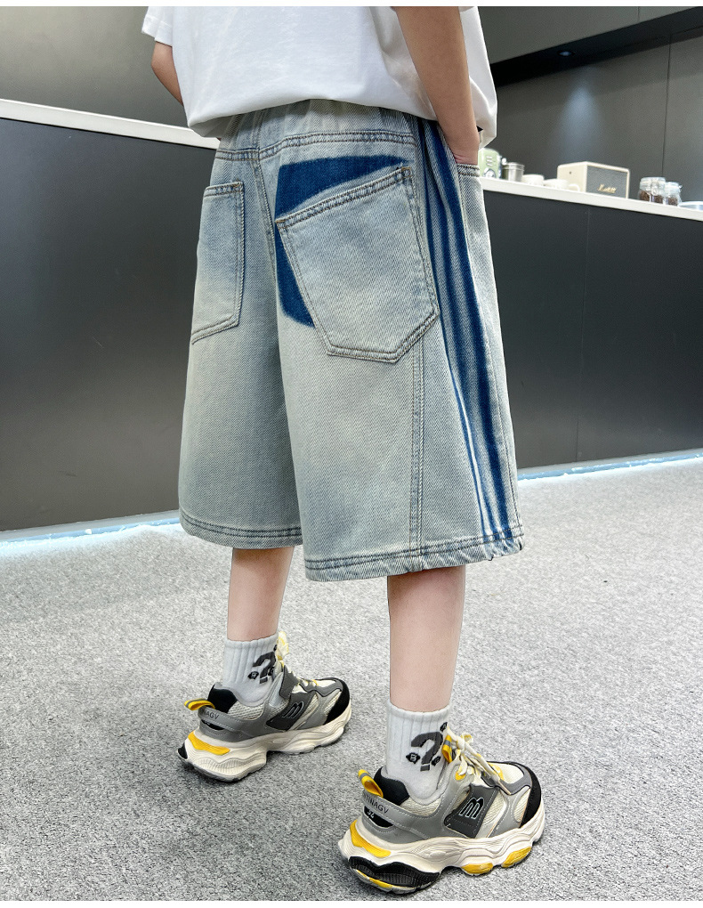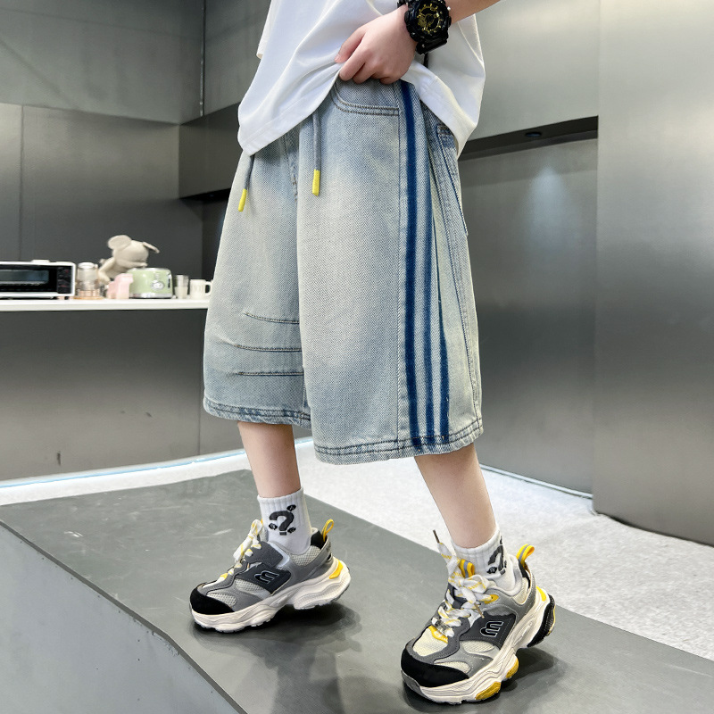 소년 여름 데님 반바지 얇은 2025 새로운 하이 스트리트 스포츠 바지 어린이 여름 바지스토어 가기