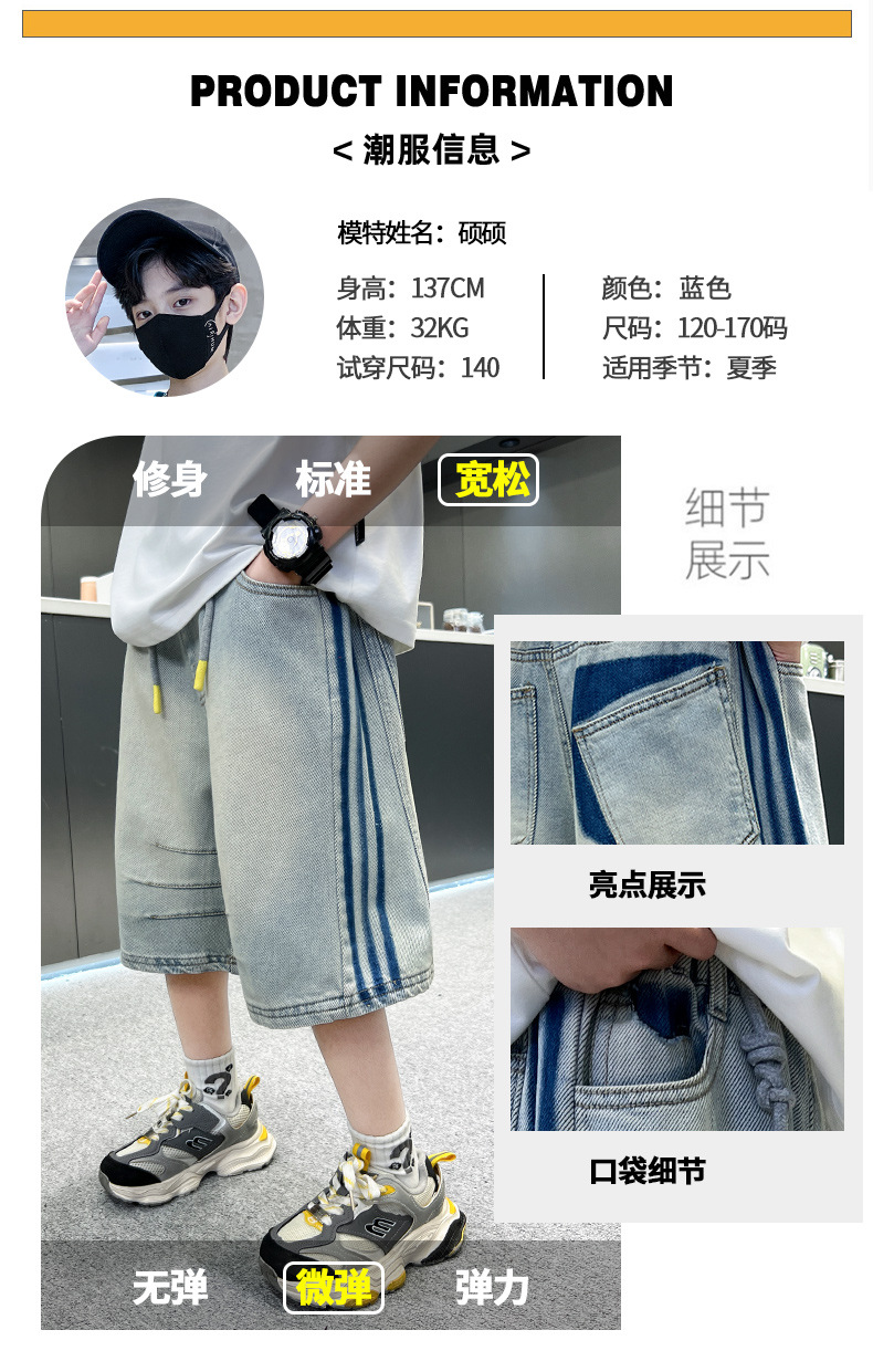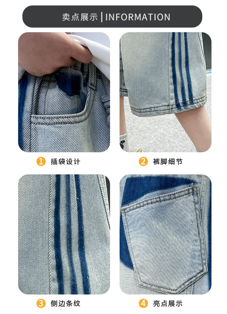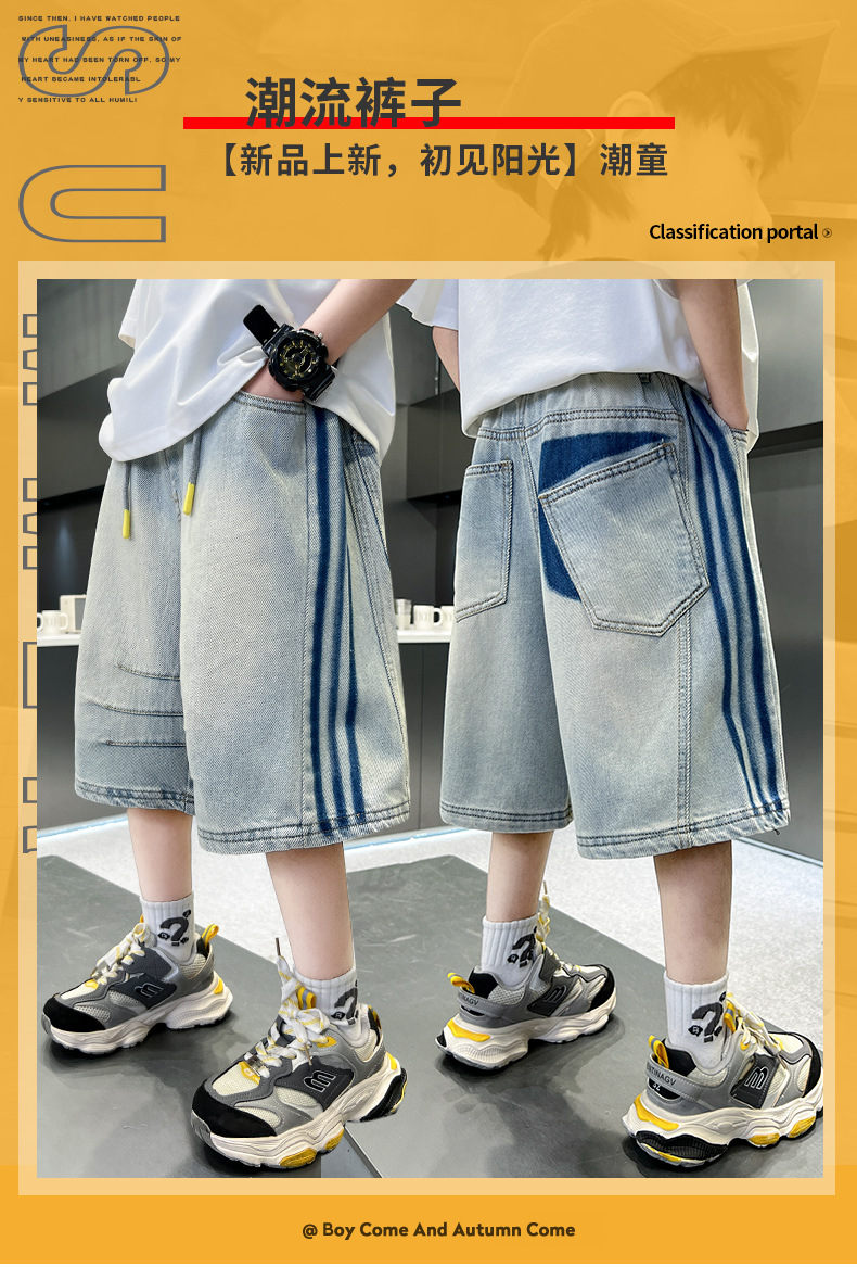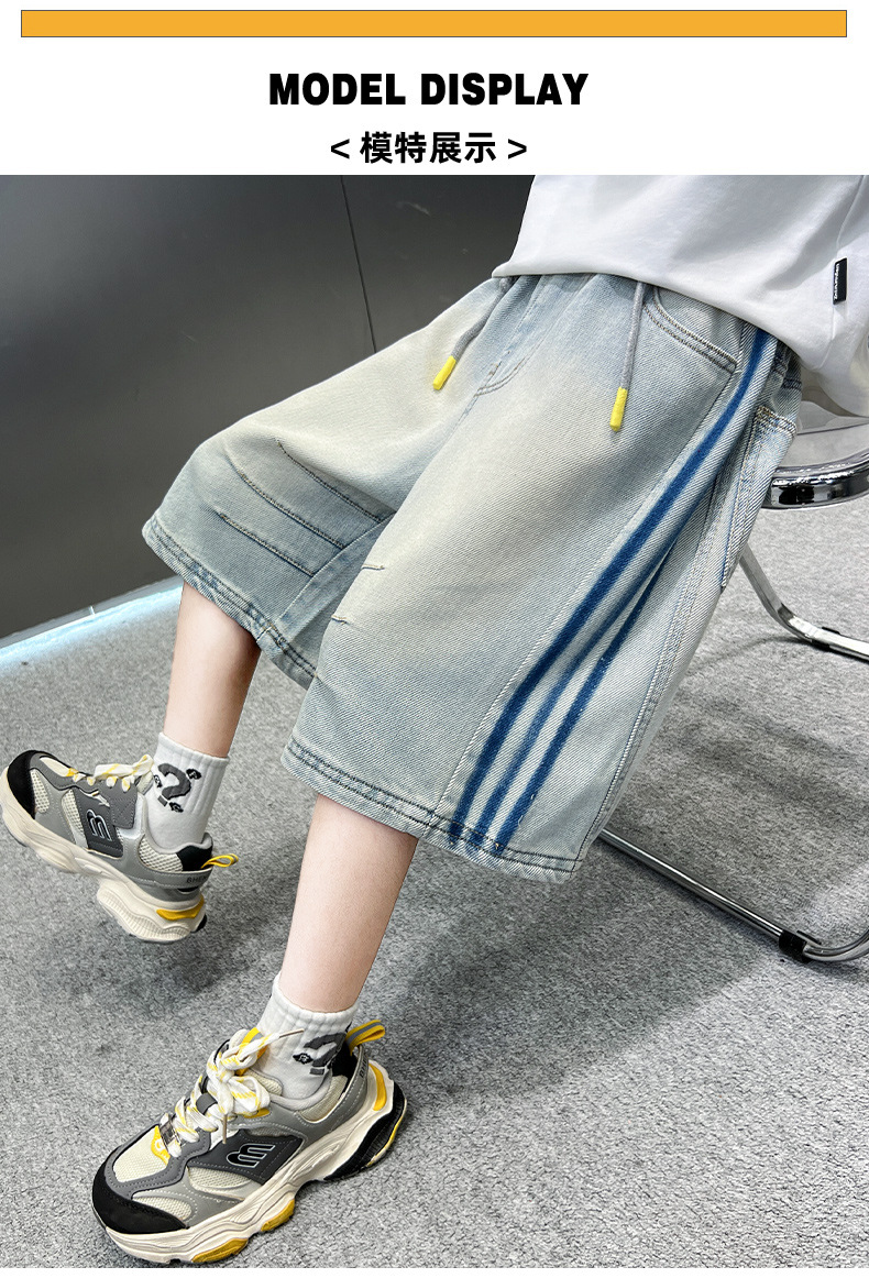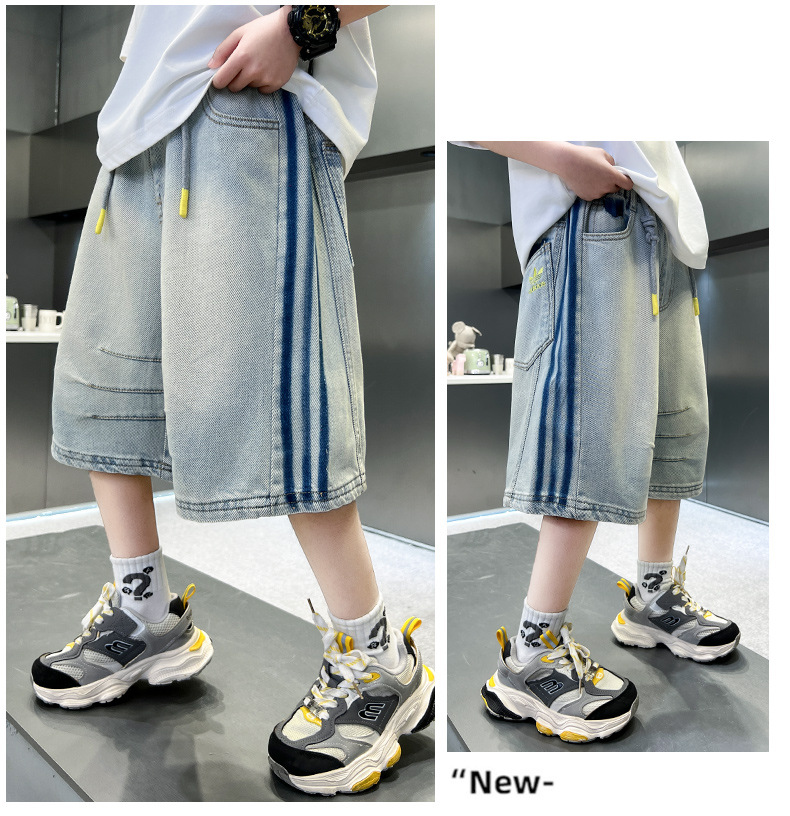소년 여름 데님 반바지 얇은 2025 새로운 하이 스트리트 스포츠 바지 어린이 여름 바지스토어 가기