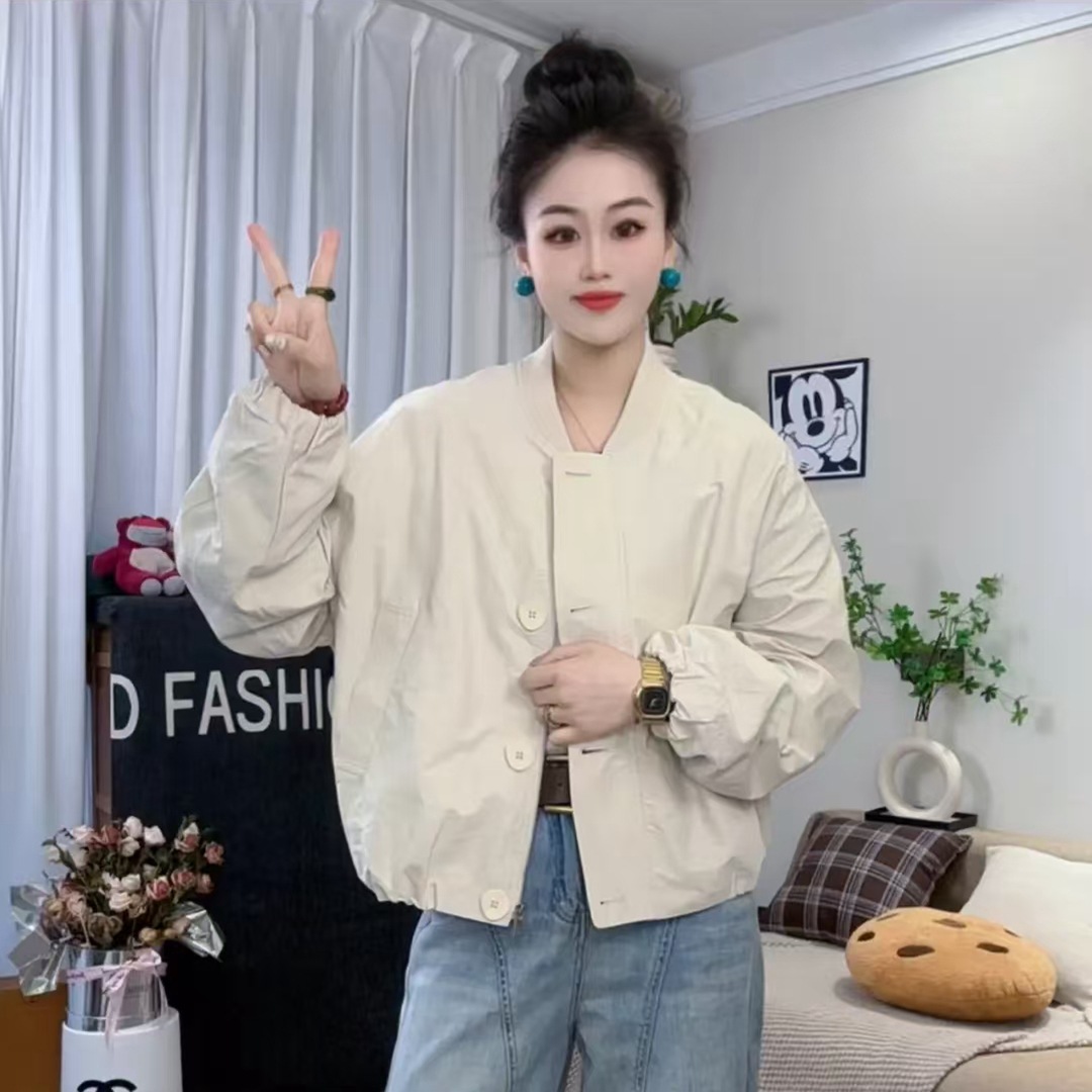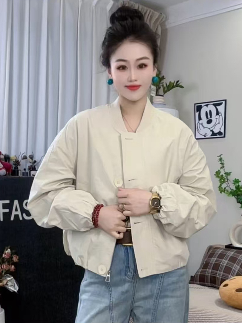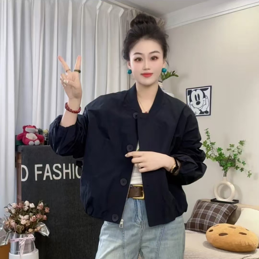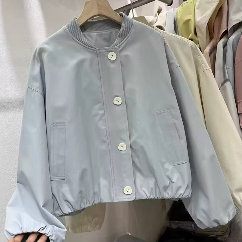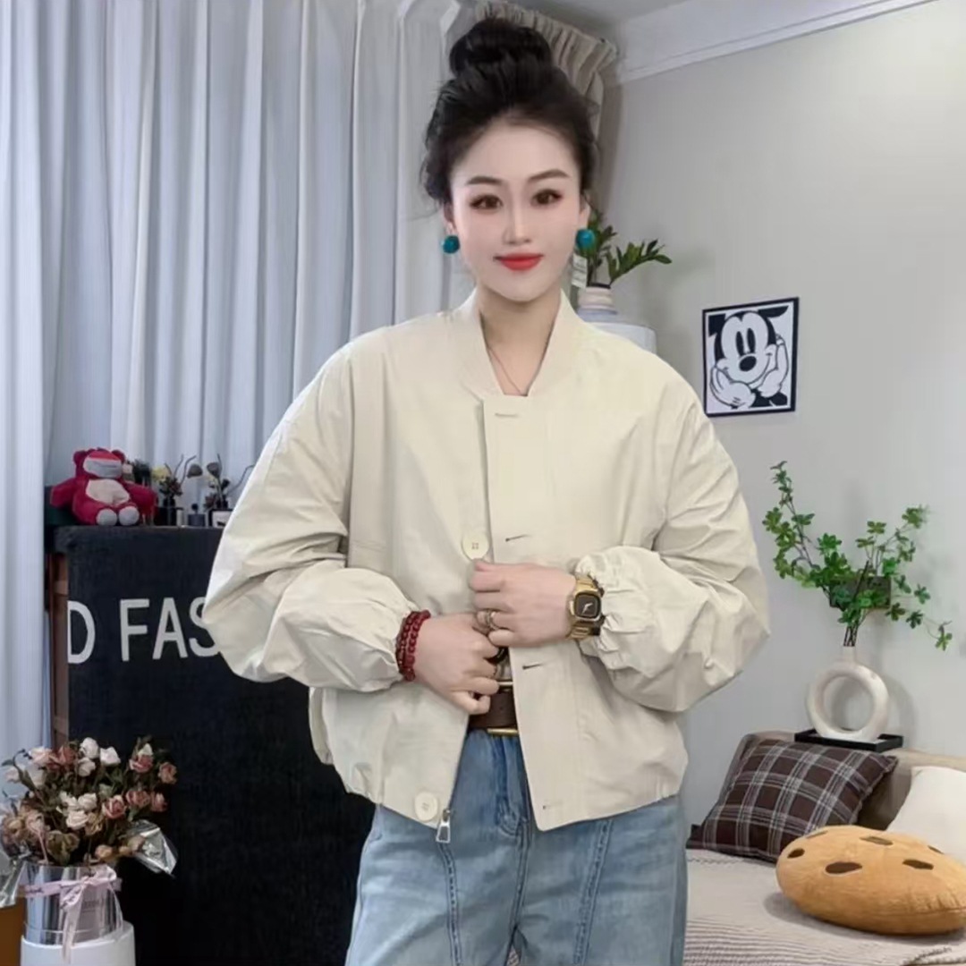 한국 스타일 둥근 목 짧은 재킷 여자 2025 봄 새로운 유행 간단한 느슨한 캐주얼 카디건 재킷스토어 가기