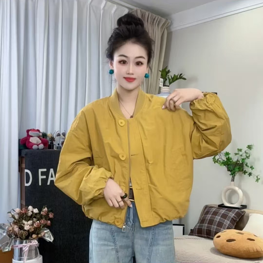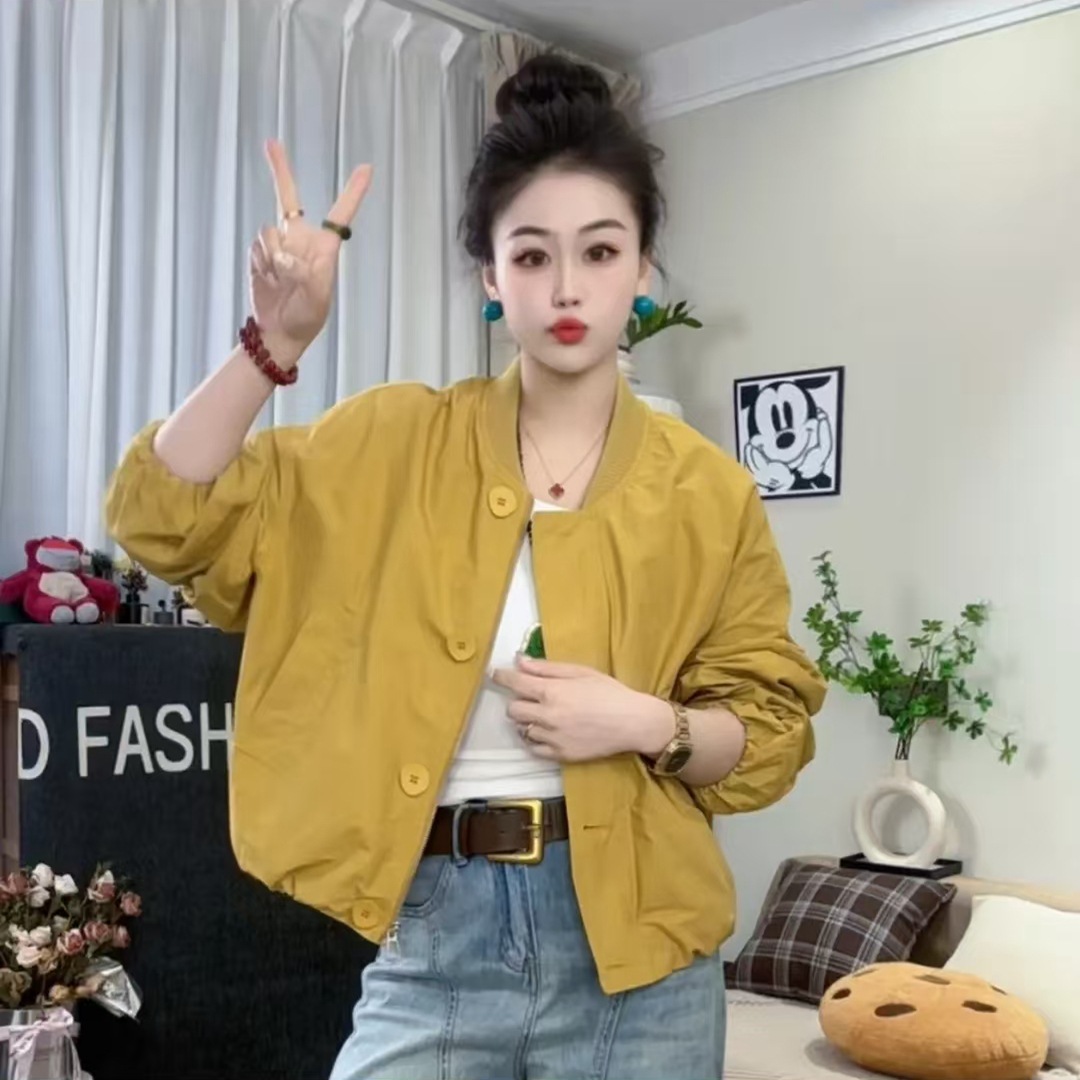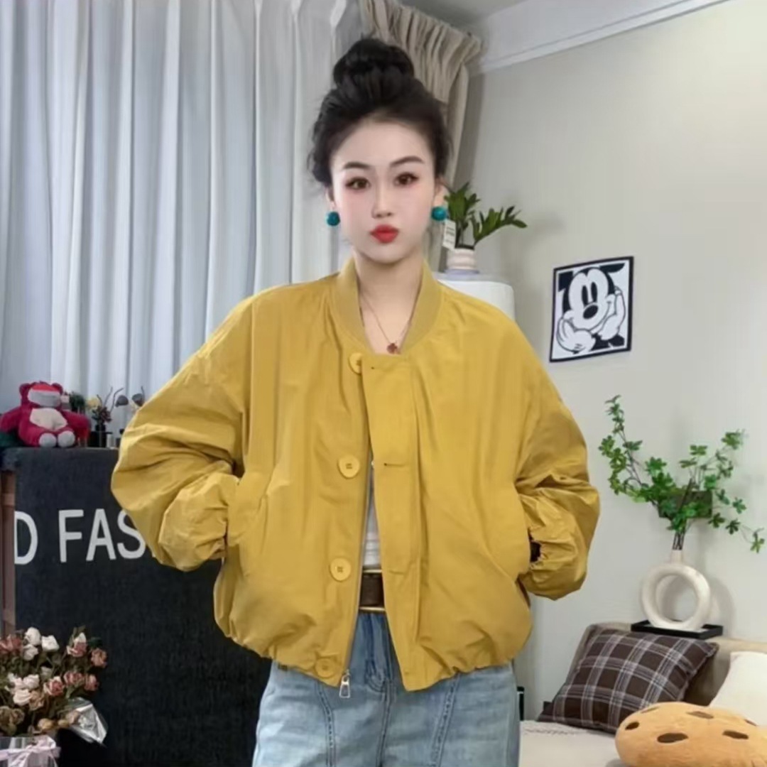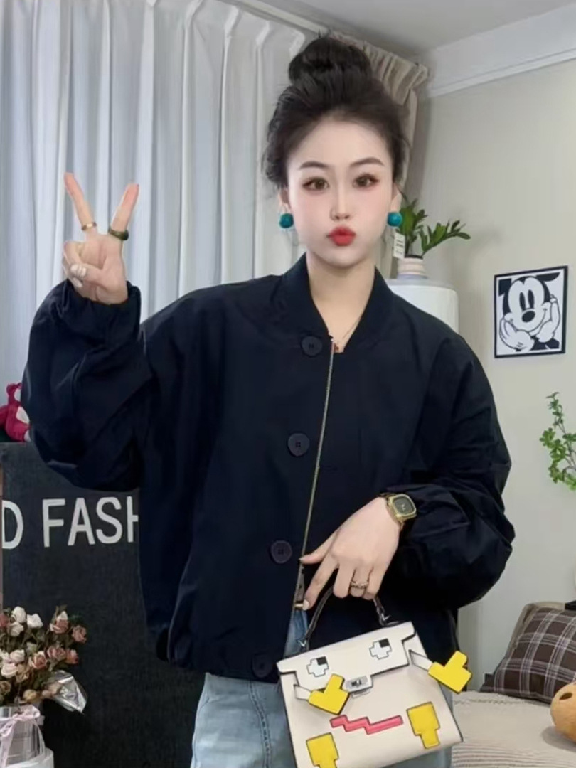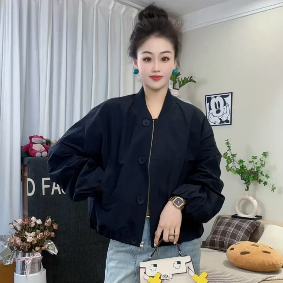 한국 스타일 둥근 목 짧은 재킷 여자 2025 봄 새로운 유행 간단한 느슨한 캐주얼 카디건 재킷스토어 가기
