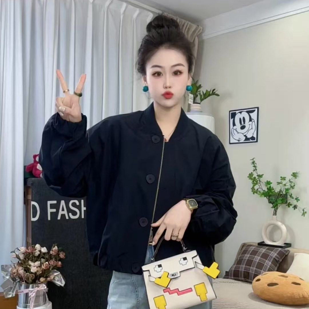 한국 스타일 둥근 목 짧은 재킷 여자 2025 봄 새로운 유행 간단한 느슨한 캐주얼 카디건 재킷