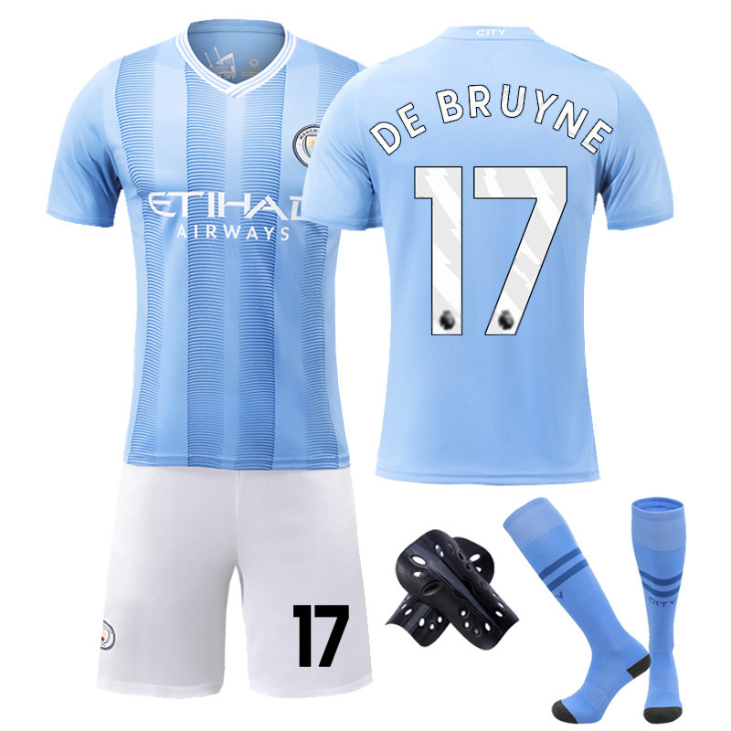 도매 24 새로운 맨체스터 시티 홈 맞춤형 축구 유니폼 세트 No. 9 Haaland No. 17 De Bruyne 저지스토어 가기