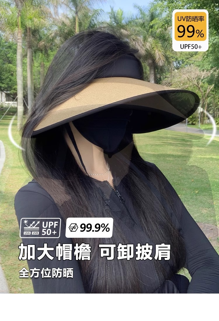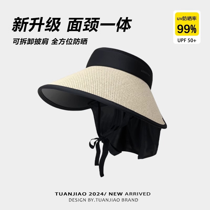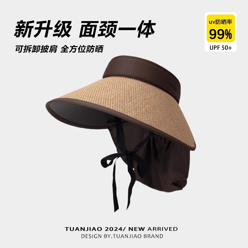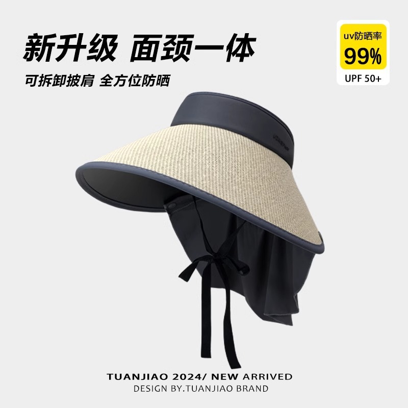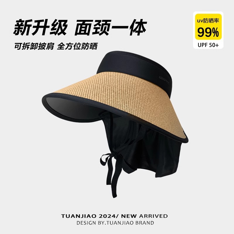 여성용 밀짚 챙 없는 모자, 자외선 차단, 블랙코팅, 신상, 넓은 챙, 얼굴 작아 보이는 캐주얼 썬캡