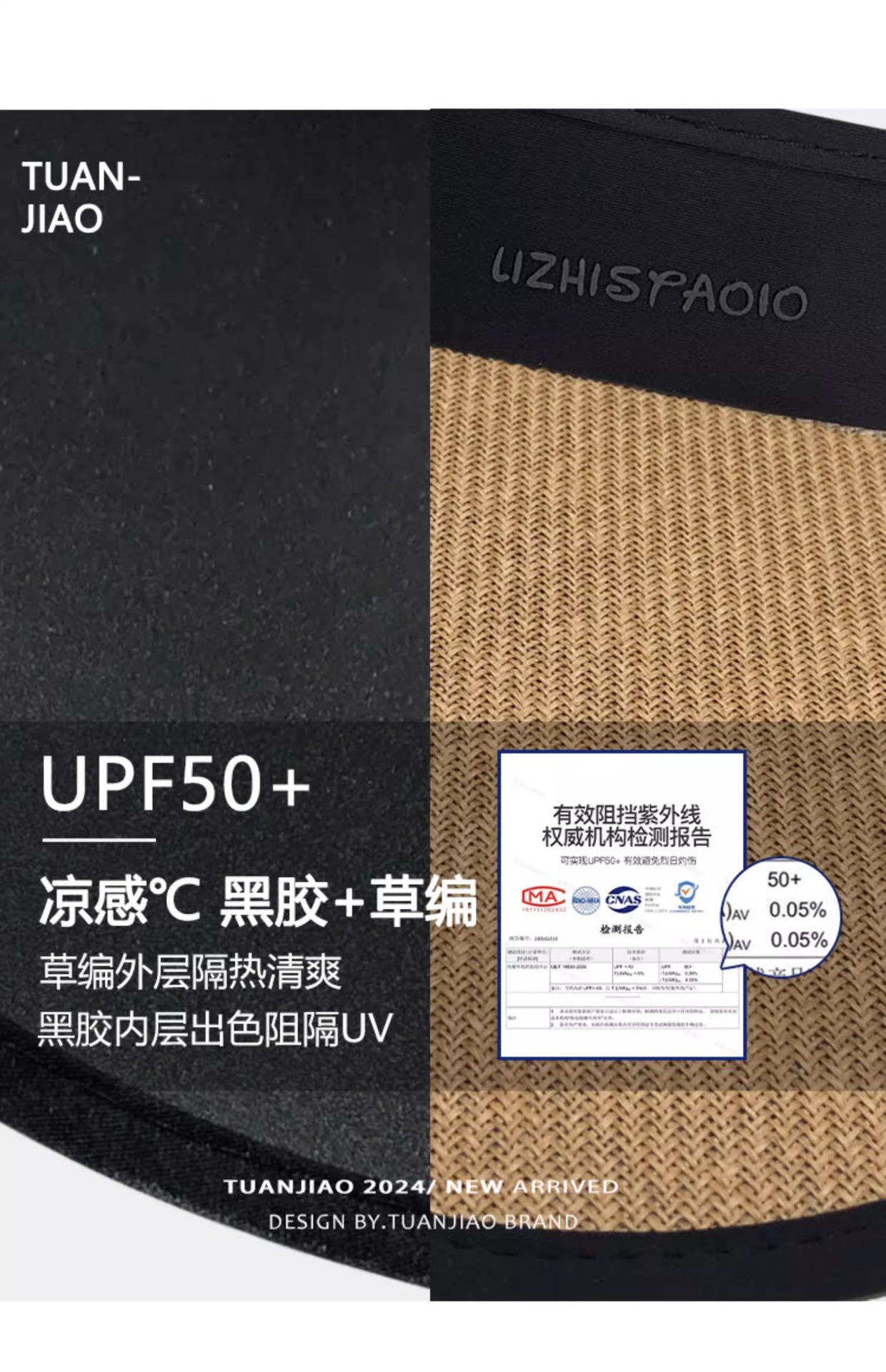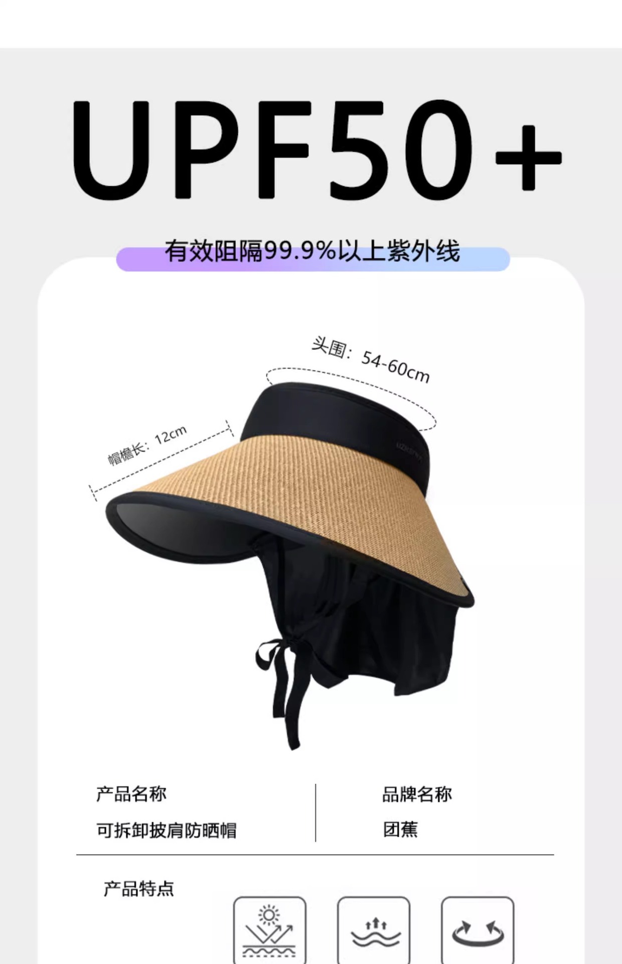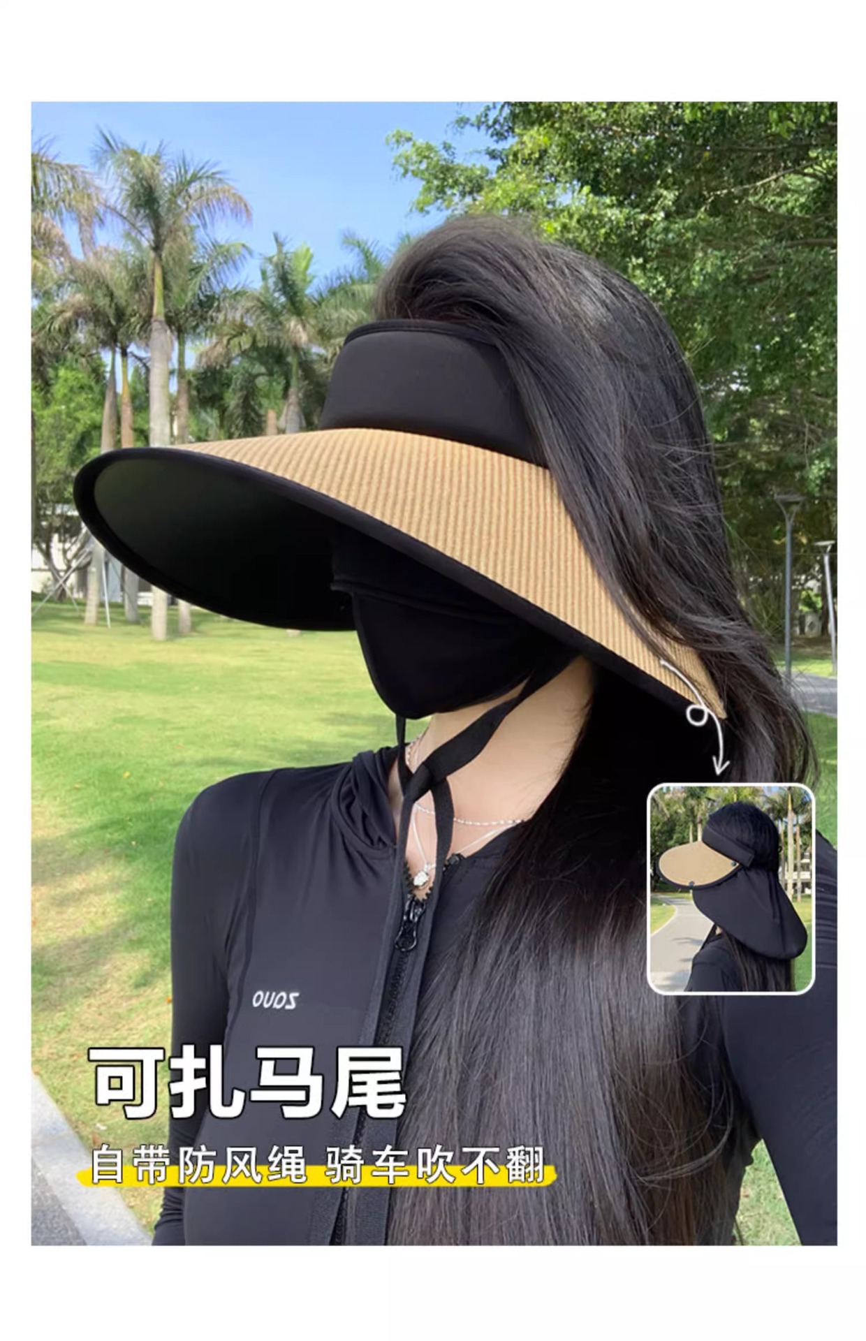 여성용 밀짚 챙 없는 모자, 자외선 차단, 블랙코팅, 신상, 넓은 챙, 얼굴 작아 보이는 캐주얼 썬캡