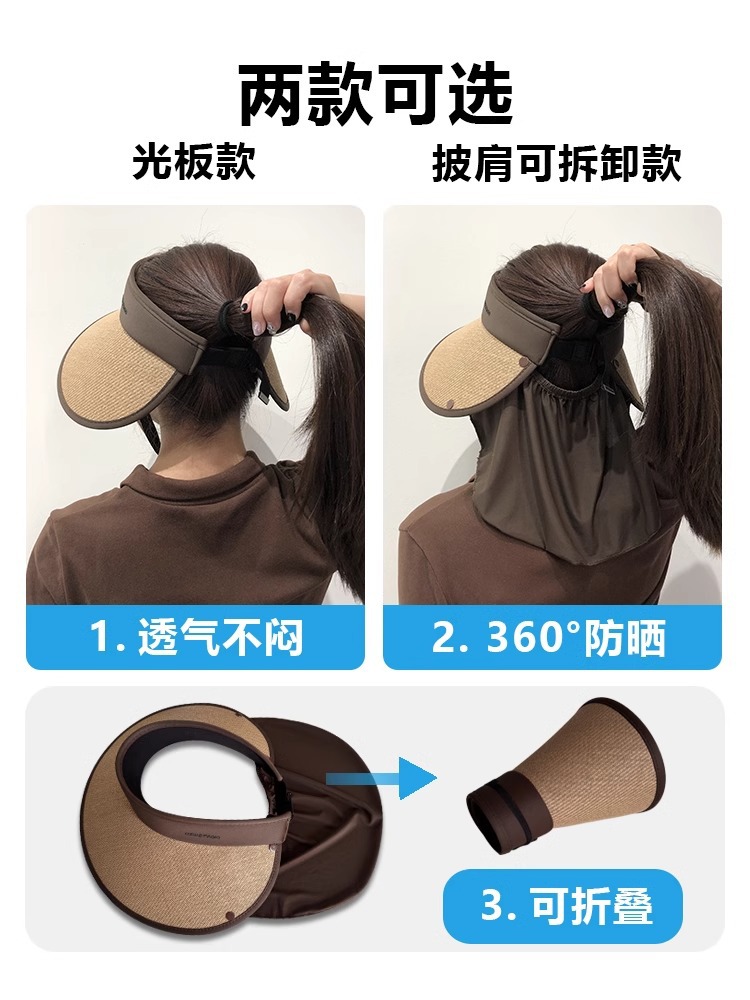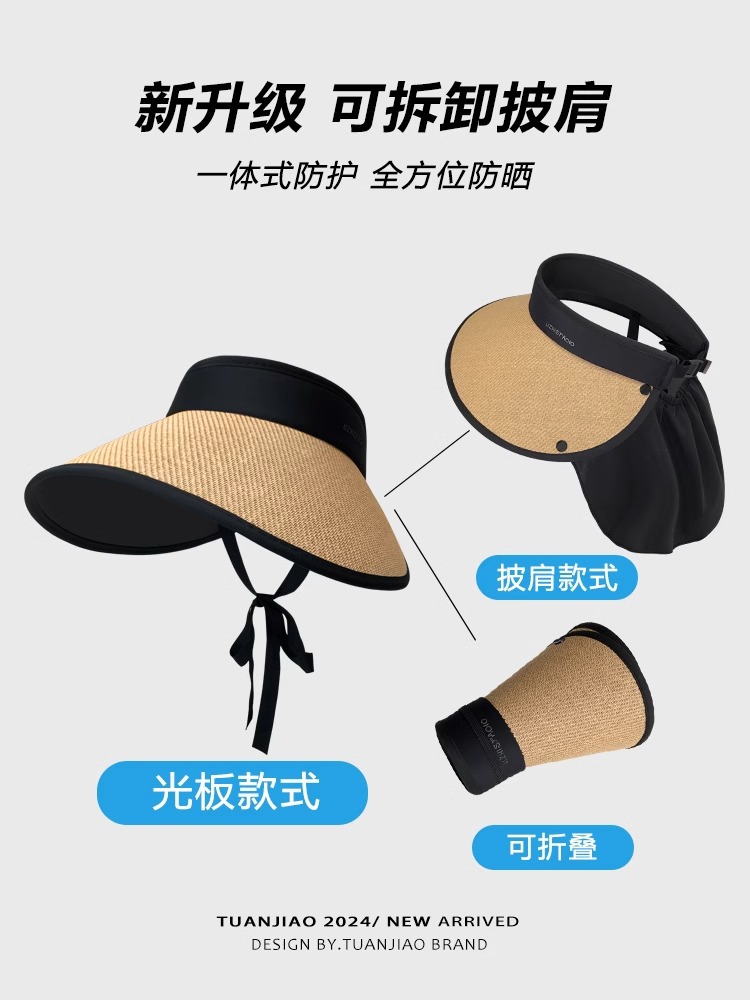 여성용 밀짚 챙 없는 모자, 자외선 차단, 블랙코팅, 신상, 넓은 챙, 얼굴 작아 보이는 캐주얼 썬캡스토어 가기