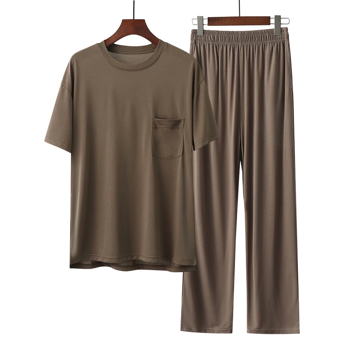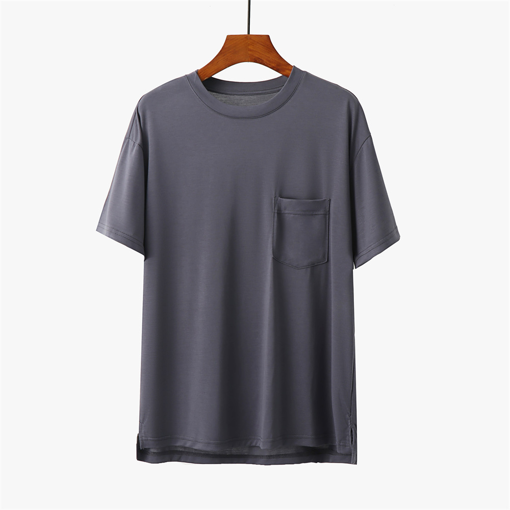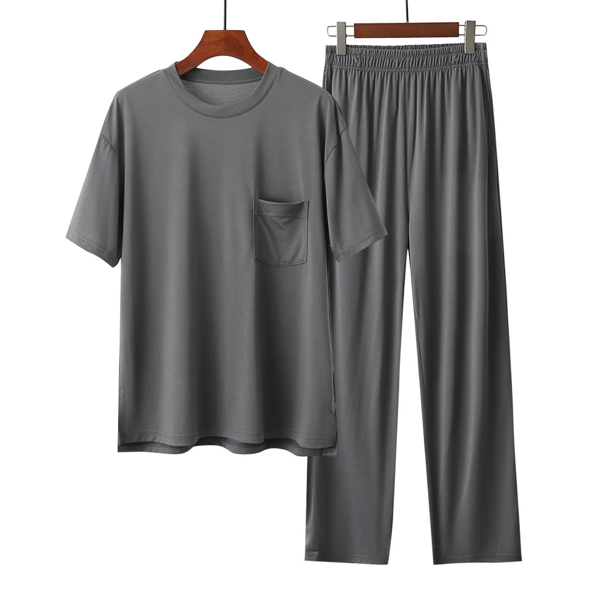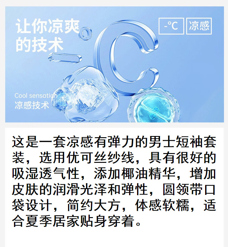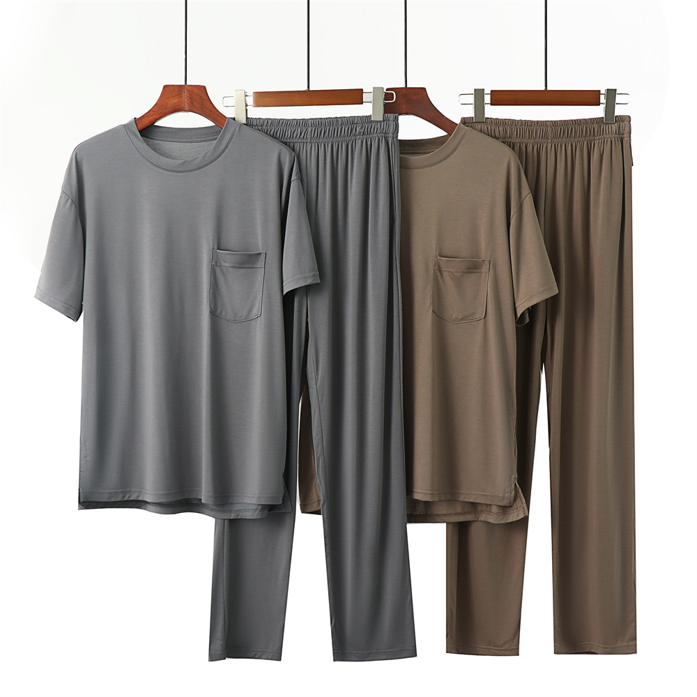 코코넛 오일 에코 실크 여름 얇은 반팔 남성 잠옷 라운드 넥 시원한 얼음 실크 반팔 바지 정장 홈웨어