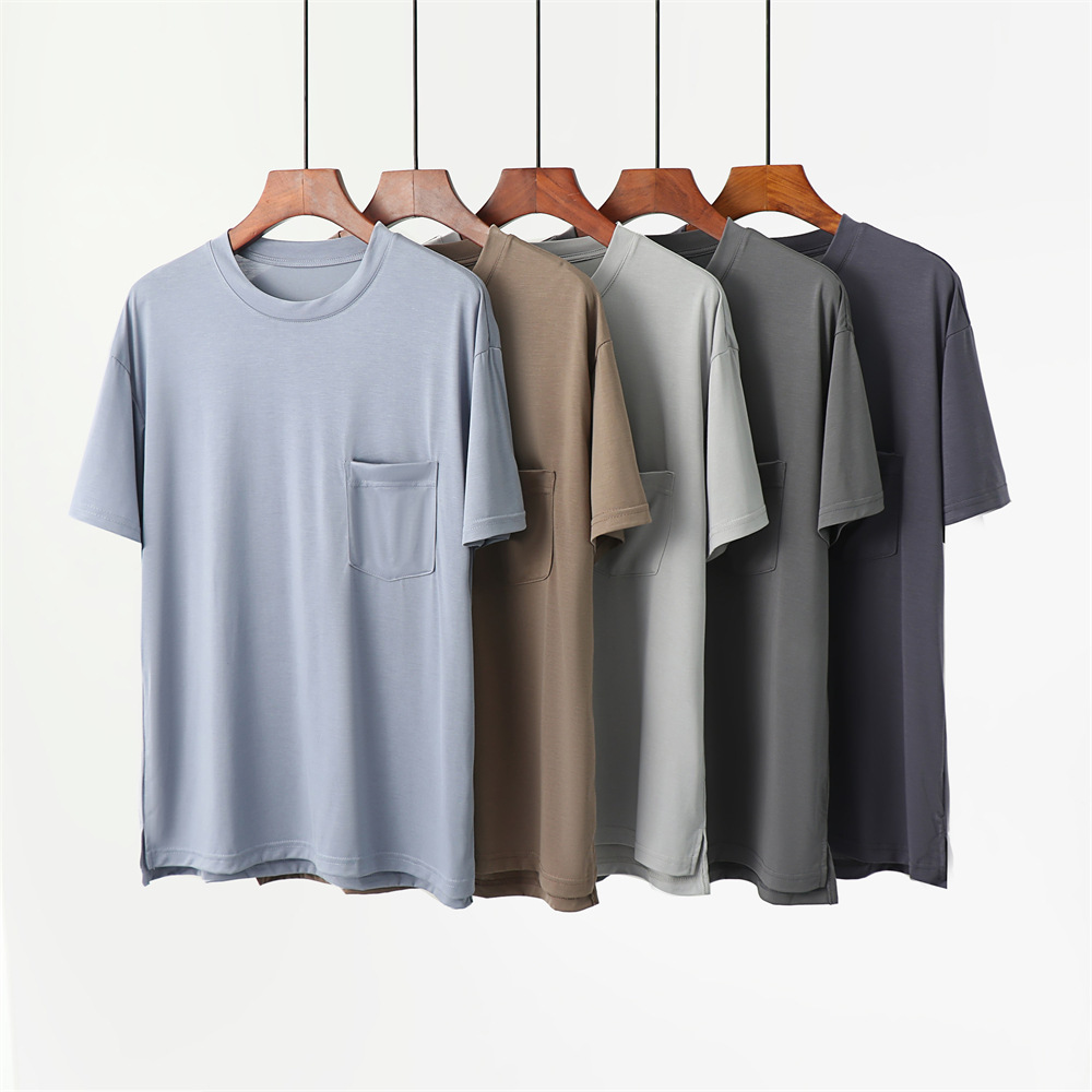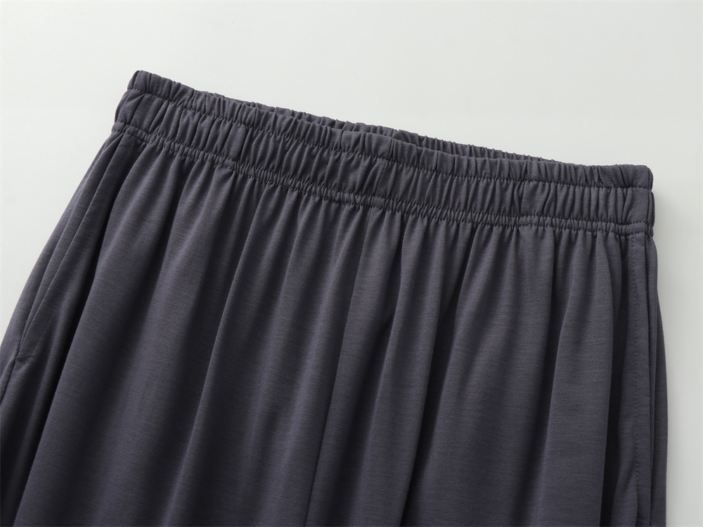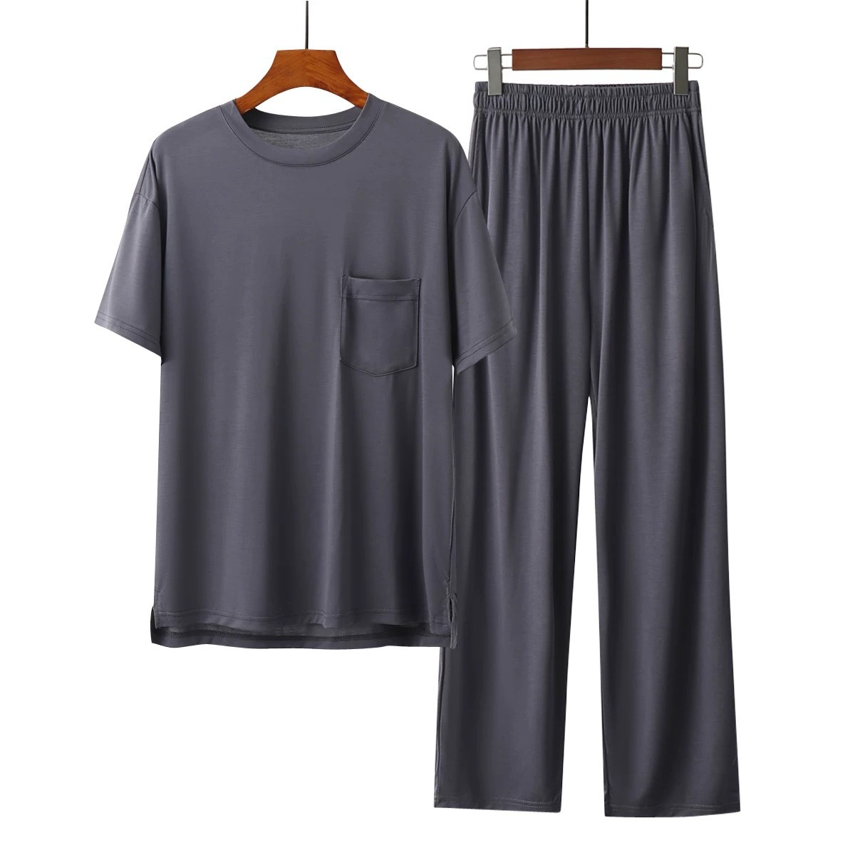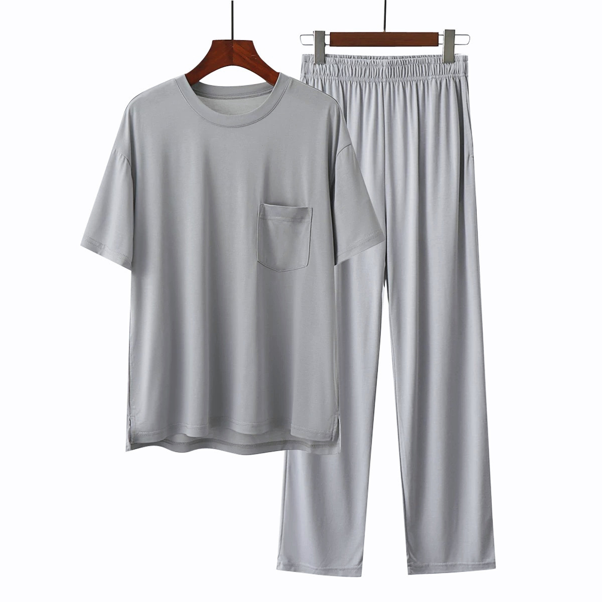 코코넛 오일 에코 실크 여름 얇은 반팔 남성 잠옷 라운드 넥 시원한 얼음 실크 반팔 바지 정장 홈웨어