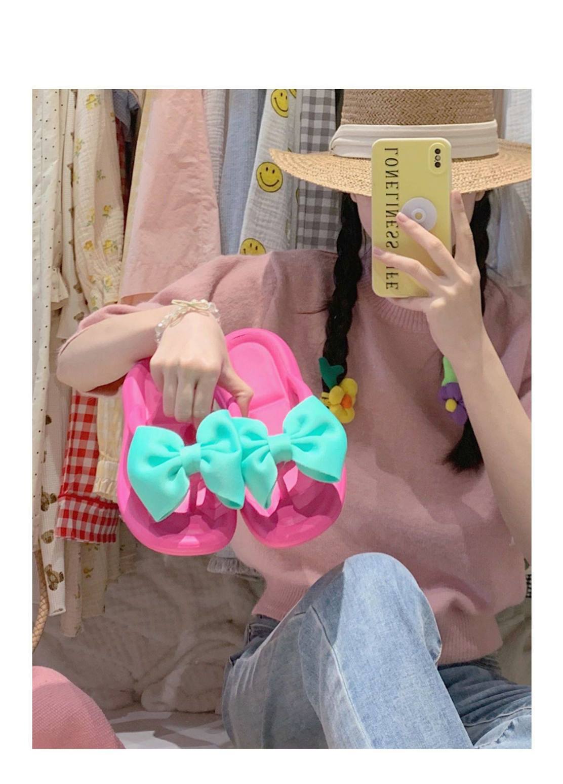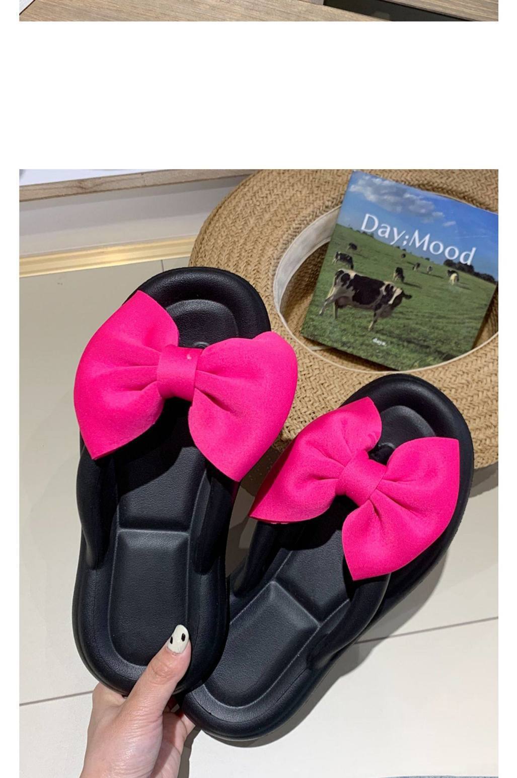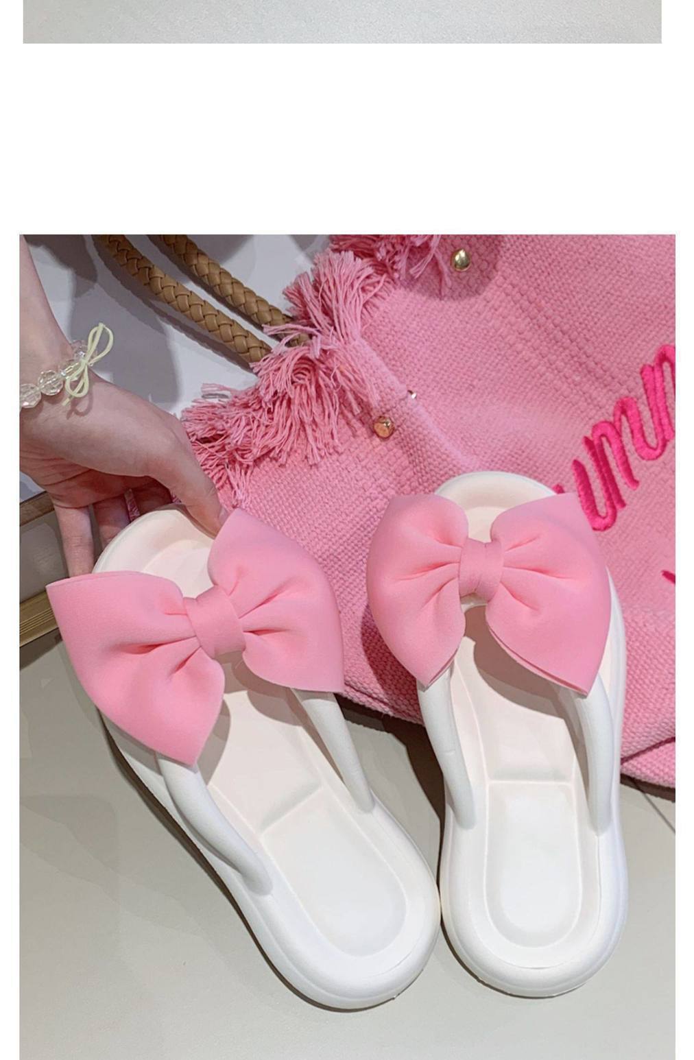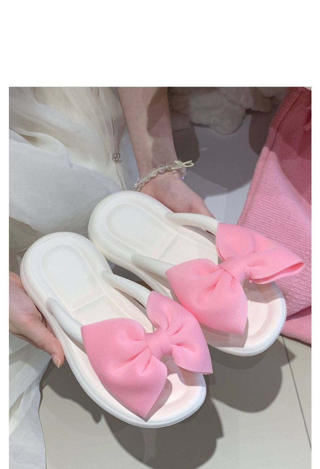 여름 아우터웨어, 여성용 달콤한 리본 플랫 슬리퍼, 해변 캐주얼 휴가, 부드러운 밑창 플립플롭, 비치 슬리퍼스토어 가기