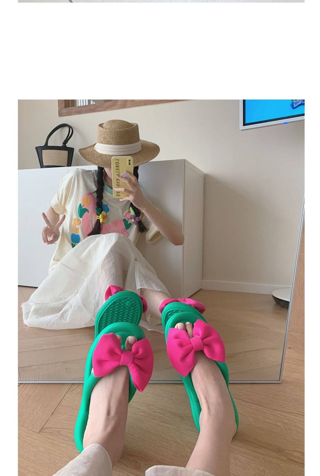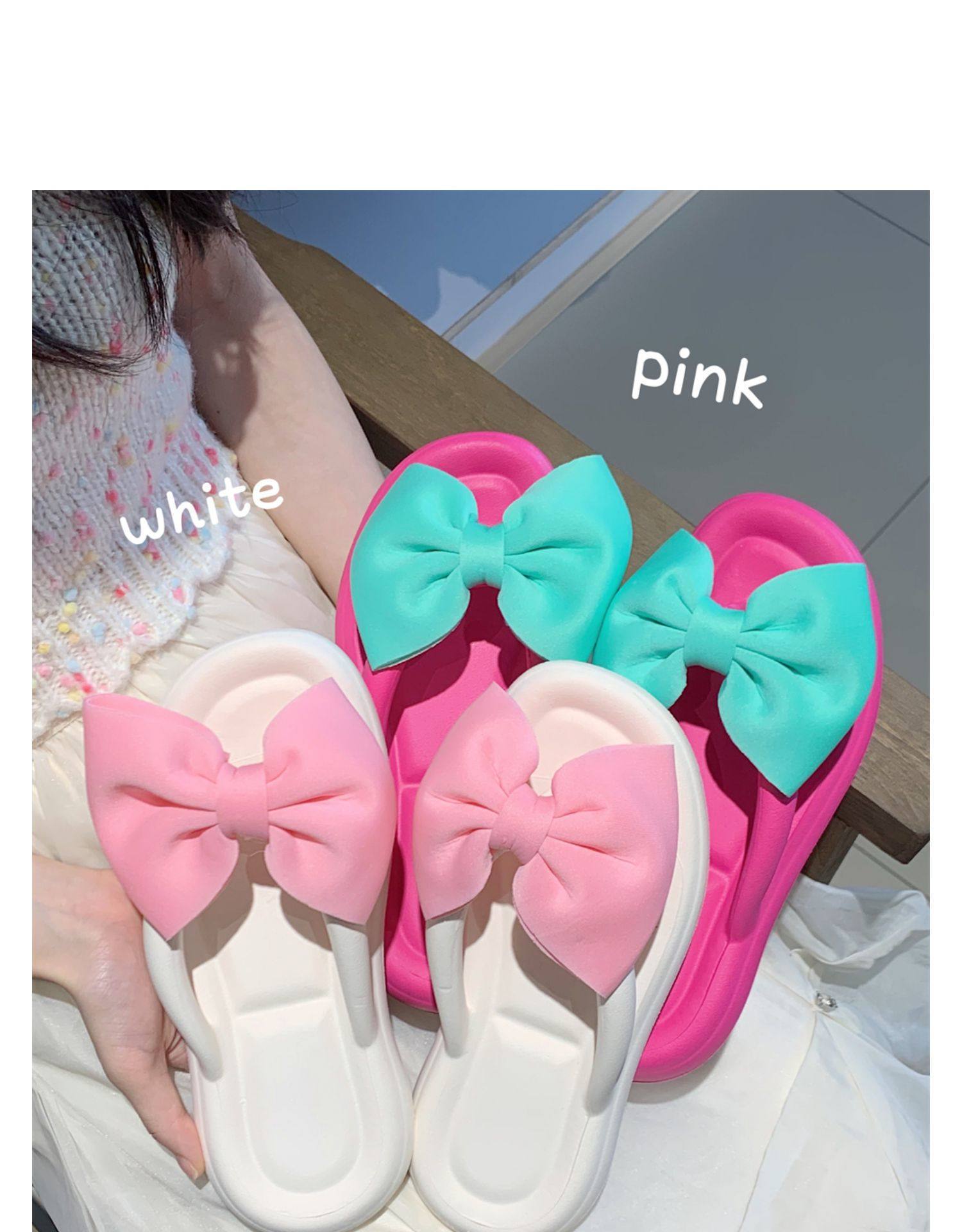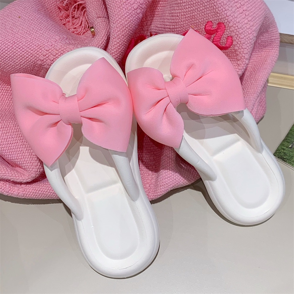여름 아우터웨어, 여성용 달콤한 리본 플랫 슬리퍼, 해변 캐주얼 휴가, 부드러운 밑창 플립플롭, 비치 슬리퍼