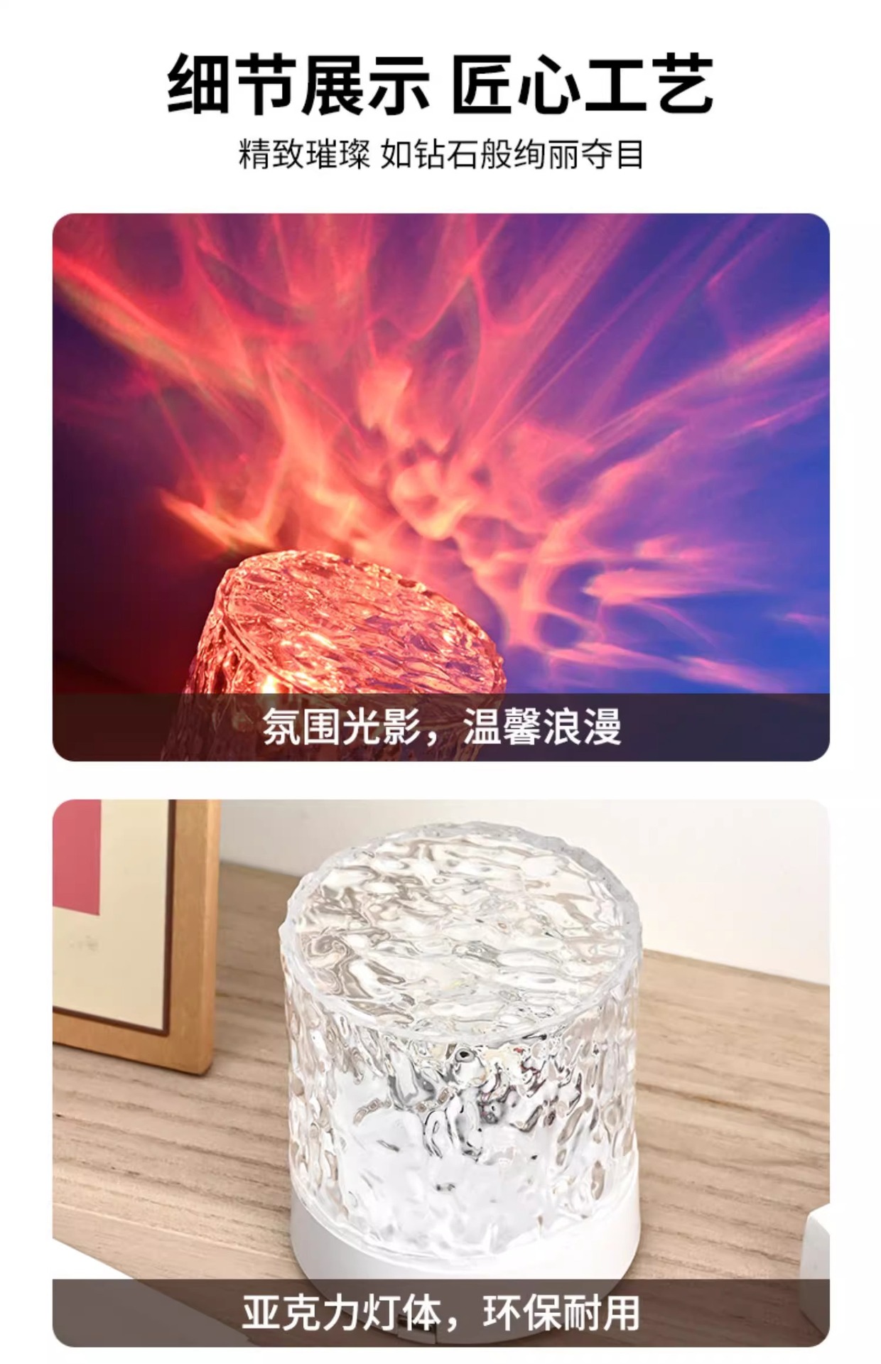 물 리플 라이트 및 그림자 동적 분위기 램프 남편과 아내 낭만적 인 분위기 침실 밤 조명 수면 침대 옆 불꽃 극단적 인 빛