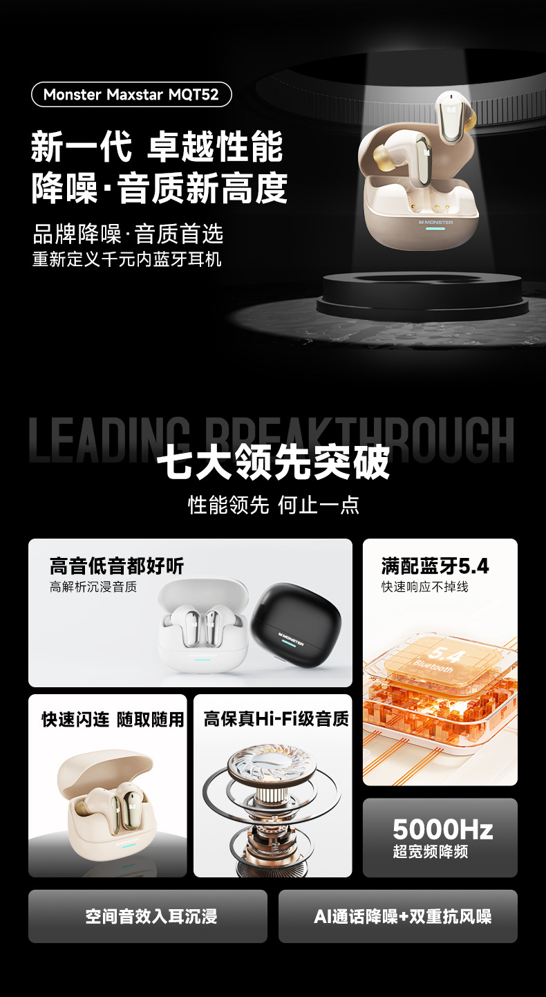 MQT52 무선 블루투스 헤드셋 ENC 소음 감소 HIFI 높은 음질 낮은 대기 HD 통화 스포츠 실행 전자 스포츠스토어 가기
