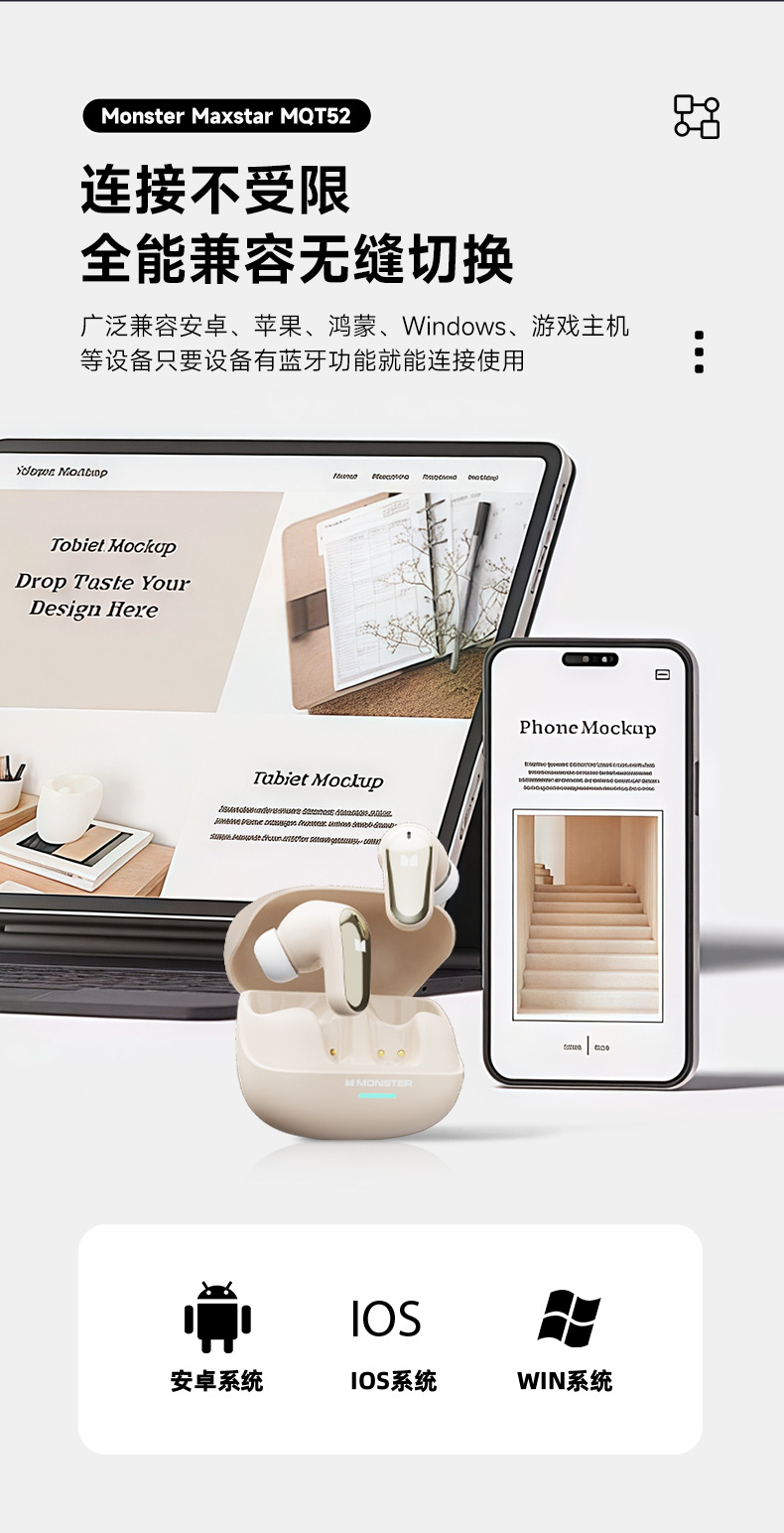 MQT52 무선 블루투스 헤드셋 ENC 소음 감소 HIFI 높은 음질 낮은 대기 HD 통화 스포츠 실행 전자 스포츠