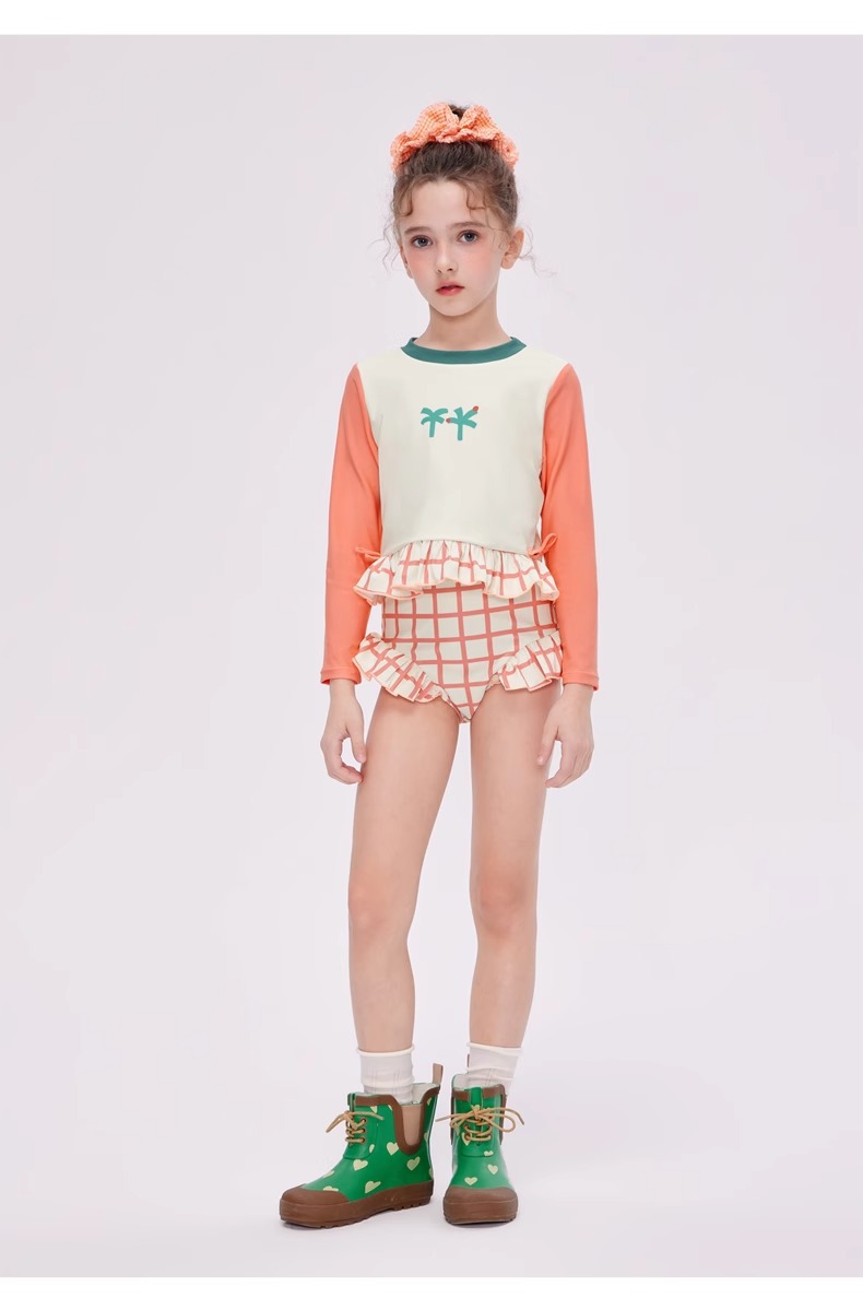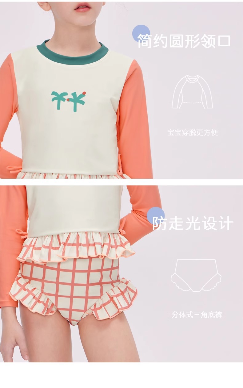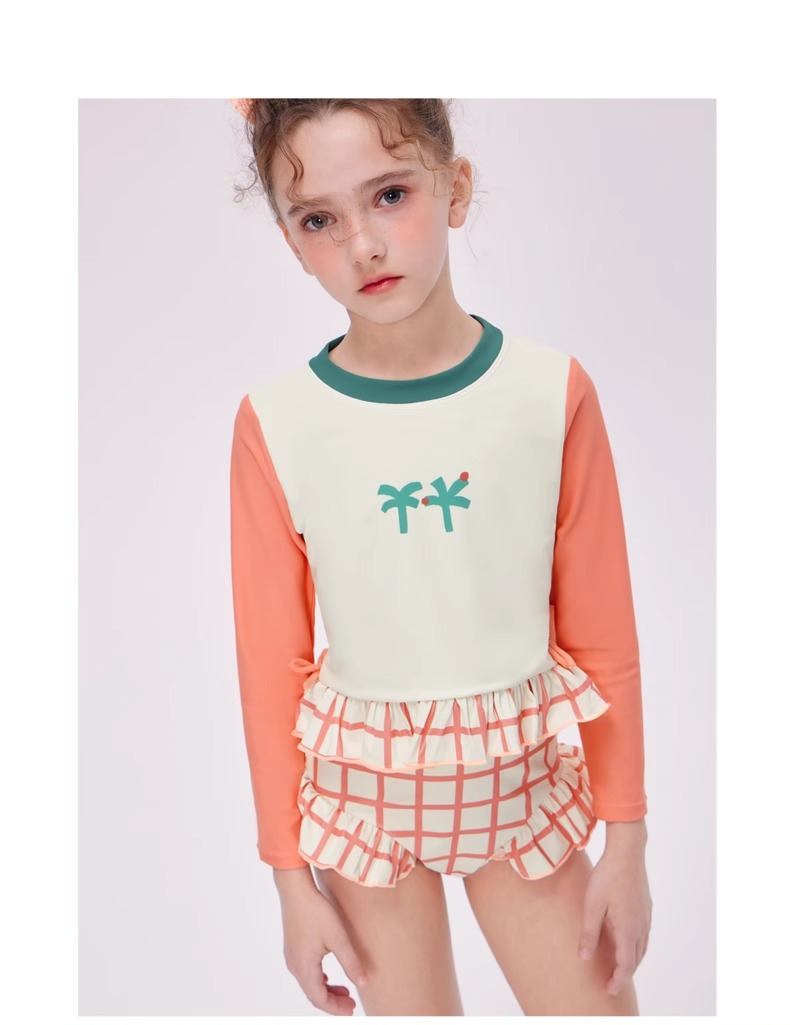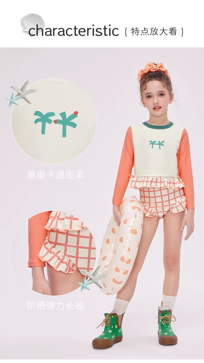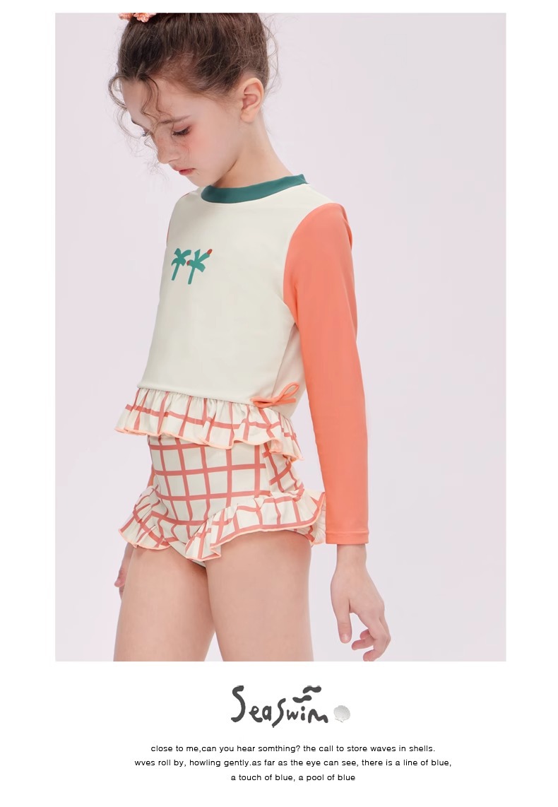 여자 스플릿 트라이앵글 긴팔 수영복 2025 어린이 서양식 고급 소녀의 빠른 건조 선 스크린 온천 수영복
