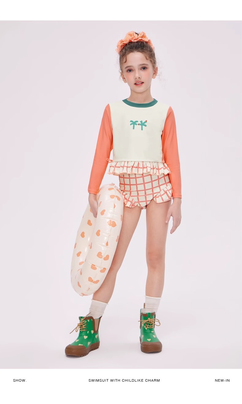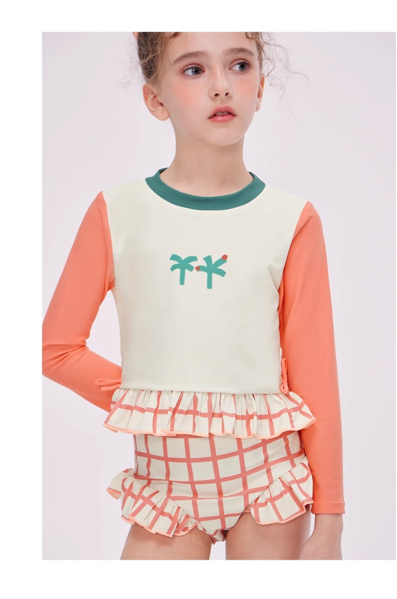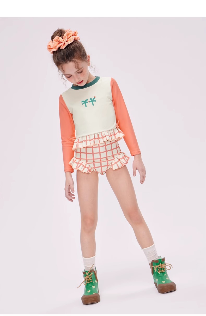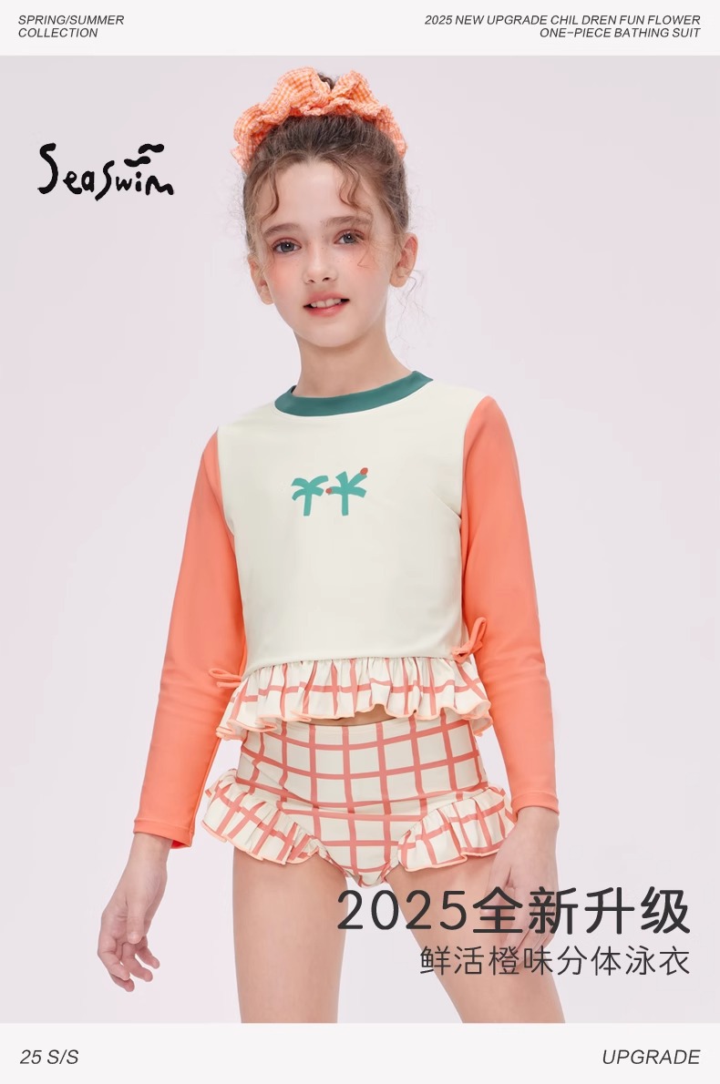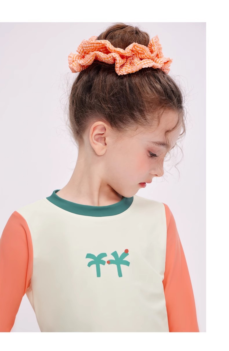여자 스플릿 트라이앵글 긴팔 수영복 2025 어린이 서양식 고급 소녀의 빠른 건조 선 스크린 온천 수영복