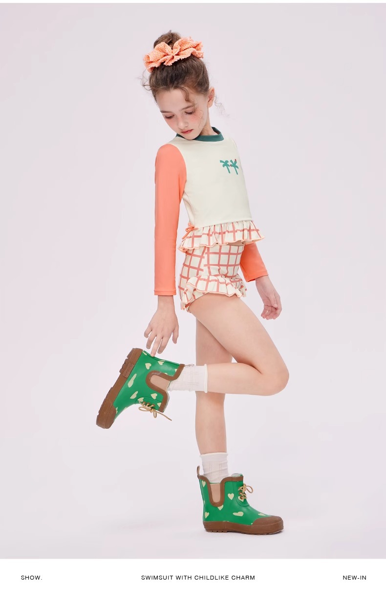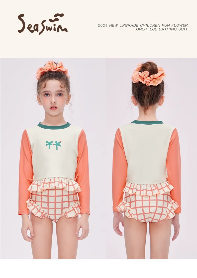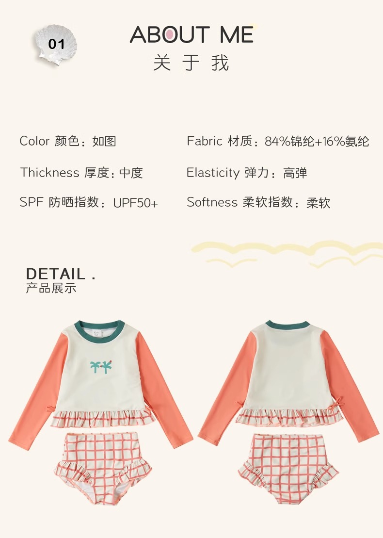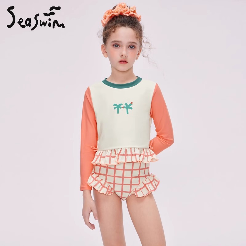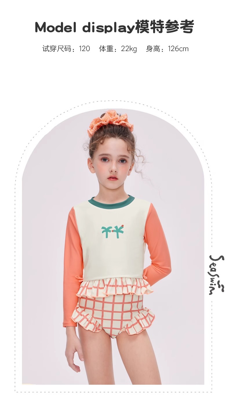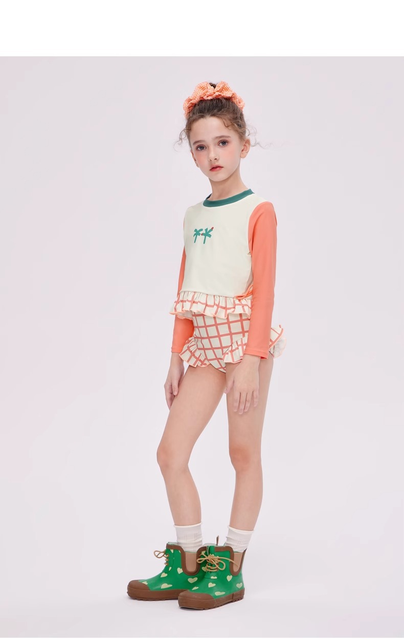 여자 스플릿 트라이앵글 긴팔 수영복 2025 어린이 서양식 고급 소녀의 빠른 건조 선 스크린 온천 수영복