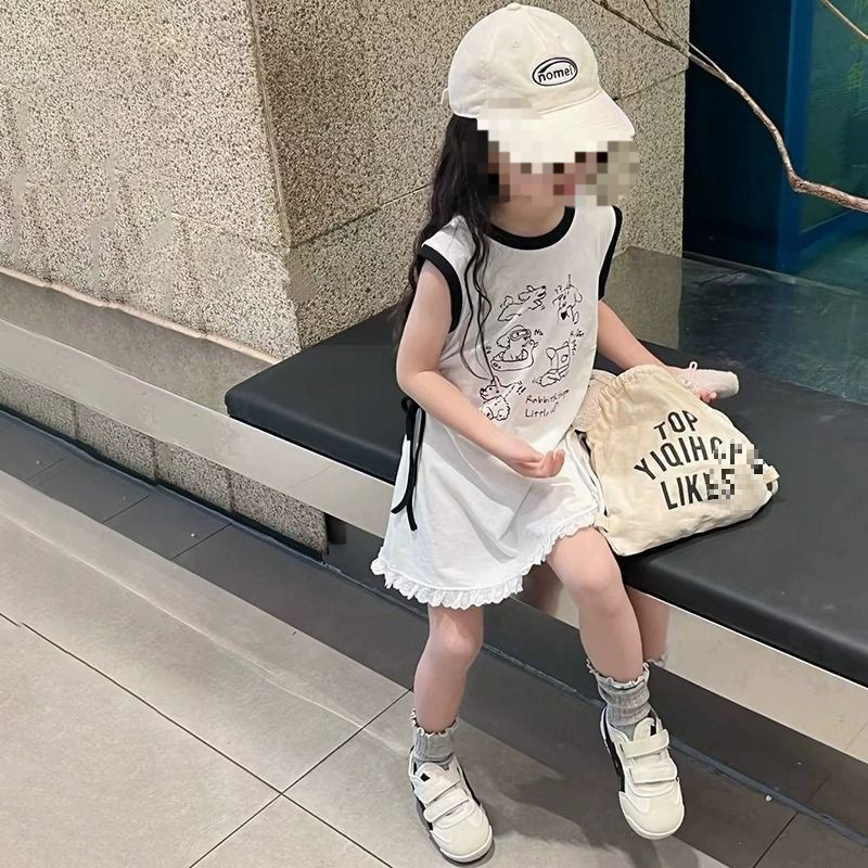 여자 여름 새로운 민소매 원피스 여성의 보물 한국 스타일 만화 간단한 레이스 바느질 레이스 원피스 0055A089스토어 가기