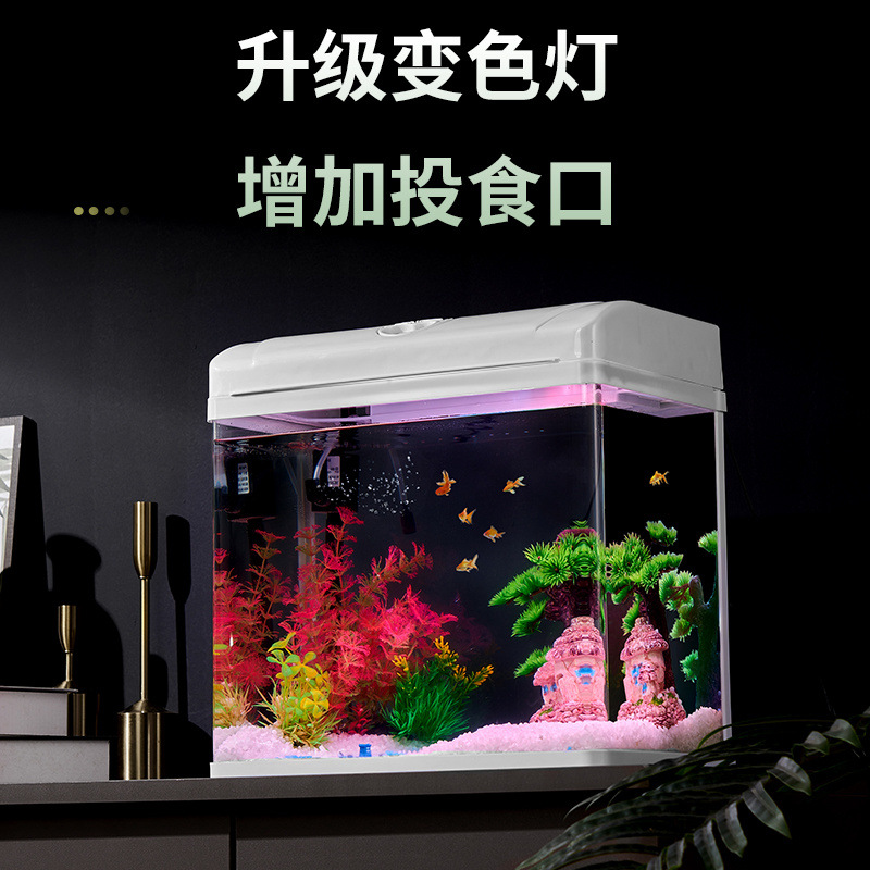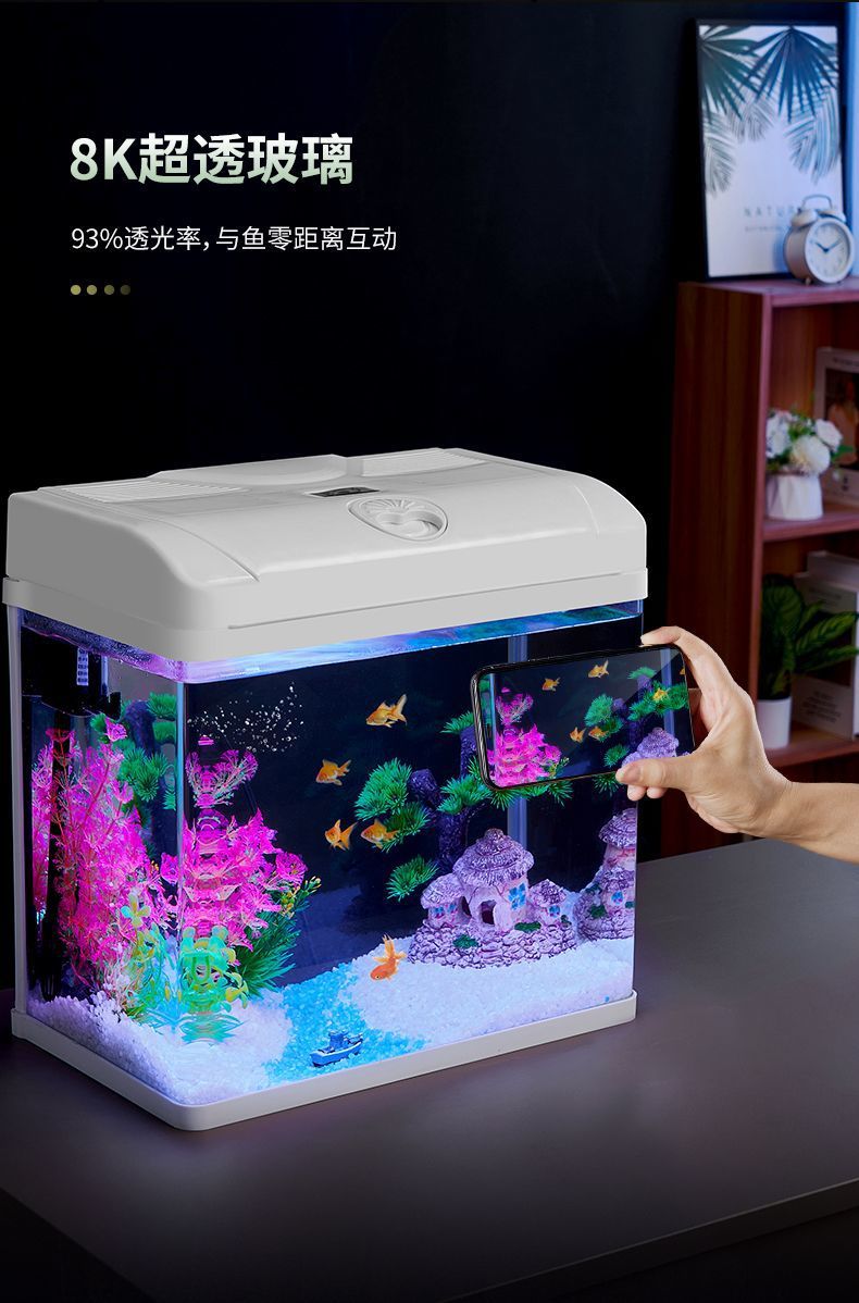 물고기 탱크 거실 작은 2024 새로운 가정 수족관 생태 뜨거운 곡선 데스크탑 유리 풍경 게으른 금붕어 탱크