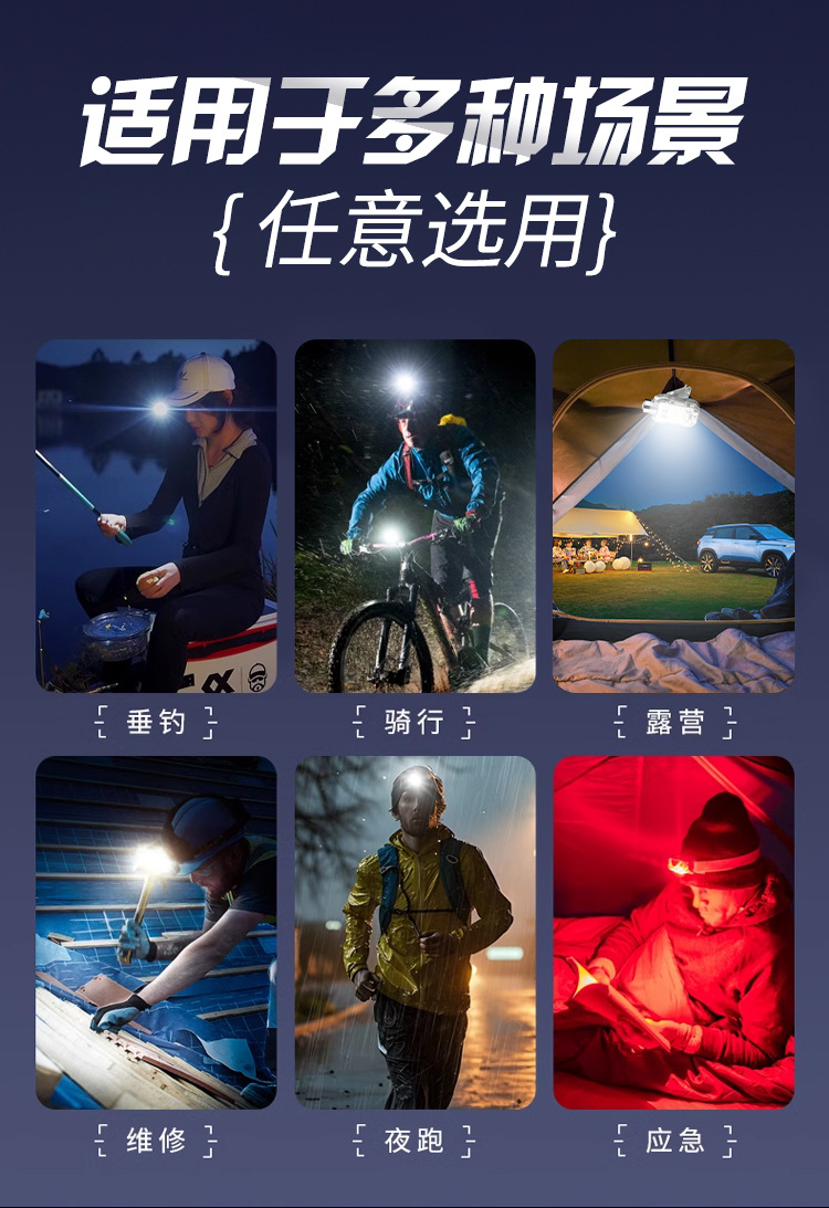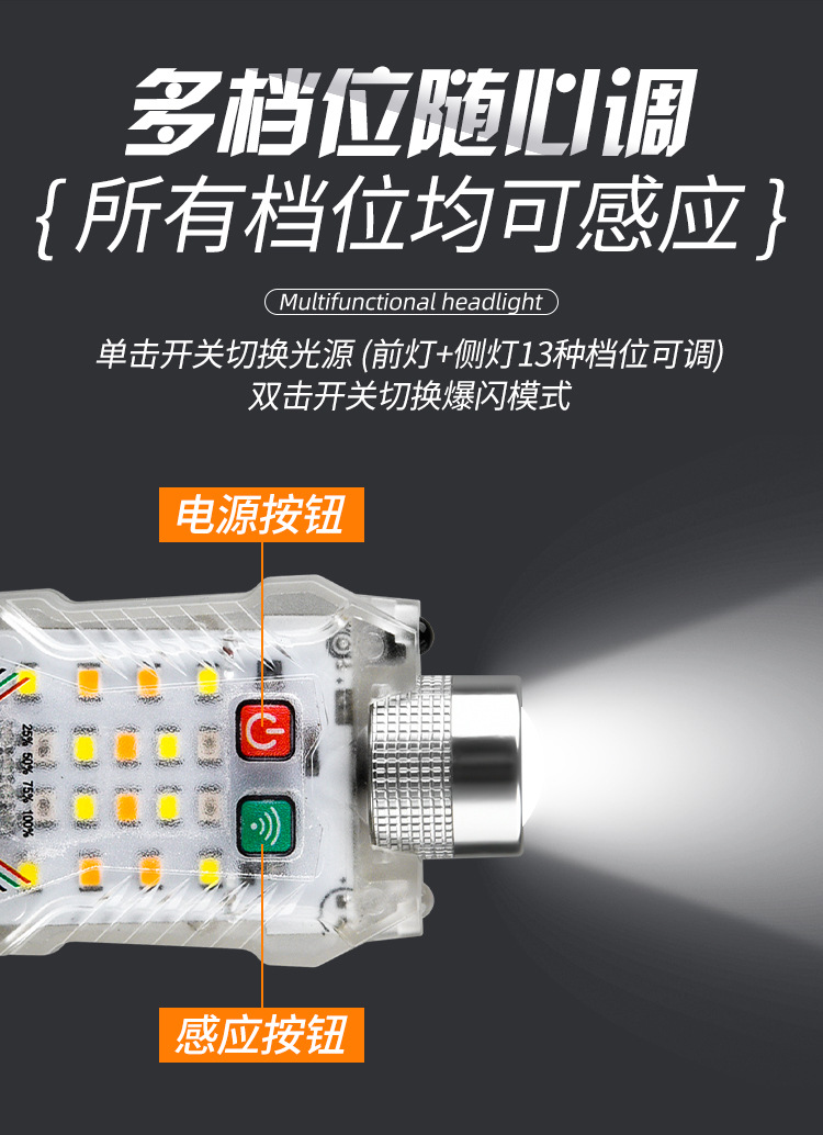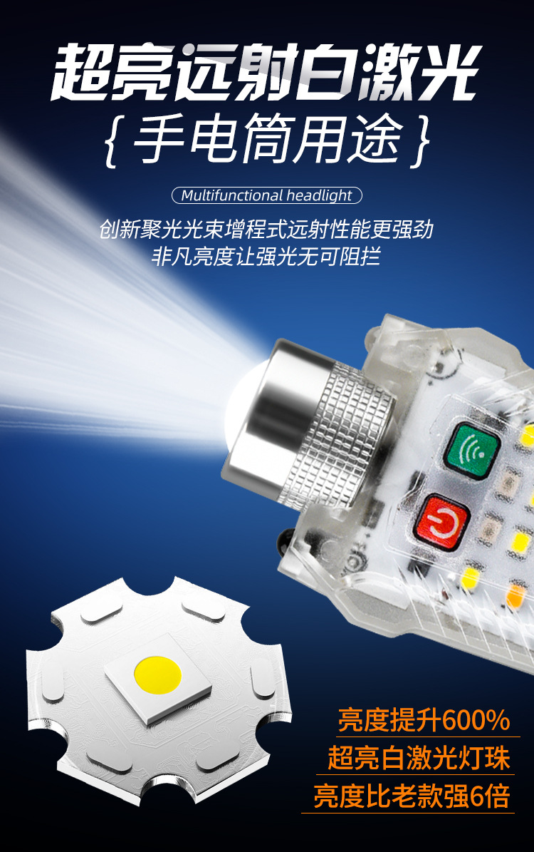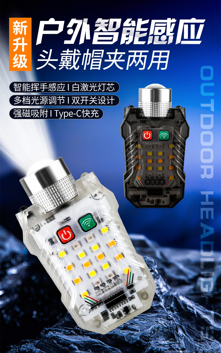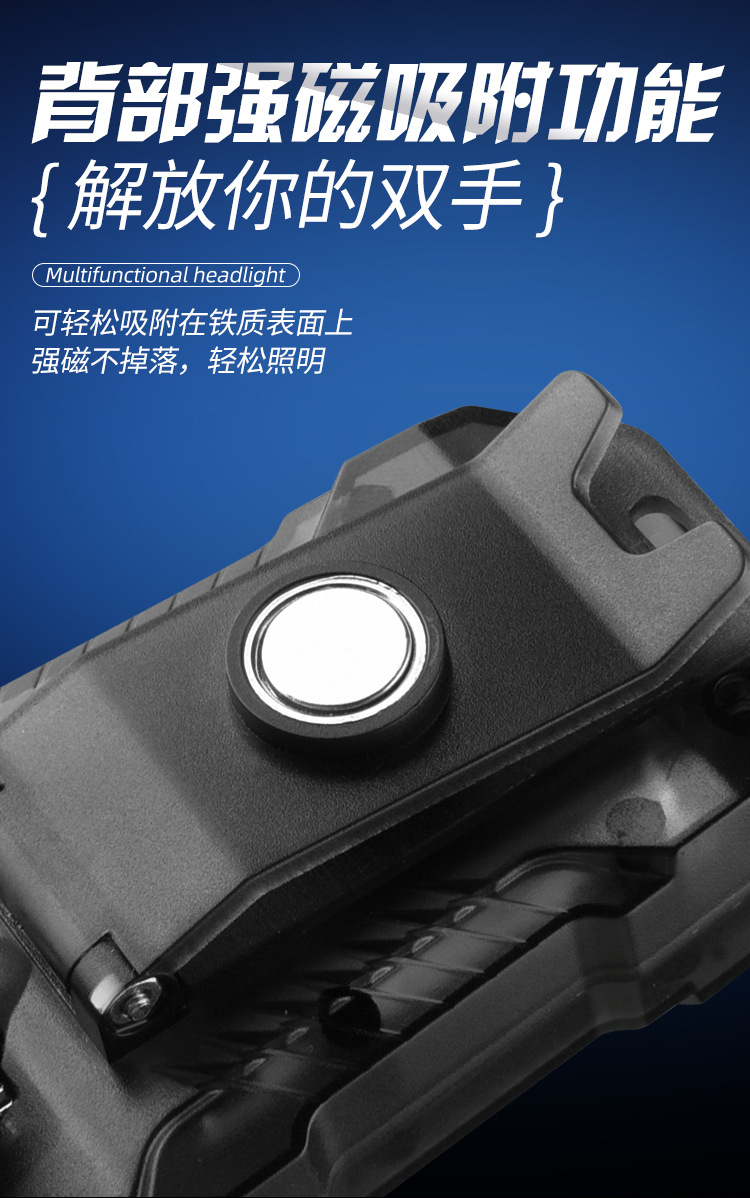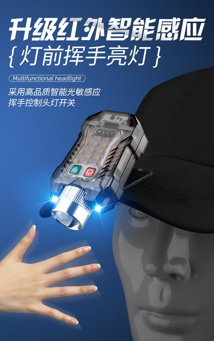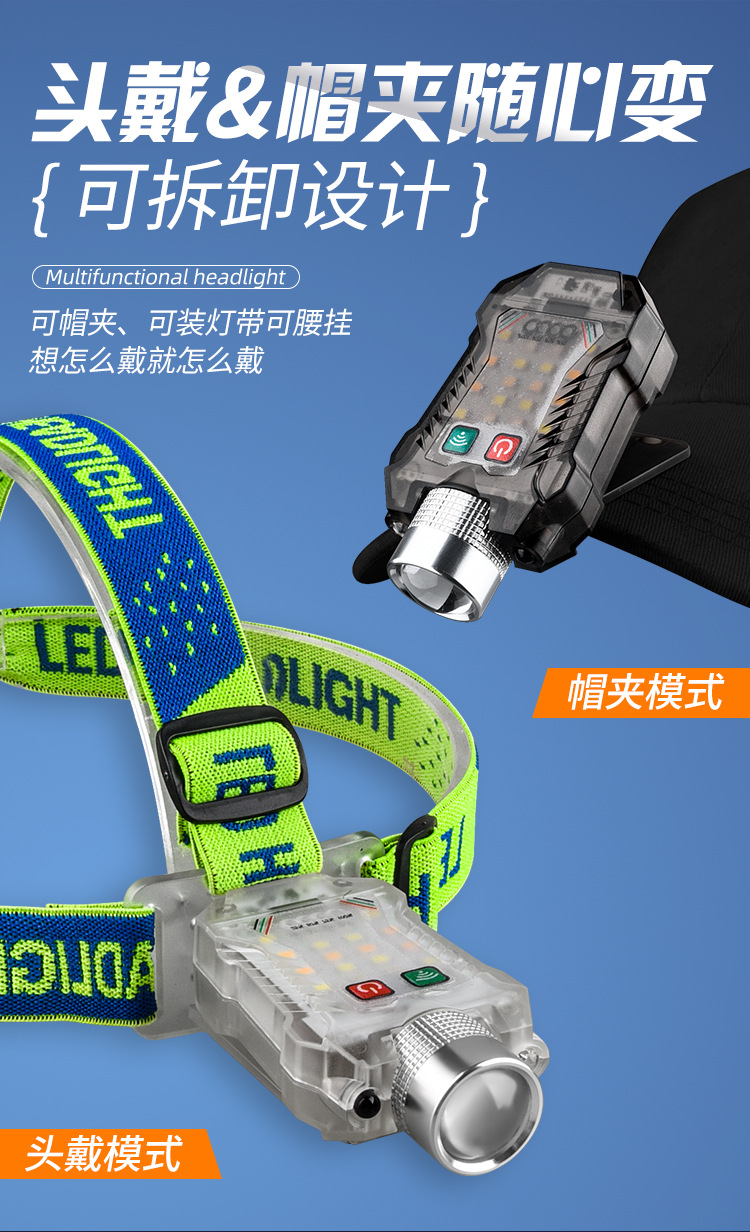 국경 새로운 휴대용 유도 헤드 램프 키 체인 마그네틱 손전등 캡 클립 램프 헤드 충전식 LED 작업 조명