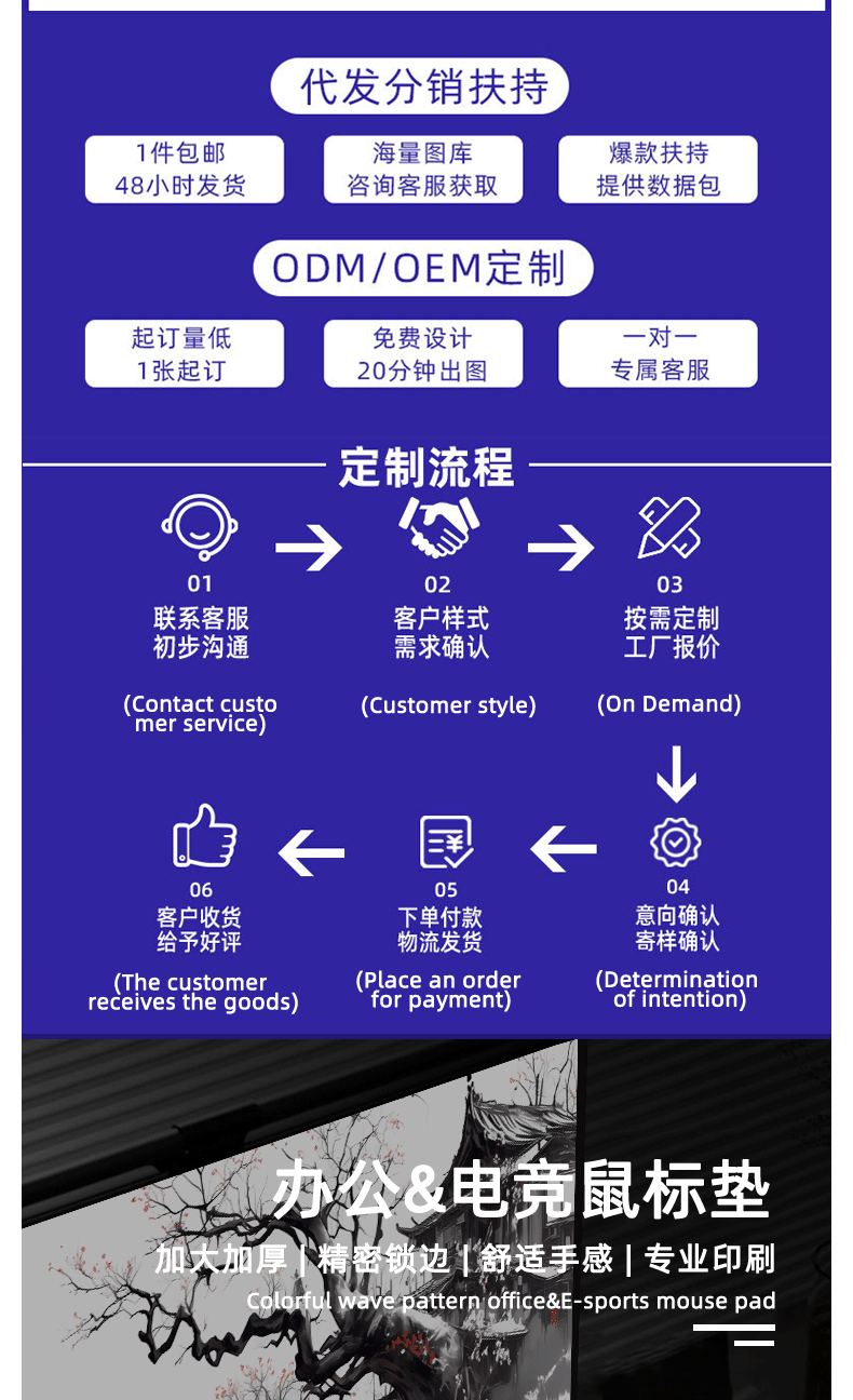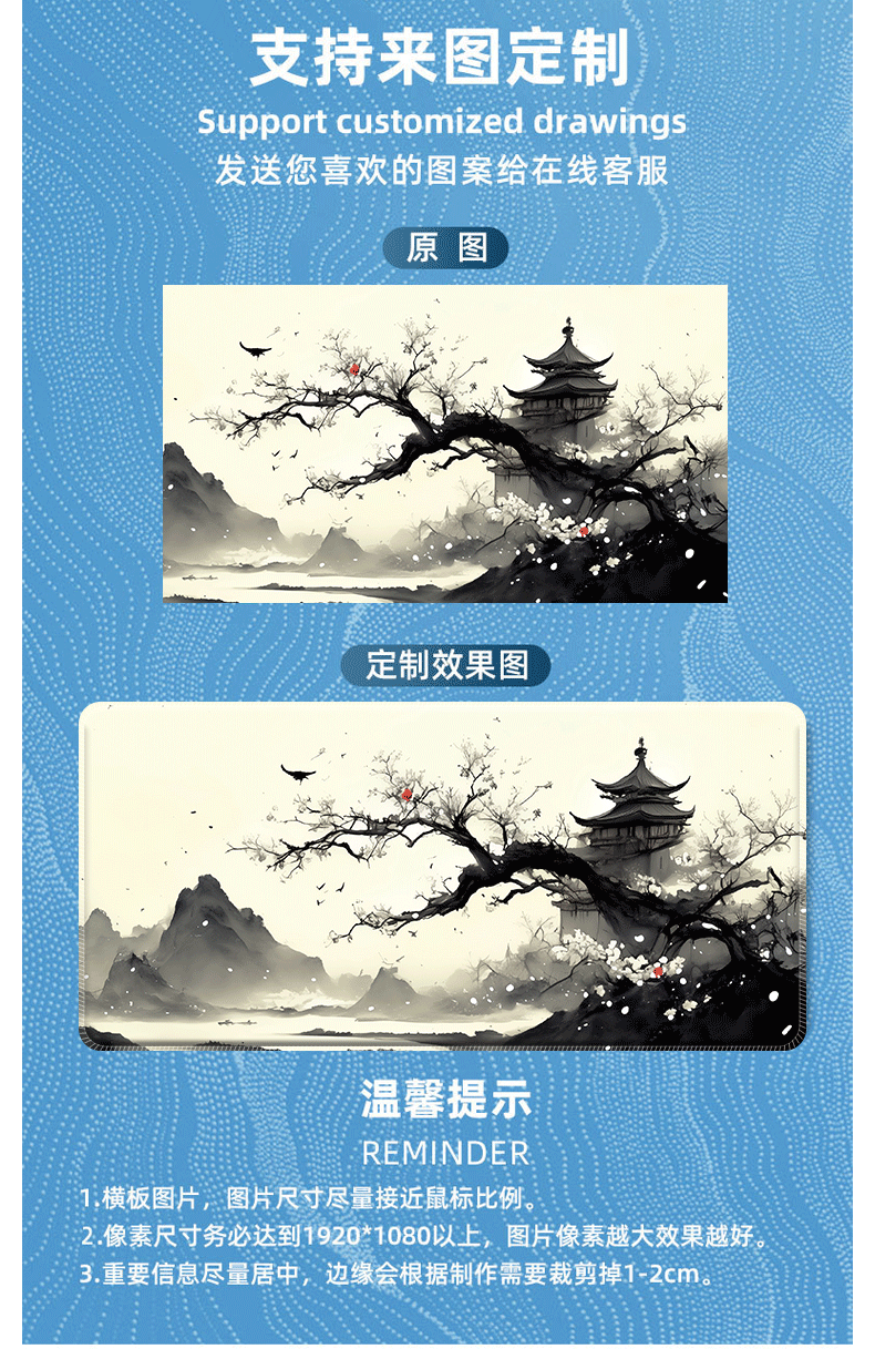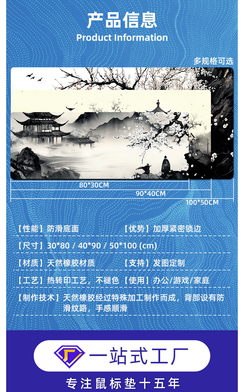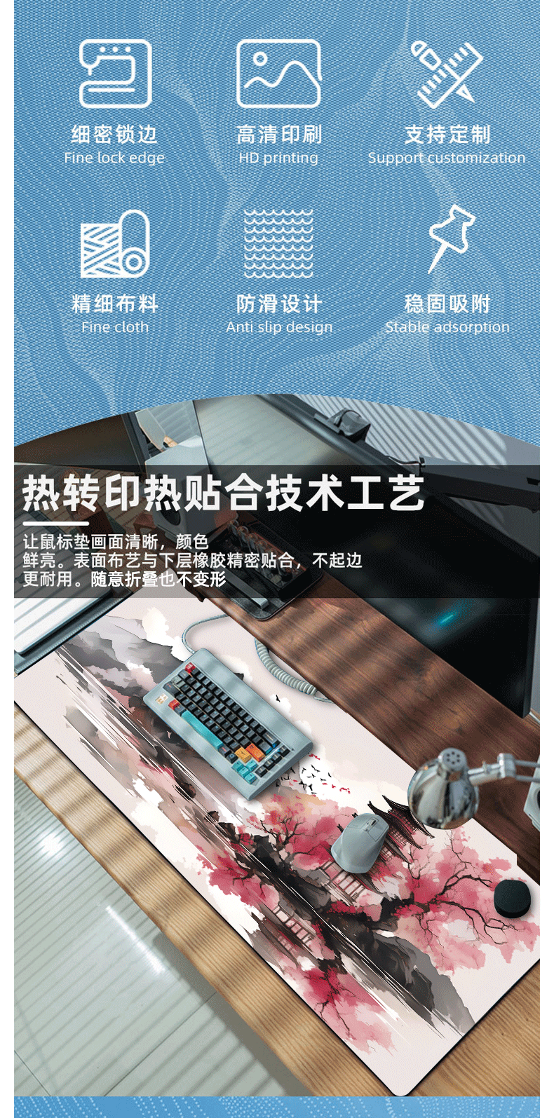 국경 간 인기있는 산수화 마우스 패드 도매 키보드 패드 사무실 학습 책상 패드 두꺼운 정밀 잠금 가장자리스토어 가기