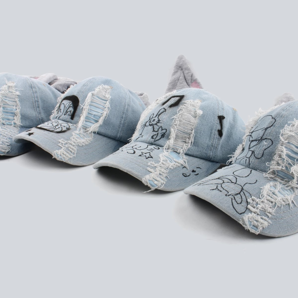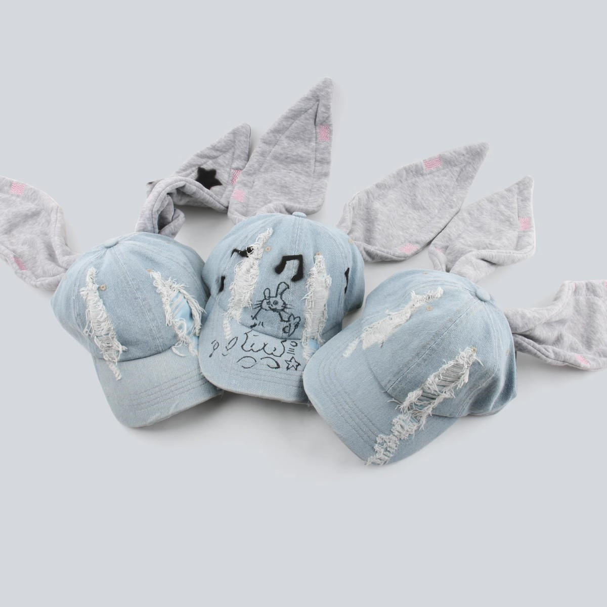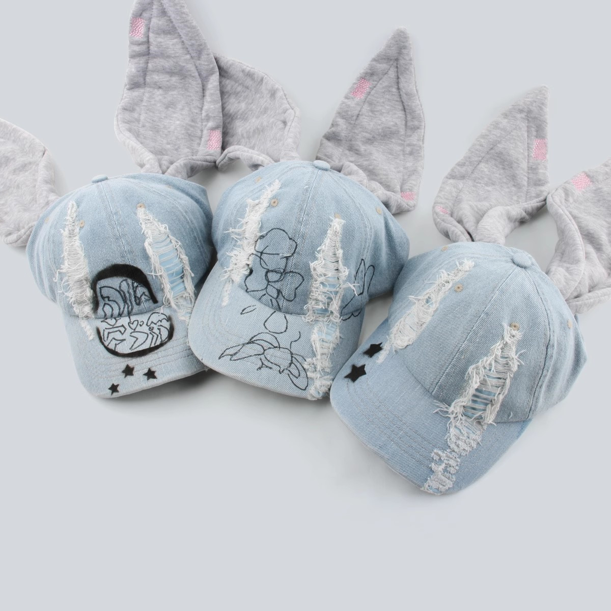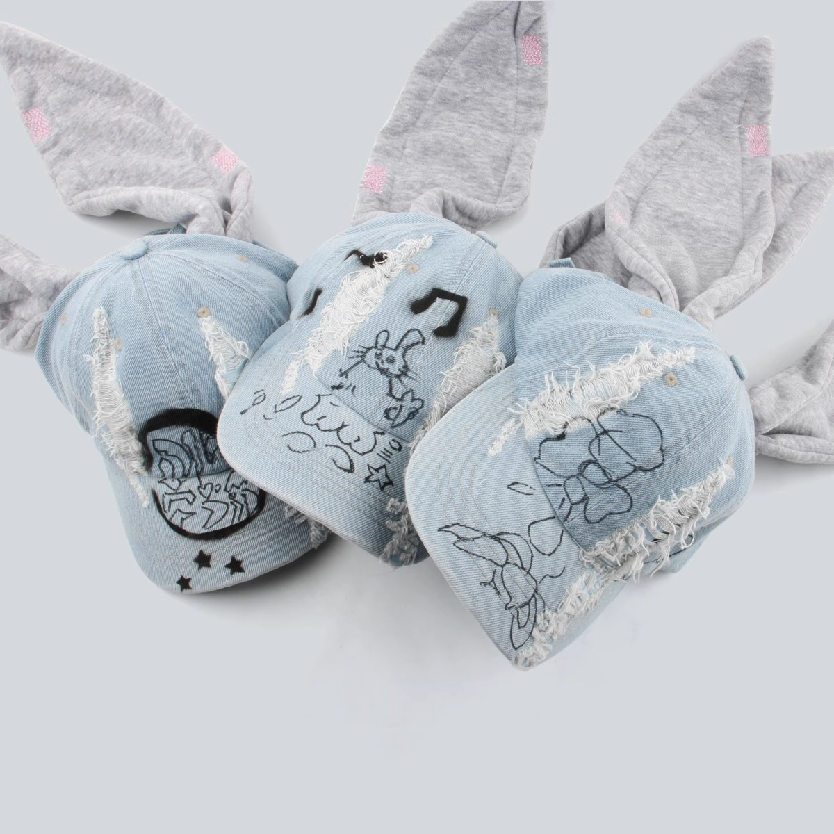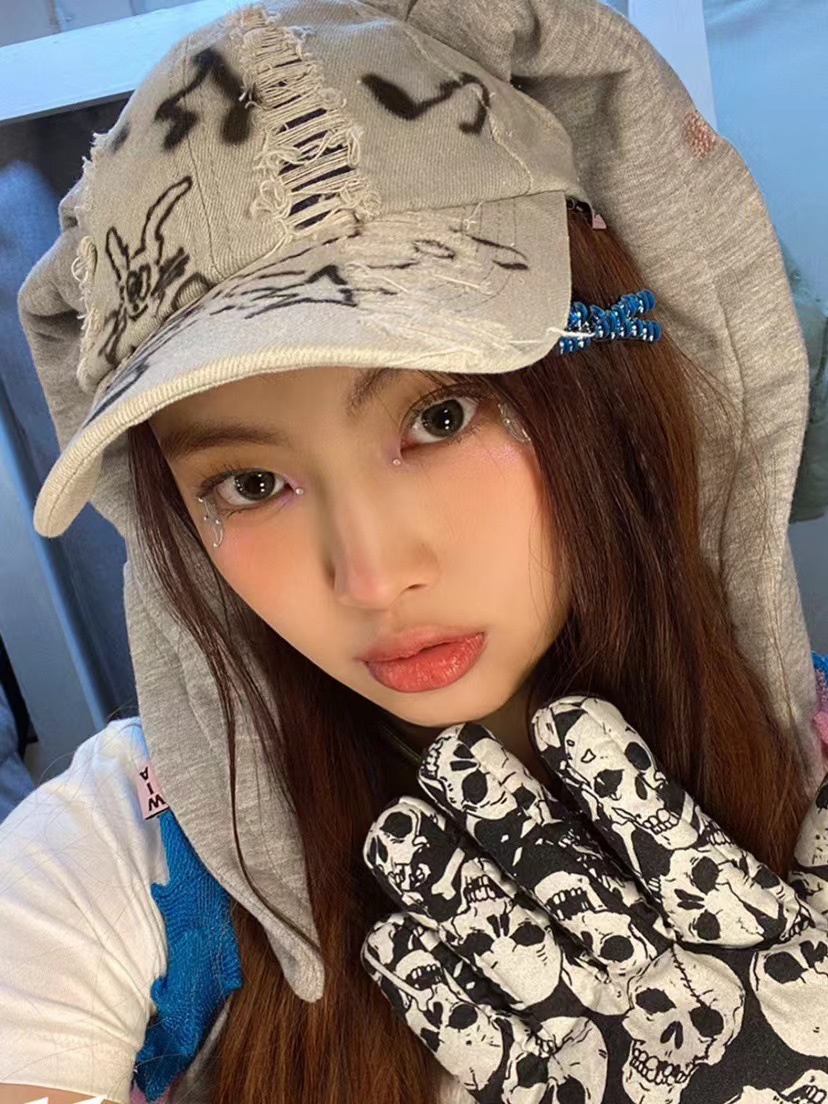 한국 스타일 토끼귀 덕캡 데님 워싱 그래피티 홍콩 스타일 댄스 야구 힙합 모자