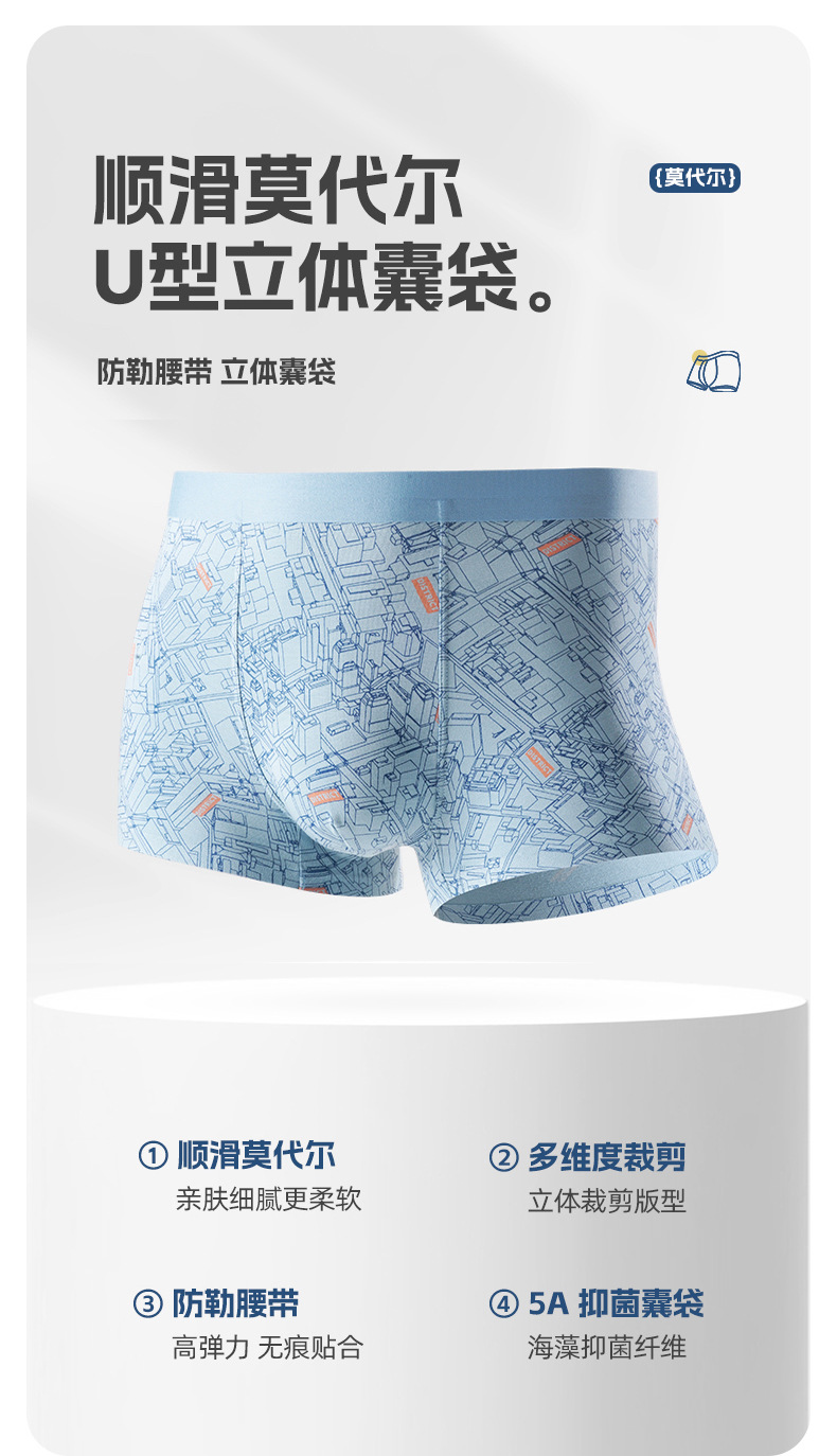 셀러브리티 패밀리 모달 남성 미드웨이스트 팬티 7A 항균 사각팬티 남성 해초 항균 팬티