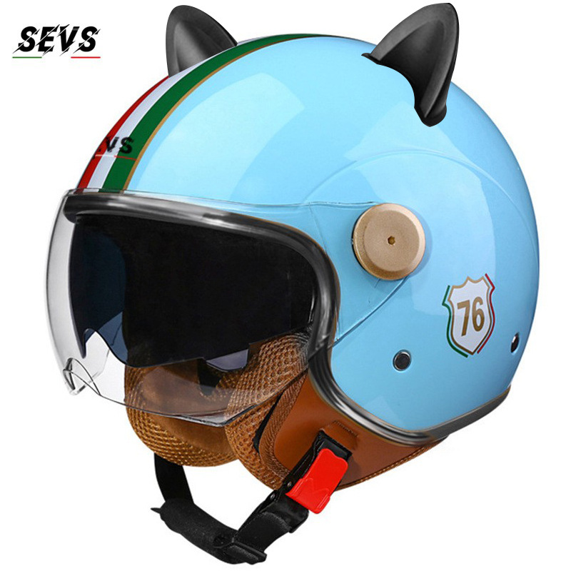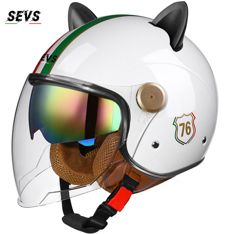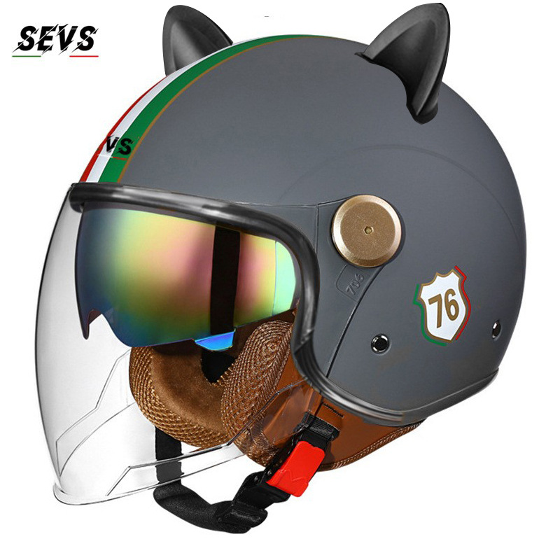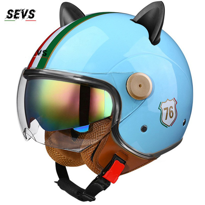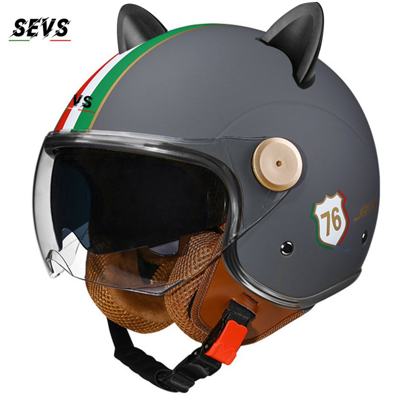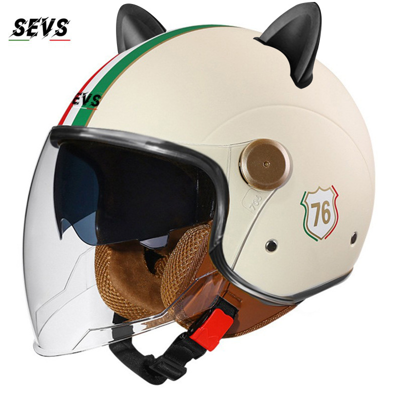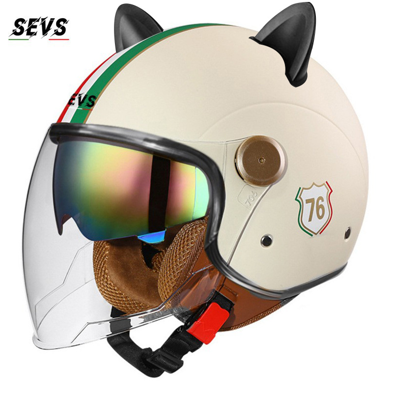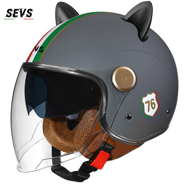 3C/Dot 인증 더블 미러 오토바이 레트로 하프 헬멧 남녀 오토바이 경량 헬멧 고양이 귀 사계절 헬멧