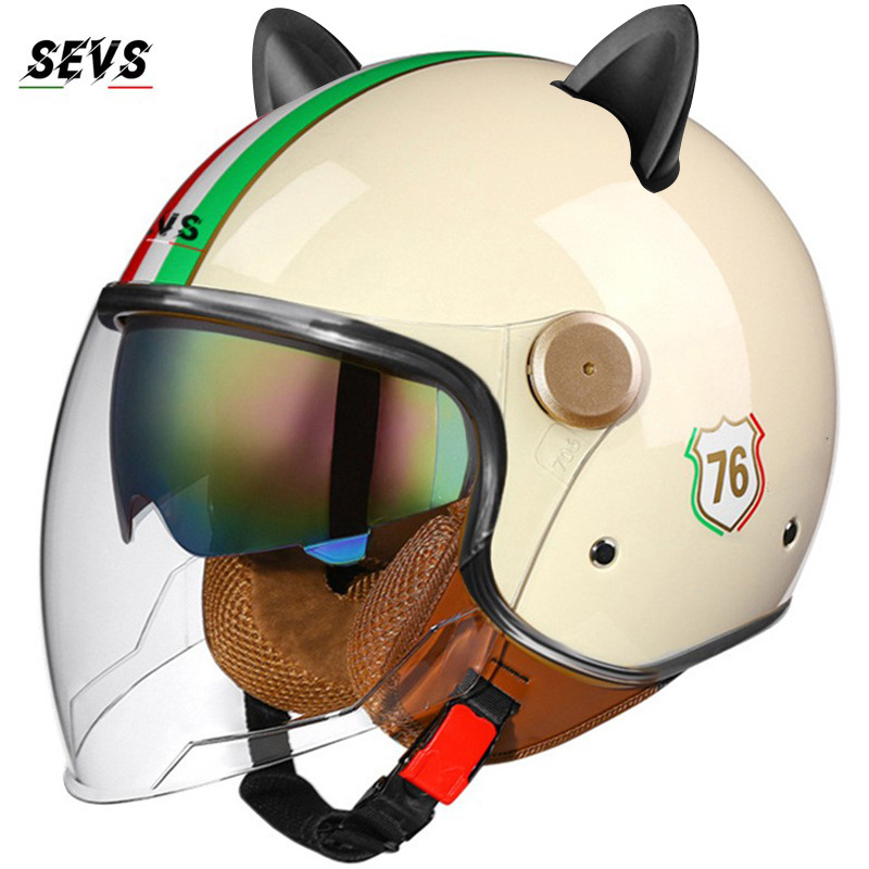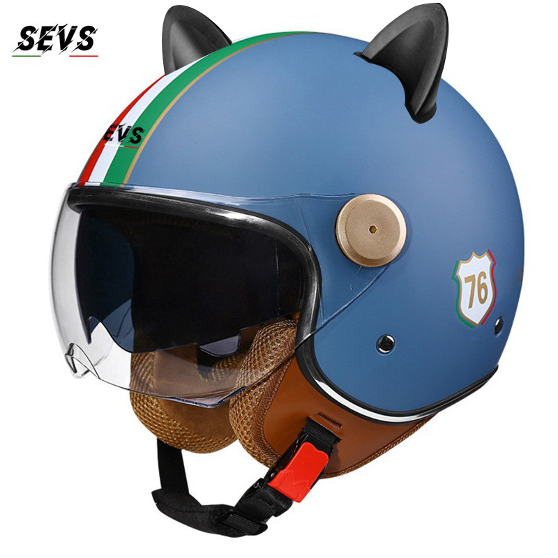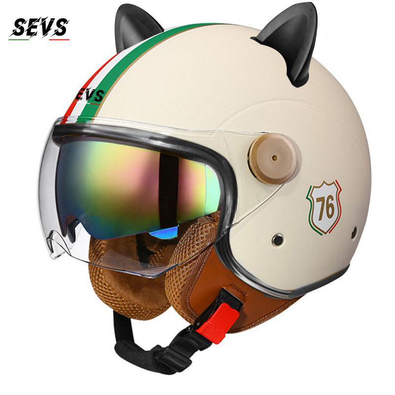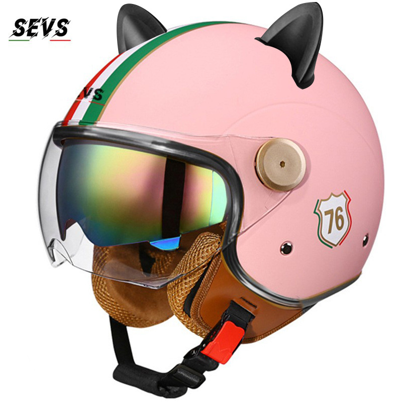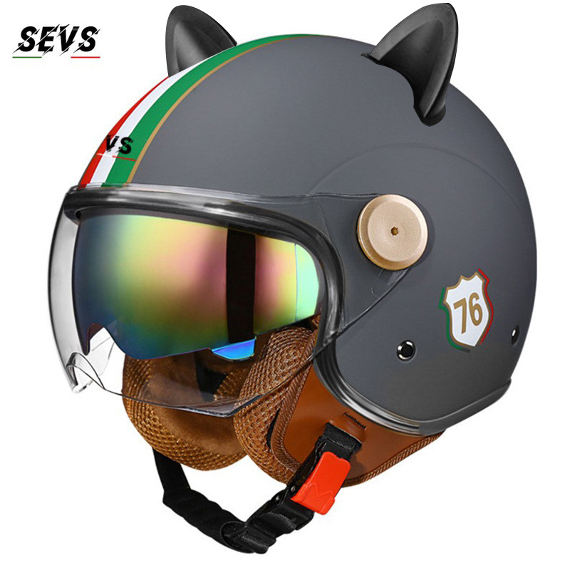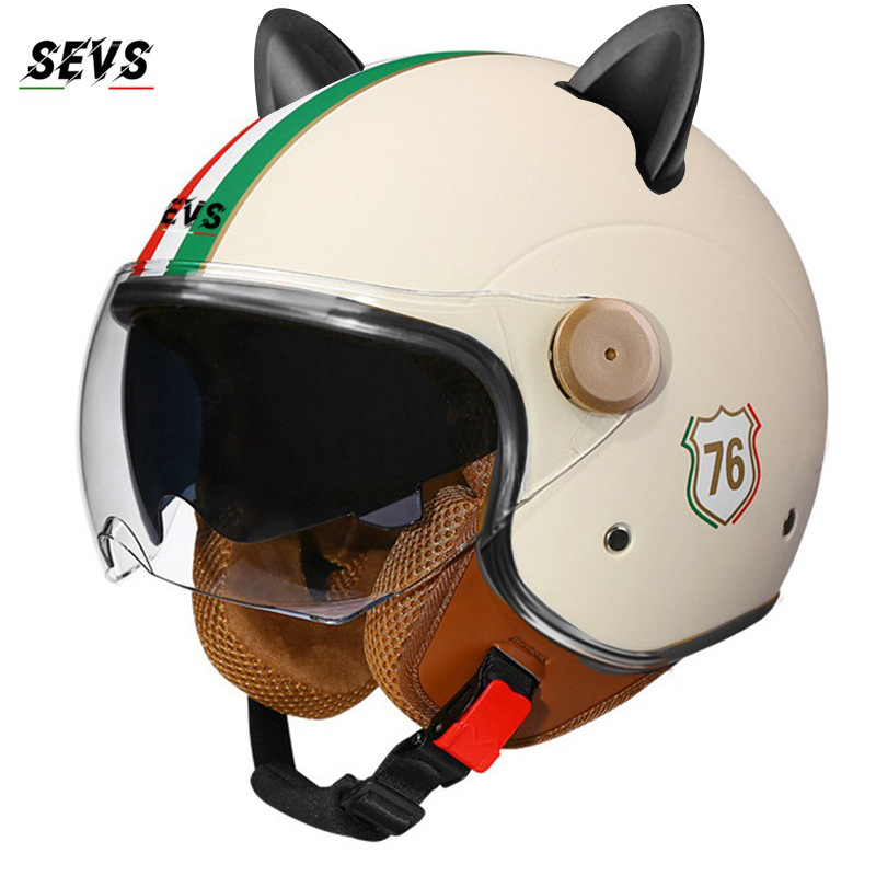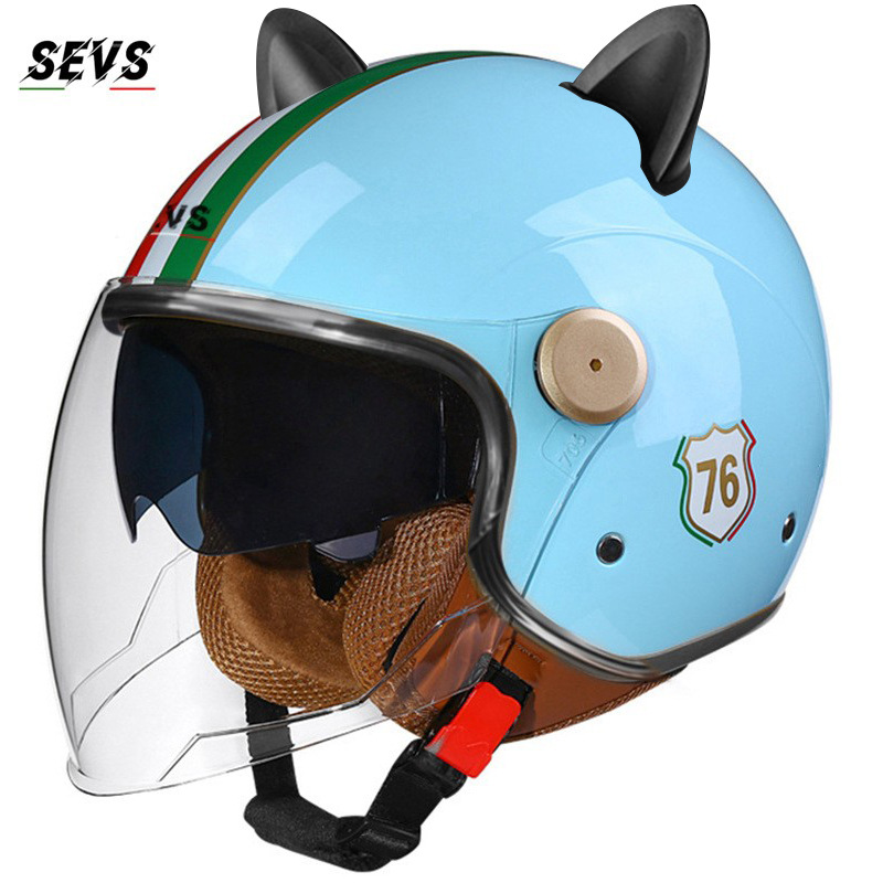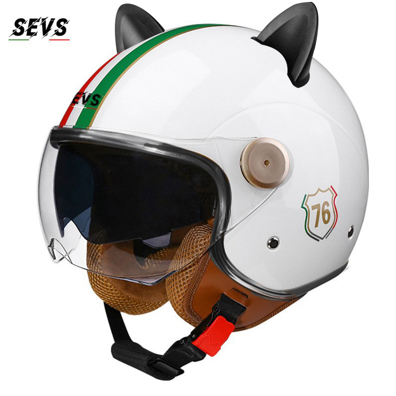 3C/Dot 인증 더블 미러 오토바이 레트로 하프 헬멧 남녀 오토바이 경량 헬멧 고양이 귀 사계절 헬멧