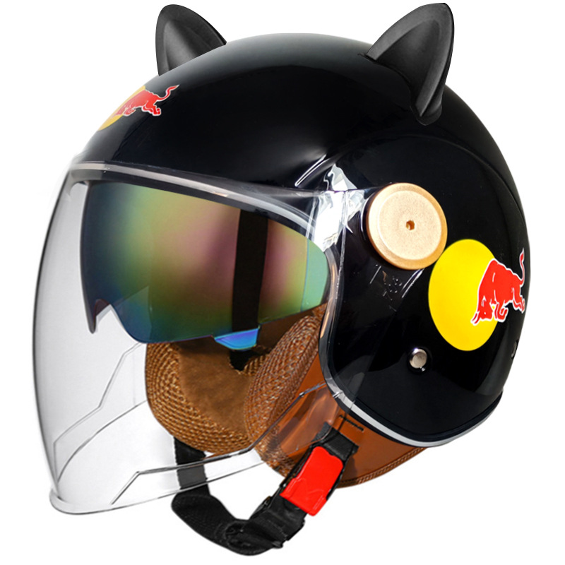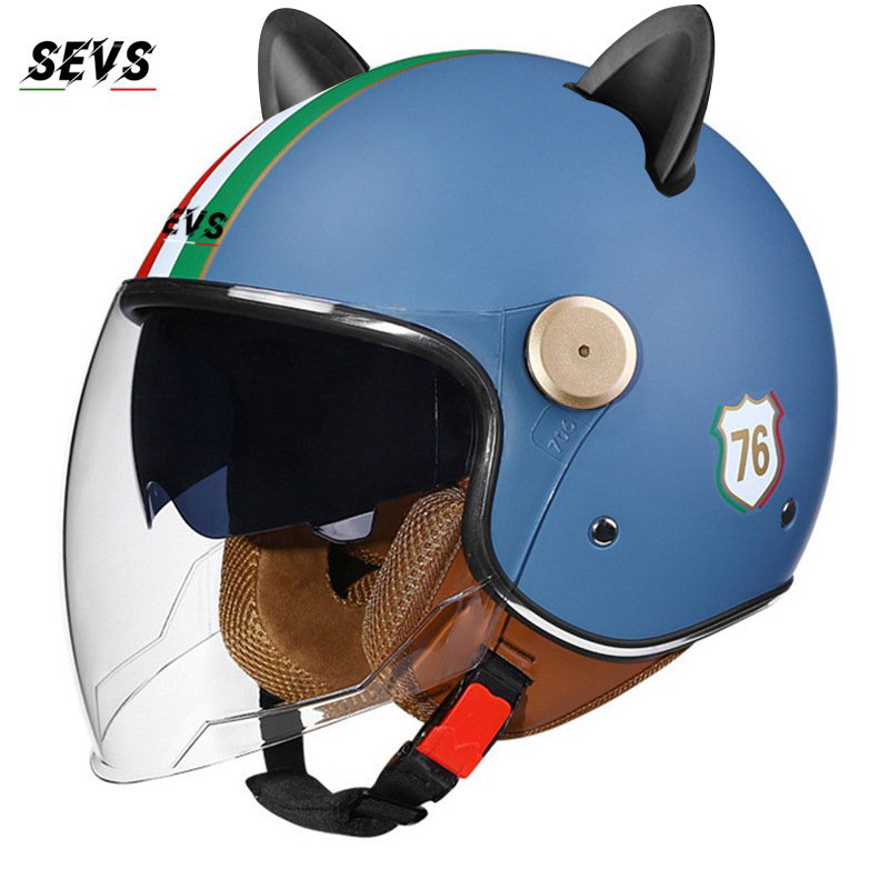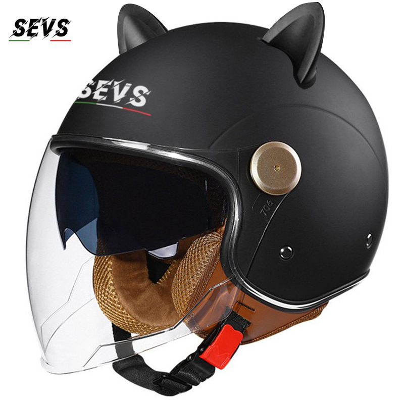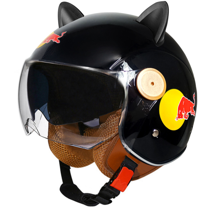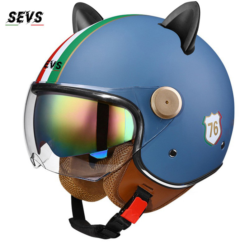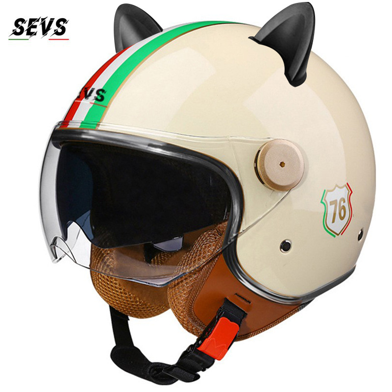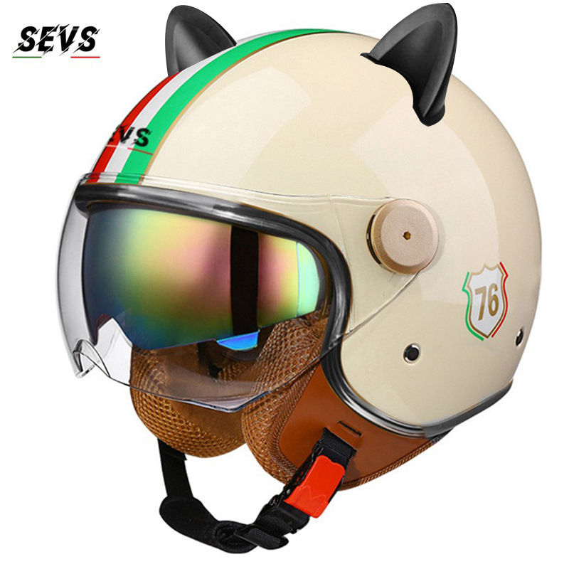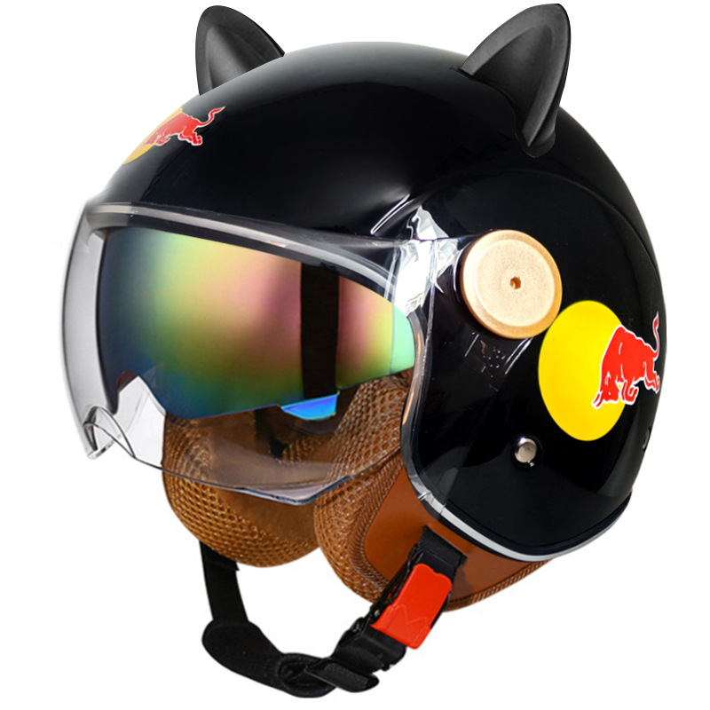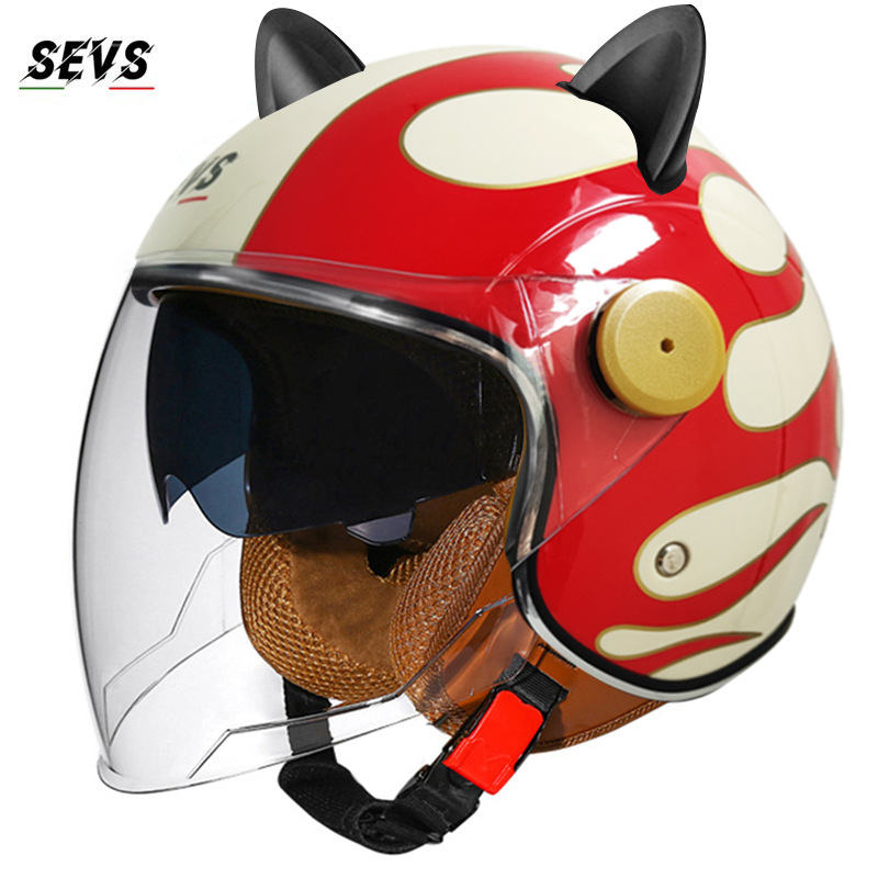 3C/Dot 인증 더블 미러 오토바이 레트로 하프 헬멧 남녀 오토바이 경량 헬멧 고양이 귀 사계절 헬멧