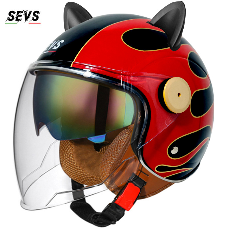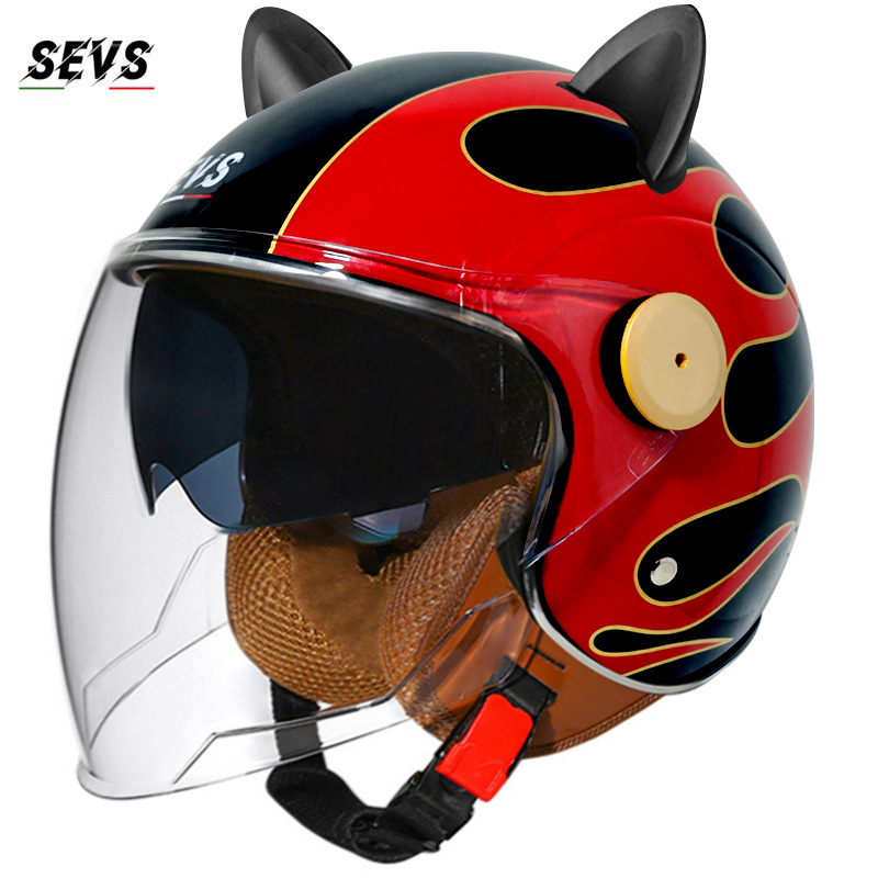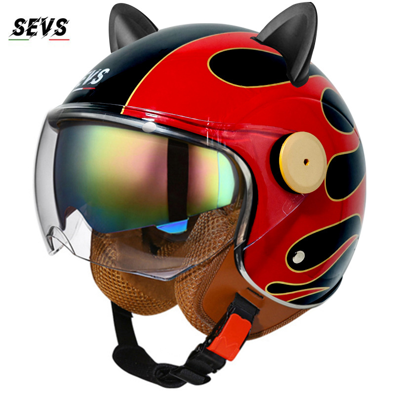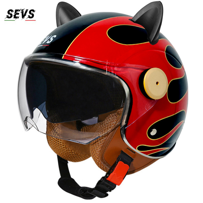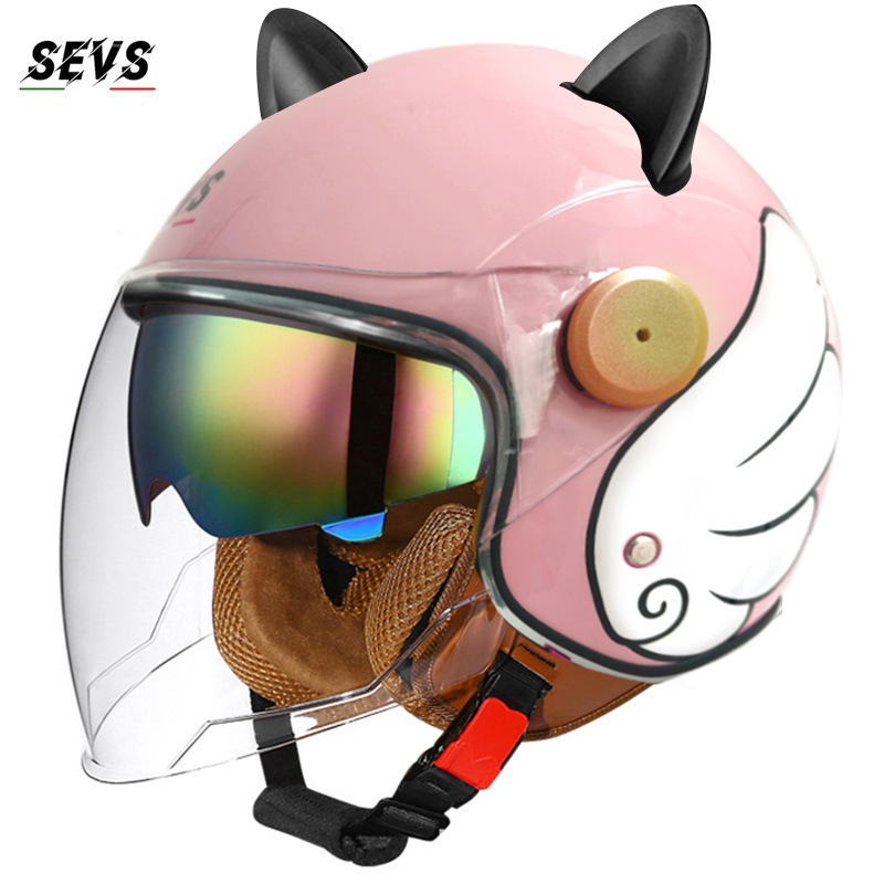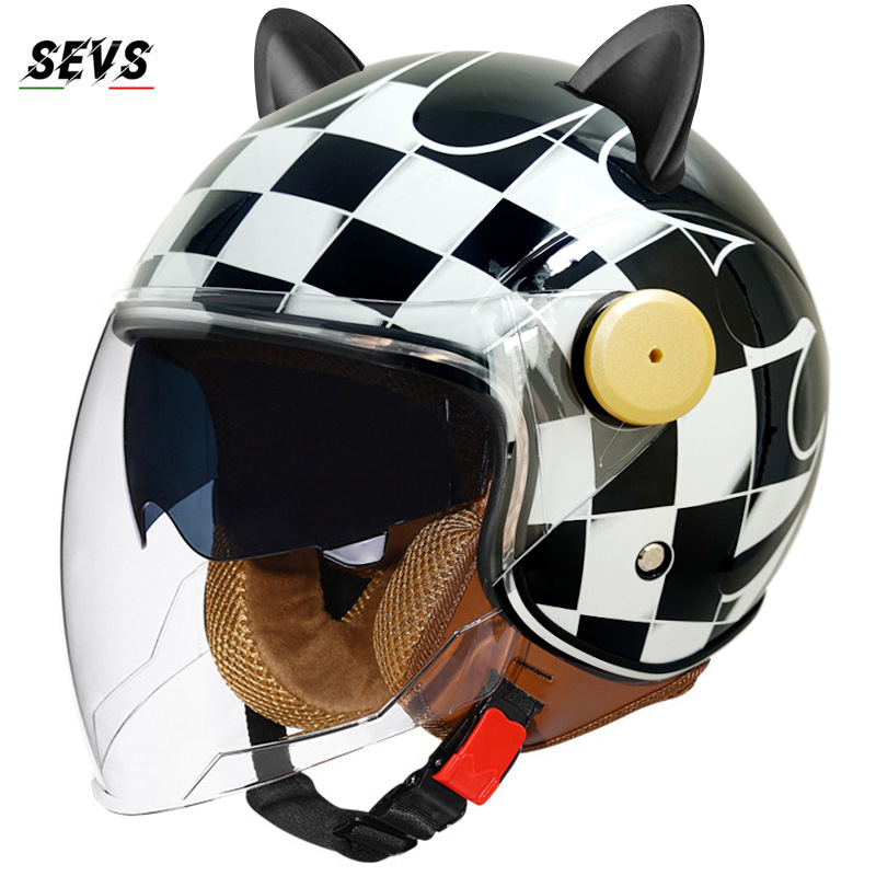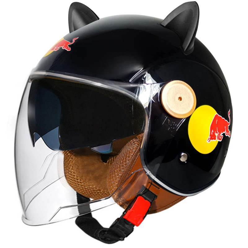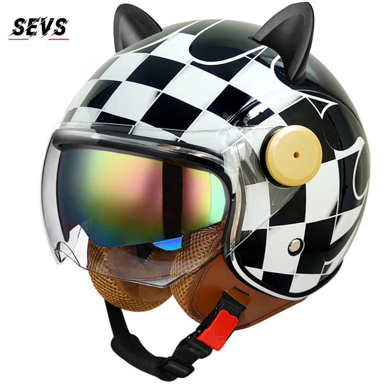 3C/Dot 인증 더블 미러 오토바이 레트로 하프 헬멧 남녀 오토바이 경량 헬멧 고양이 귀 사계절 헬멧