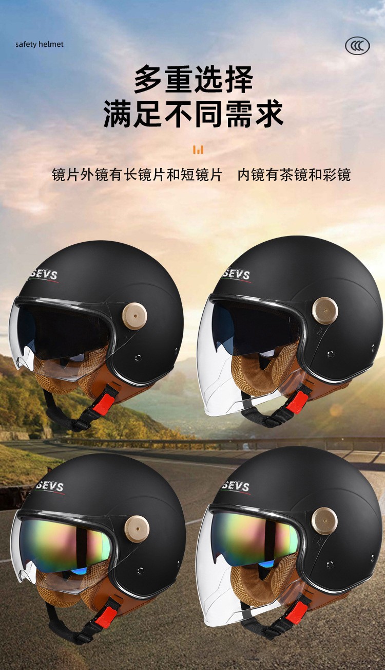 3C/Dot 인증 더블 미러 오토바이 레트로 하프 헬멧 남녀 오토바이 경량 헬멧 고양이 귀 사계절 헬멧스토어 가기
