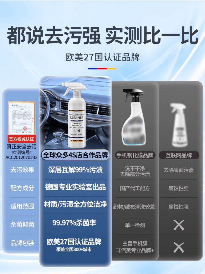 독일 자동차 인테리어 청소기 진짜 가죽 시트 거품 세척없는 오염 제거 천장 리노베이션 자동차 내부 청소 유물스토어 가기