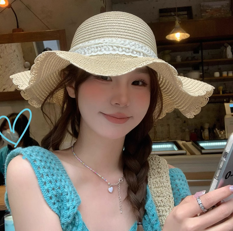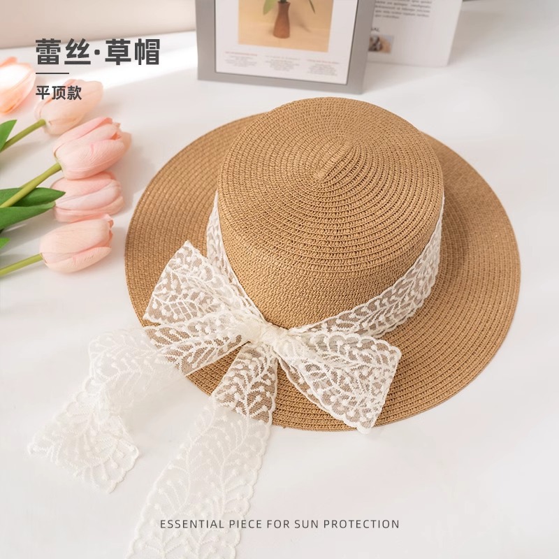여름 프랑스 진주 레이스 밀짚 모자 여성의 큰 브림 해변 휴일 활 선 스크린 태양 모자 도매스토어 가기