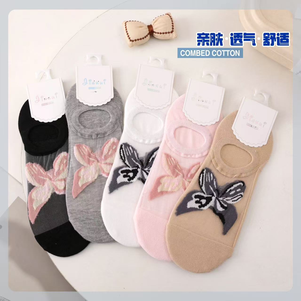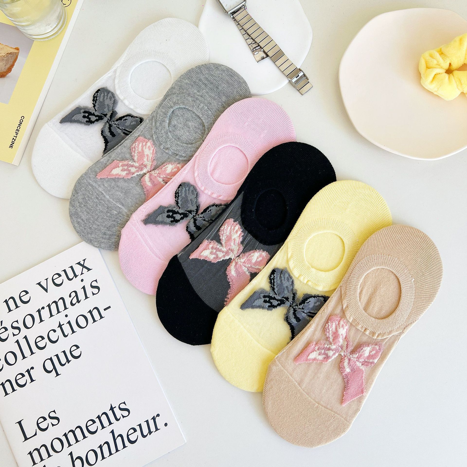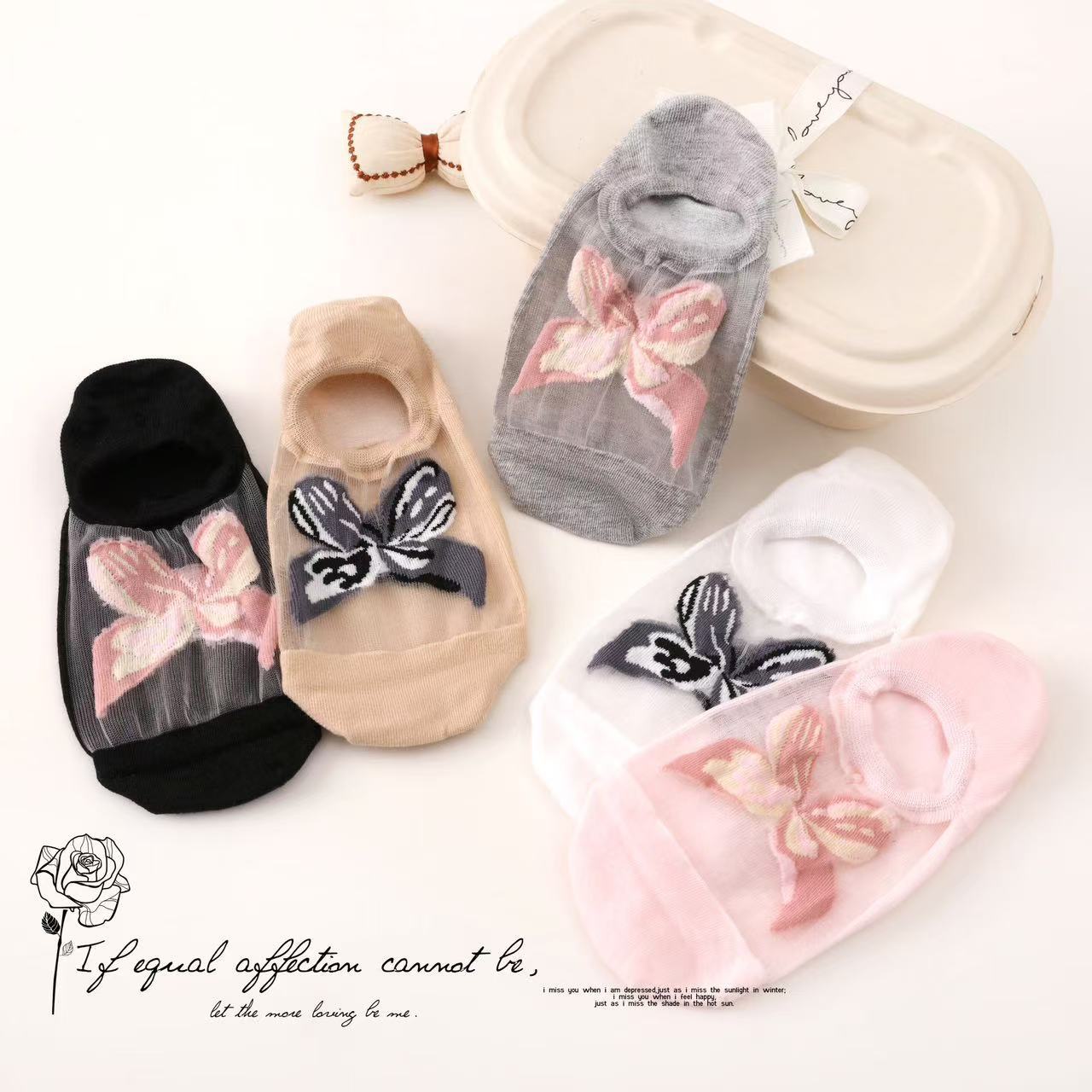 발레 스타일의 단색 큰 활 보트 양말 여름 얇은 보이지 않는 양말 조수 얕은 입 낮은 일본 다재다능한 여성.