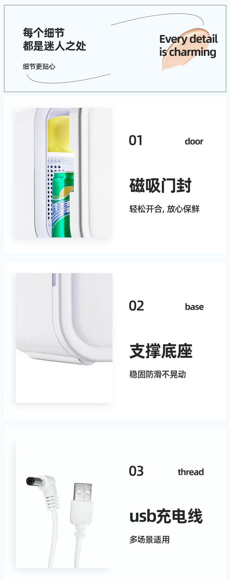 • 3L 공냉식 기술 [데스크탑 소형 냉장고] USB 인터페이스